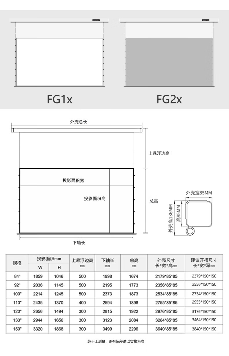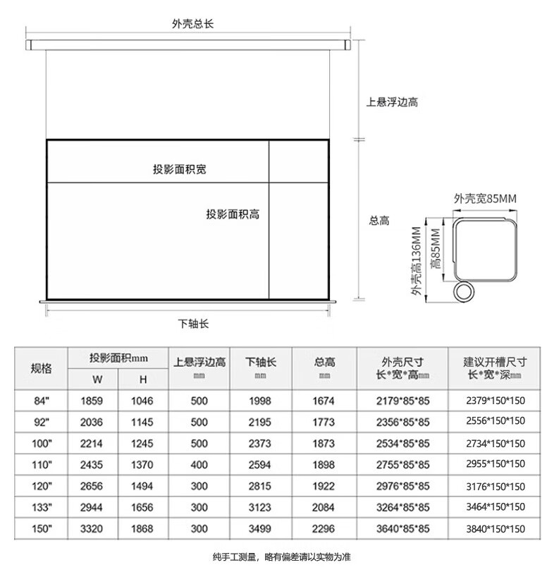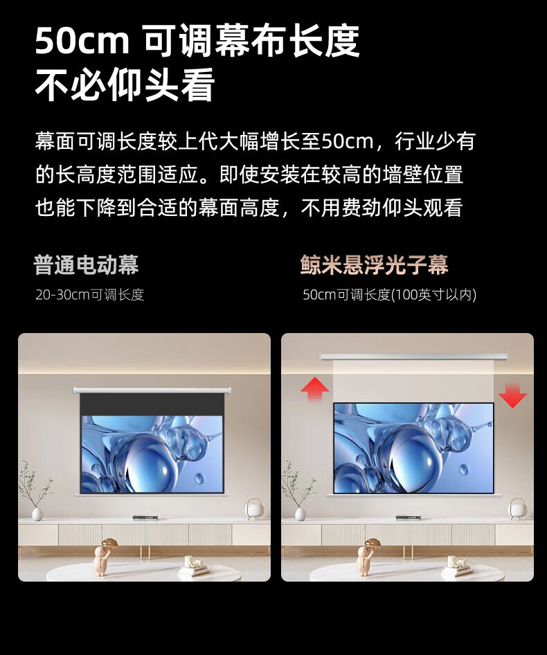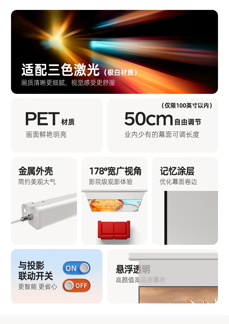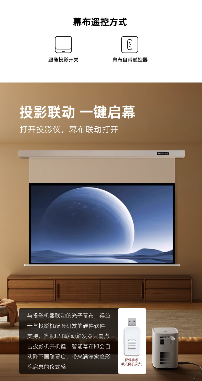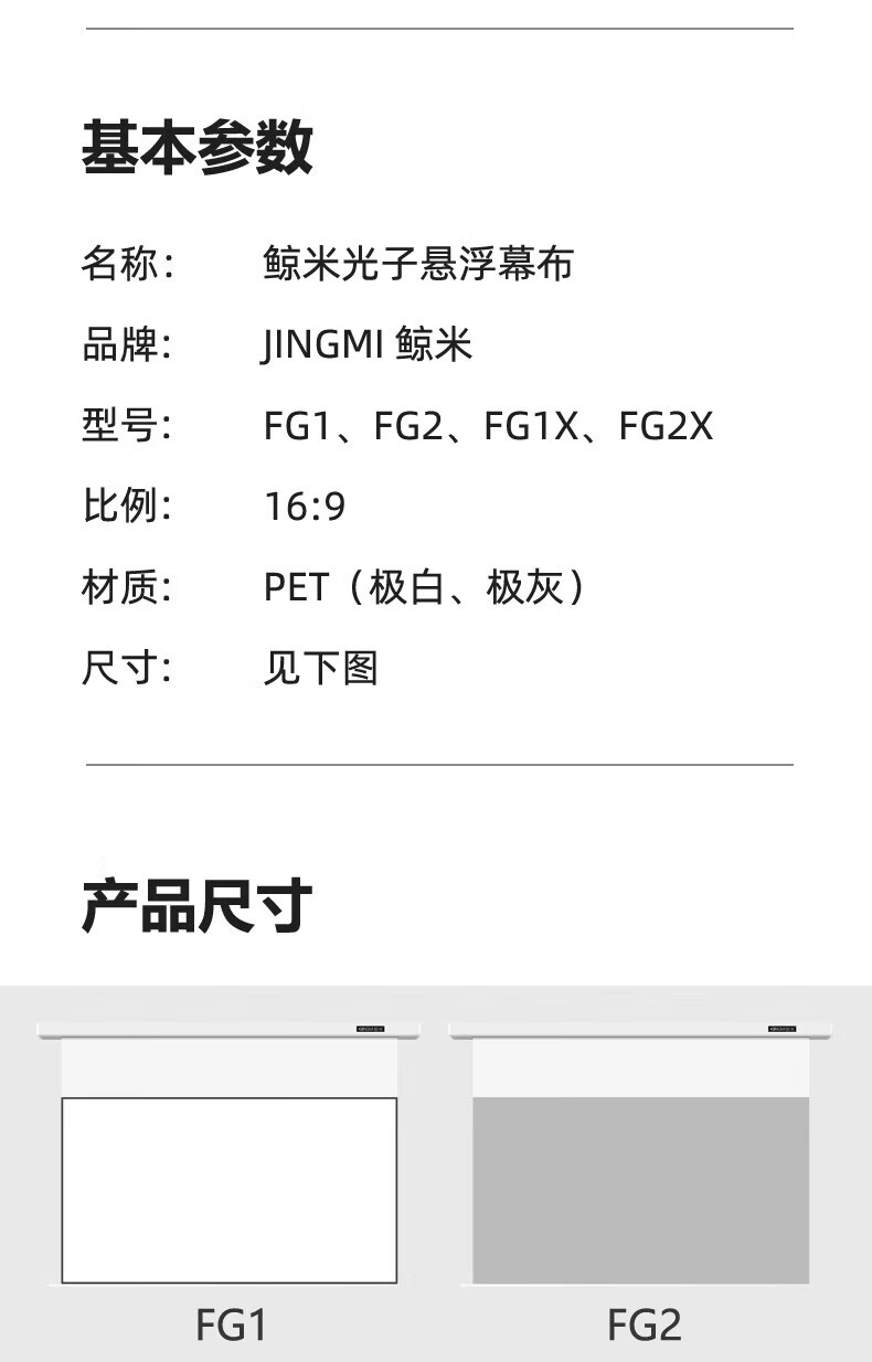 鲸米(JINGMI)投影幕布电动遥控自动升降高清4K家用投影配件玻纤光子幕布客厅卧室壁挂吊顶隐藏投影仪屏幕 【高清4K白玻纤D5-黑边款丨投影百搭丨可侧投】 84英寸16:9(包安装)