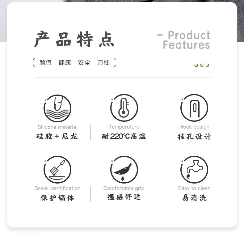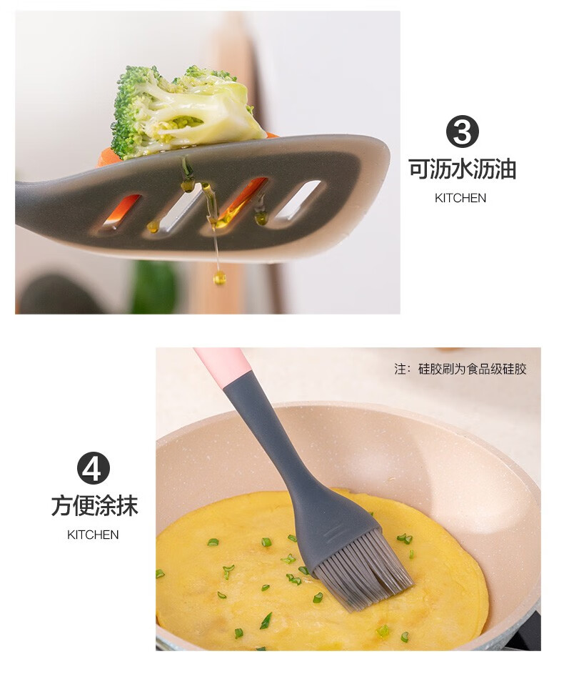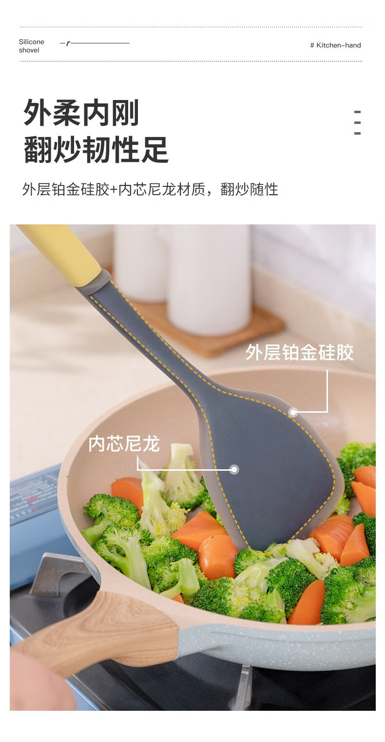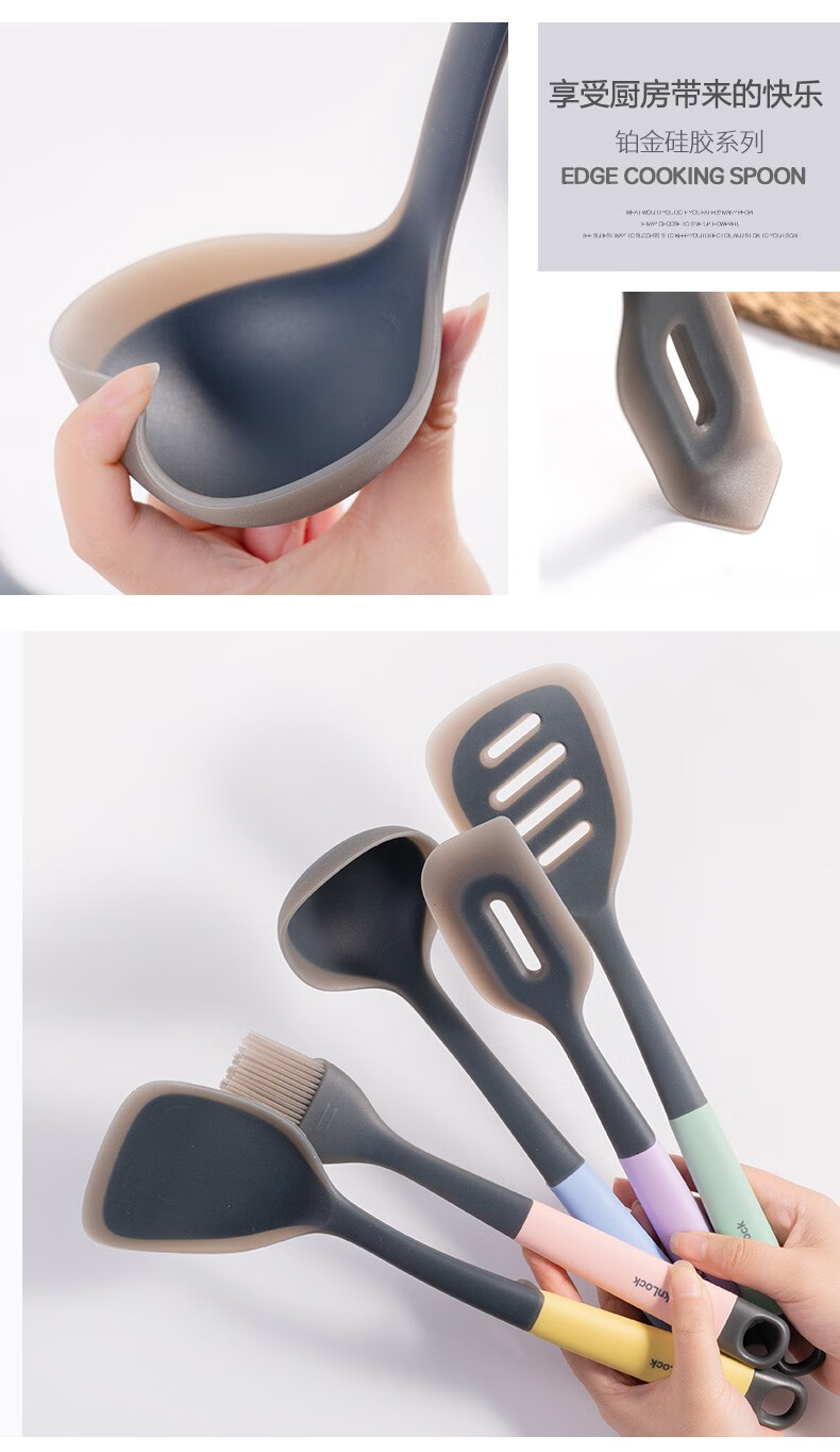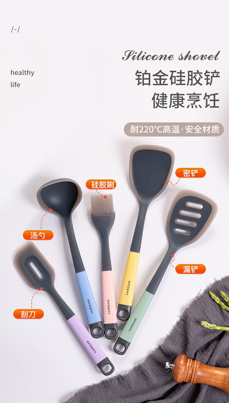 乐扣乐扣铂金硅胶铲家用食品级不粘锅专用套装耐高温厨房锅铲5件套 密铲