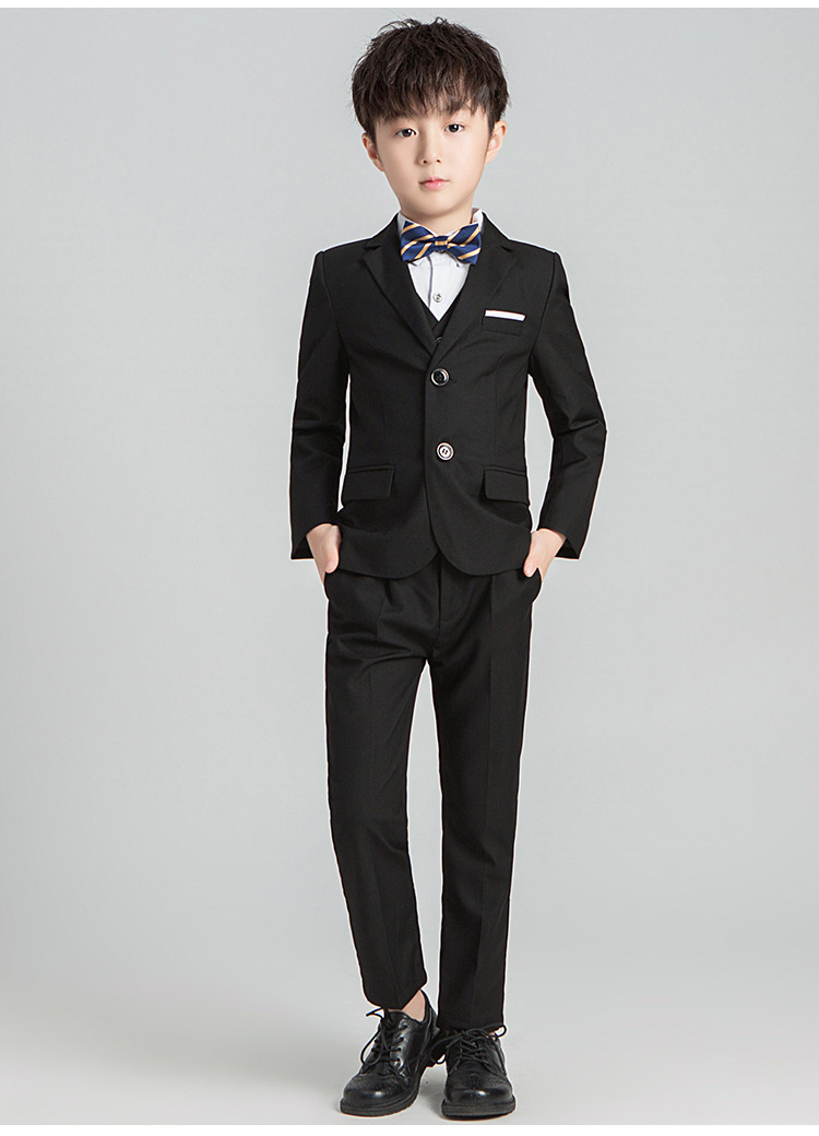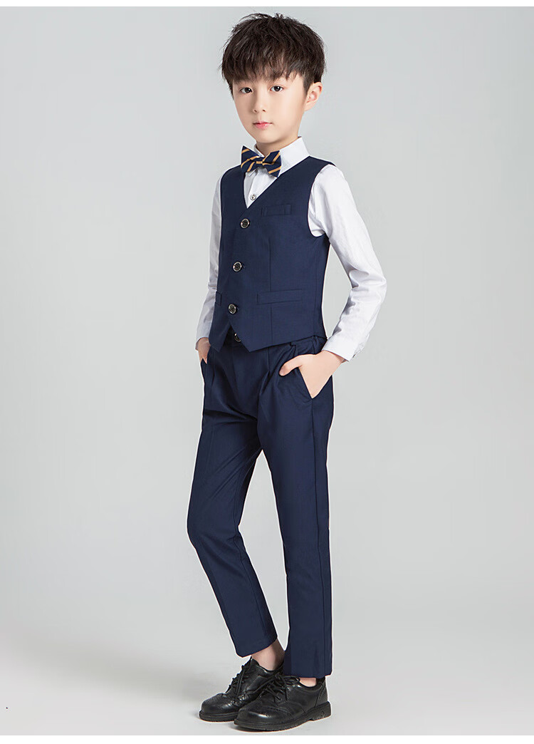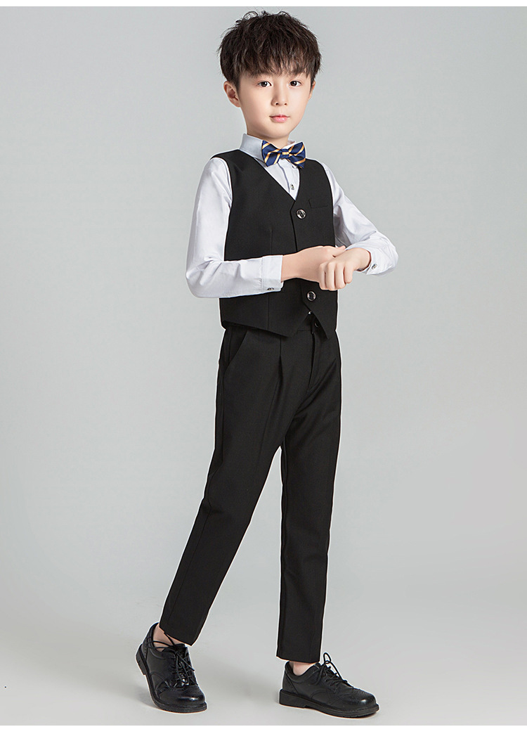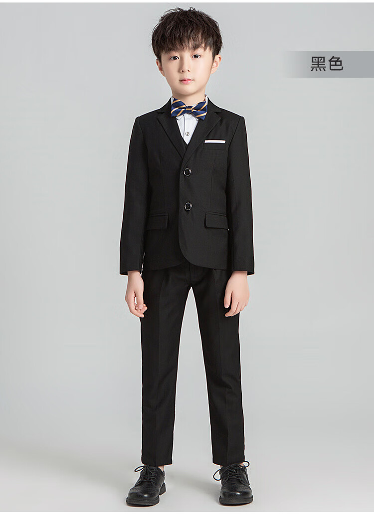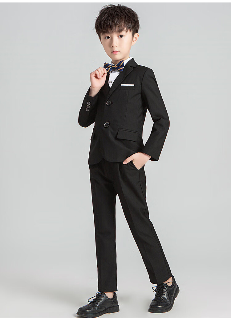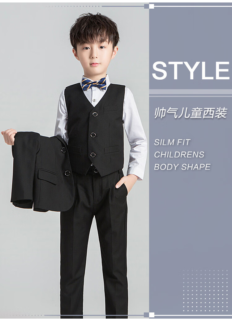 丰灵鸟儿童西装男童西服小西装学生纯色韩版花童主持礼服套装 黑色马甲3件套 130 cm,建议体重43-50斤