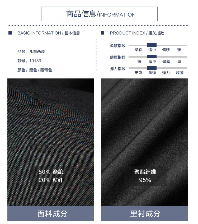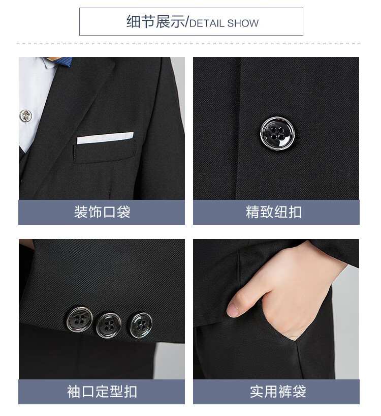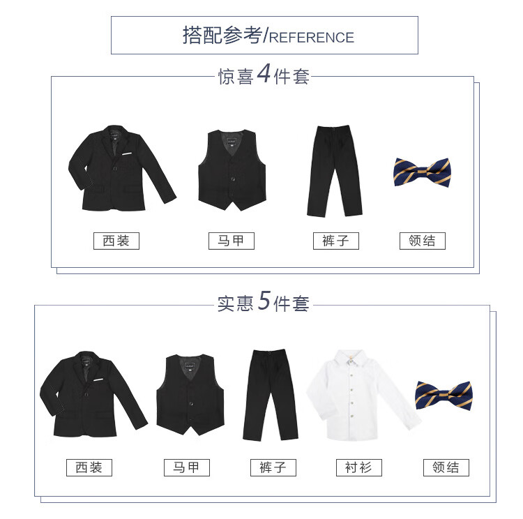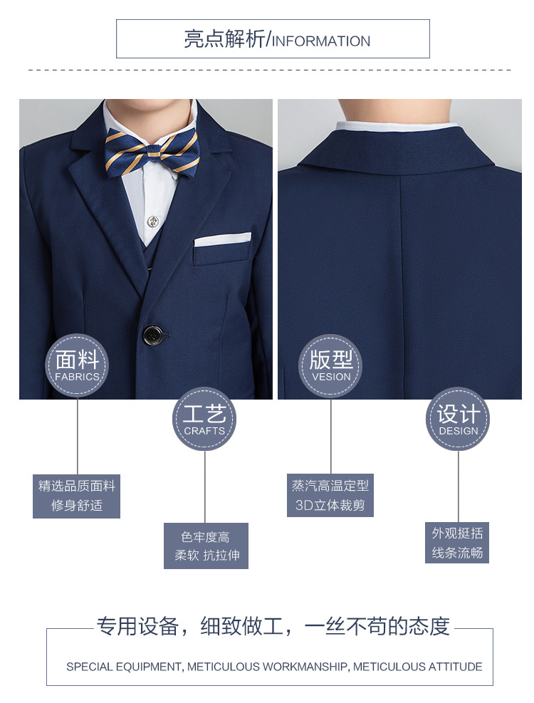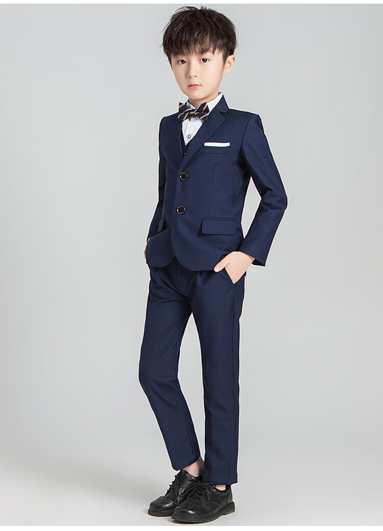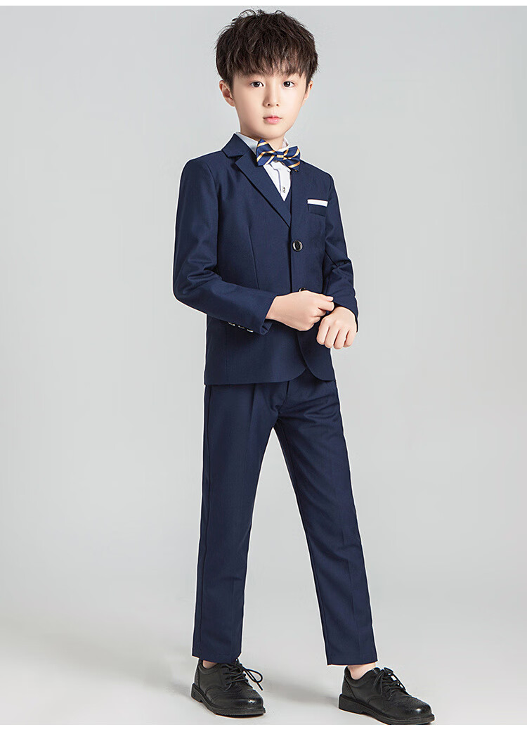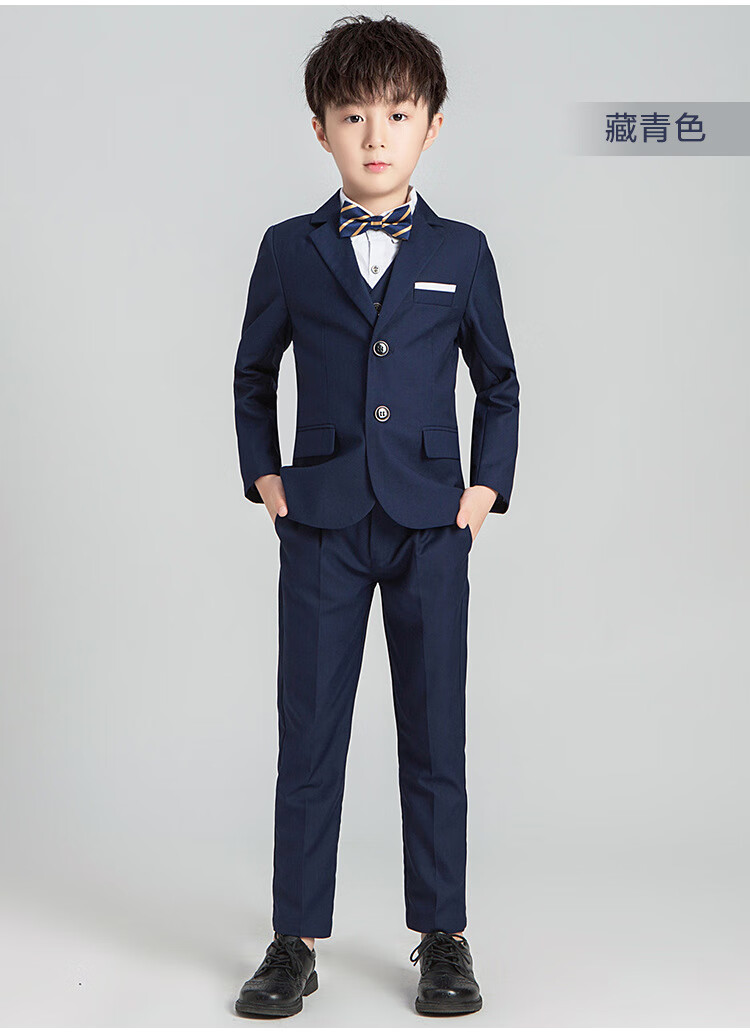 丰灵鸟儿童西装男童西服小西装学生纯色韩版花童主持礼服套装 黑色马甲3件套 130 cm,建议体重43-50斤