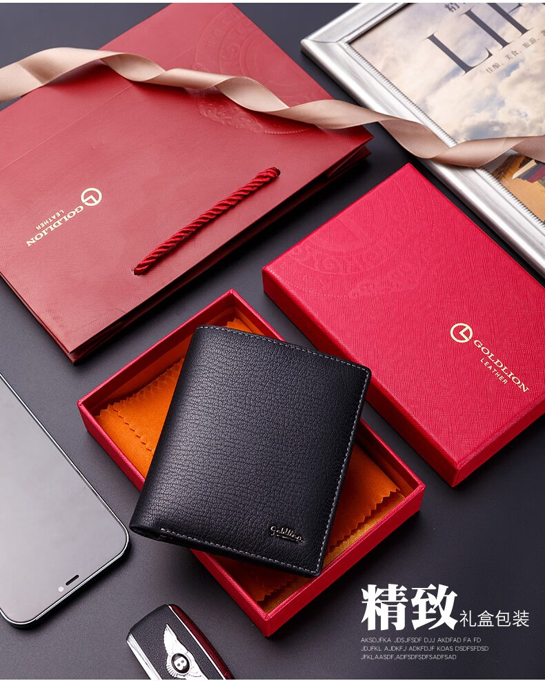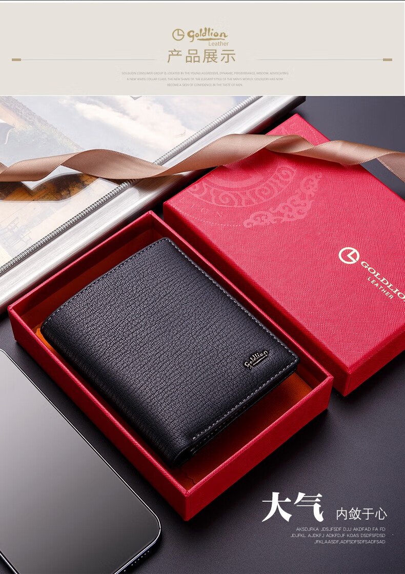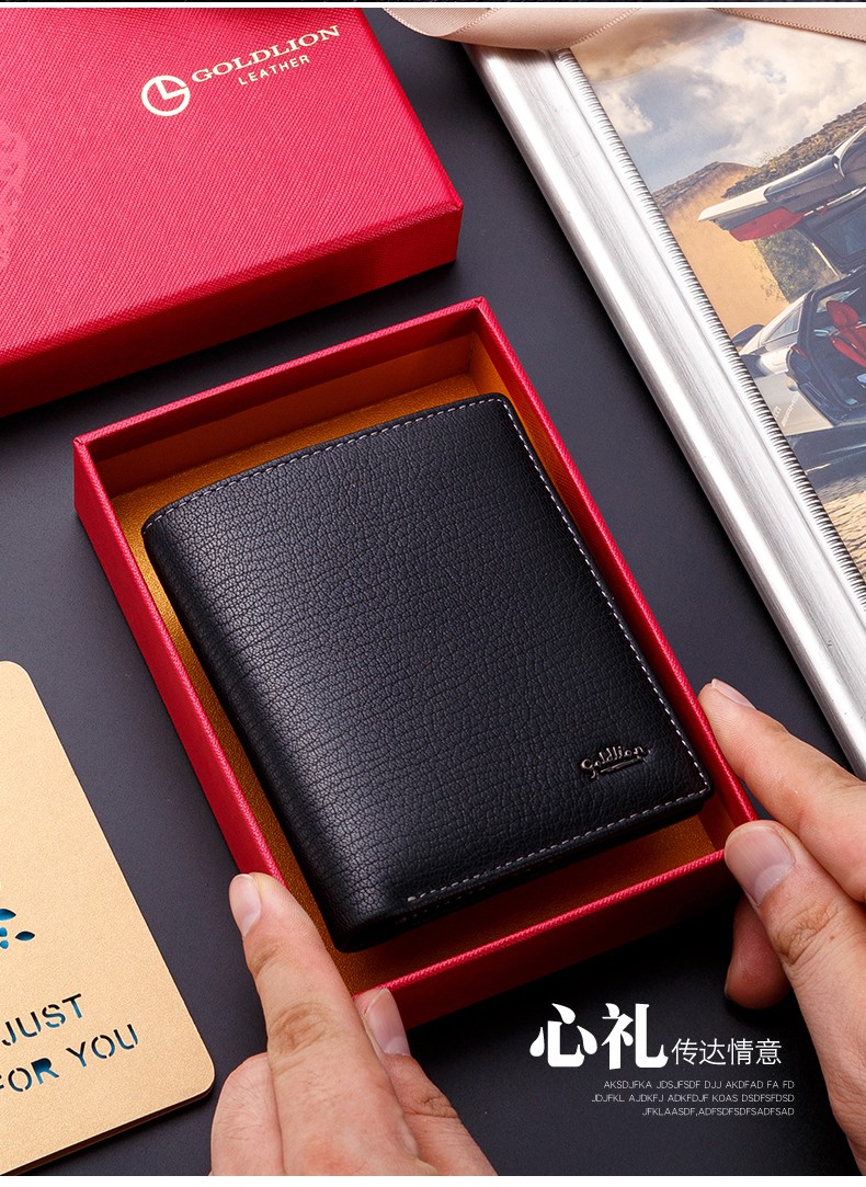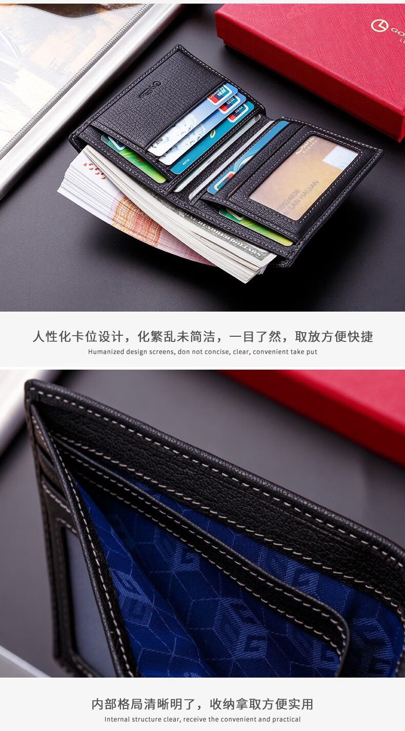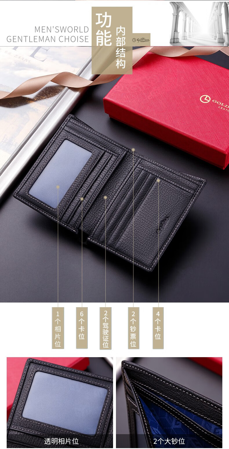 金利来男士钱包男竖款钱夹银包短款真皮头层牛皮时尚钱夹情人节礼物新款 竖 款(精致礼盒套装)