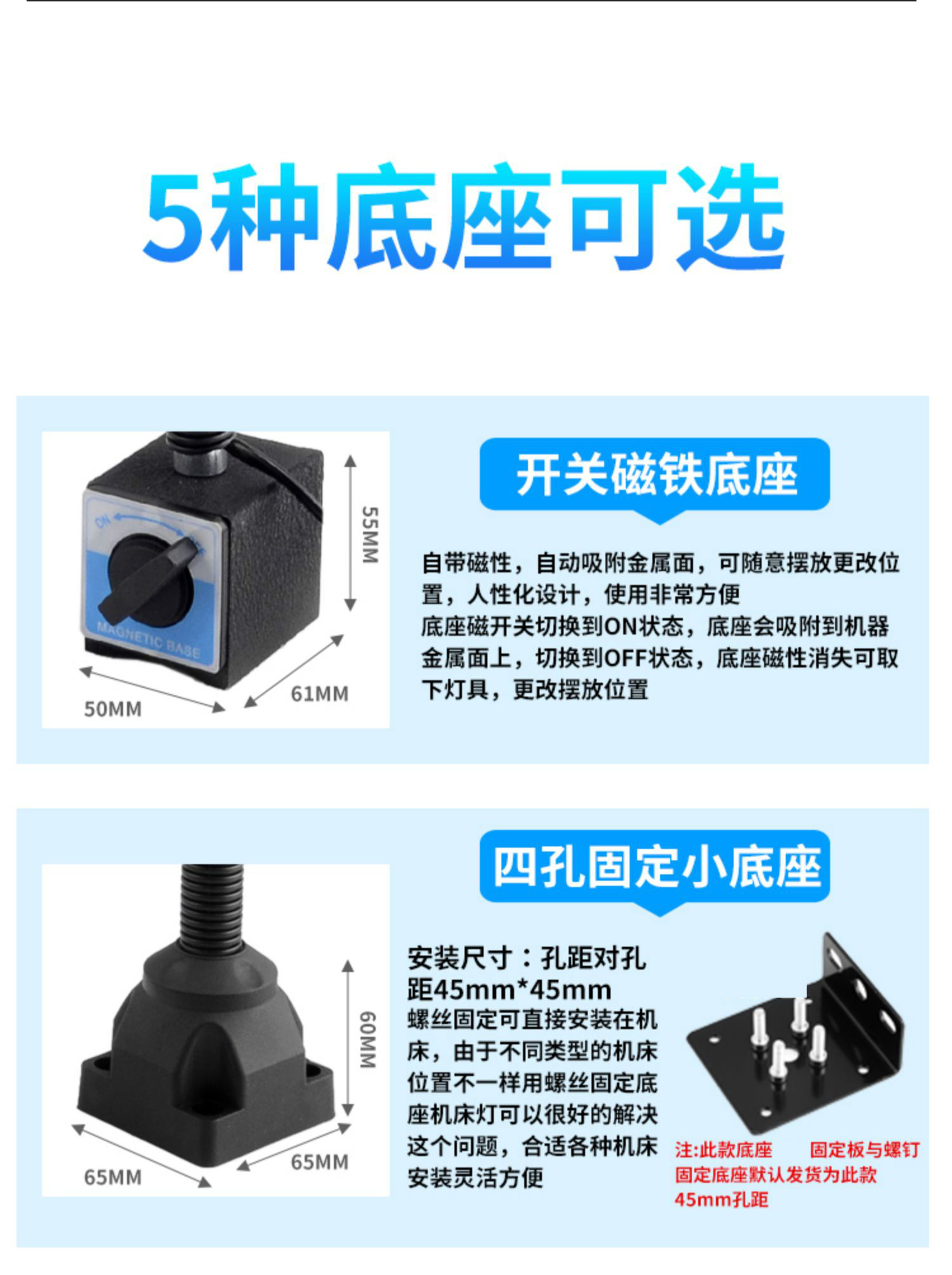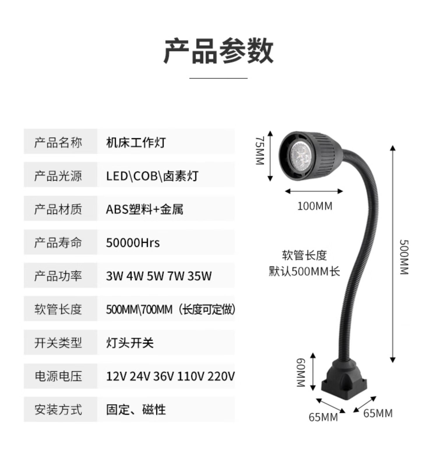Chu Baohui machine tool work light magnet LED lathe light punch milling machine magnetic seat lighting industrial table lamp 24V220V36V fixed 220V5W tube length 500