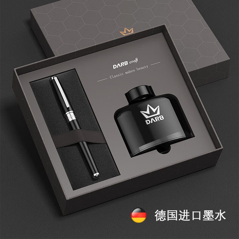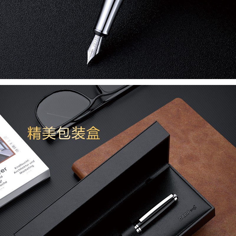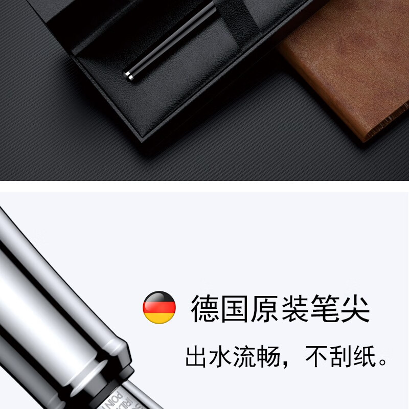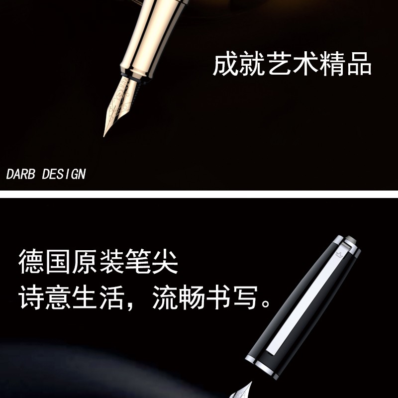 德柏高端钢笔德国进口总成【教师节礼物】免费刻字礼盒套装成人男女士书法练字領導送礼 银色深黑 0.5F尖【中等粗细】墨水礼盒