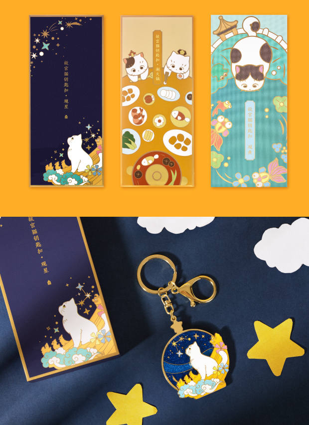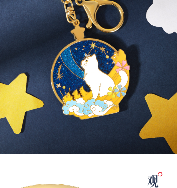 Museum, Cultural and Creative Palace Cat Car Keychain Ring Couple Pendant Starry Sky Decoration Pendant Birthday Gift Christmas Stargazing Cat