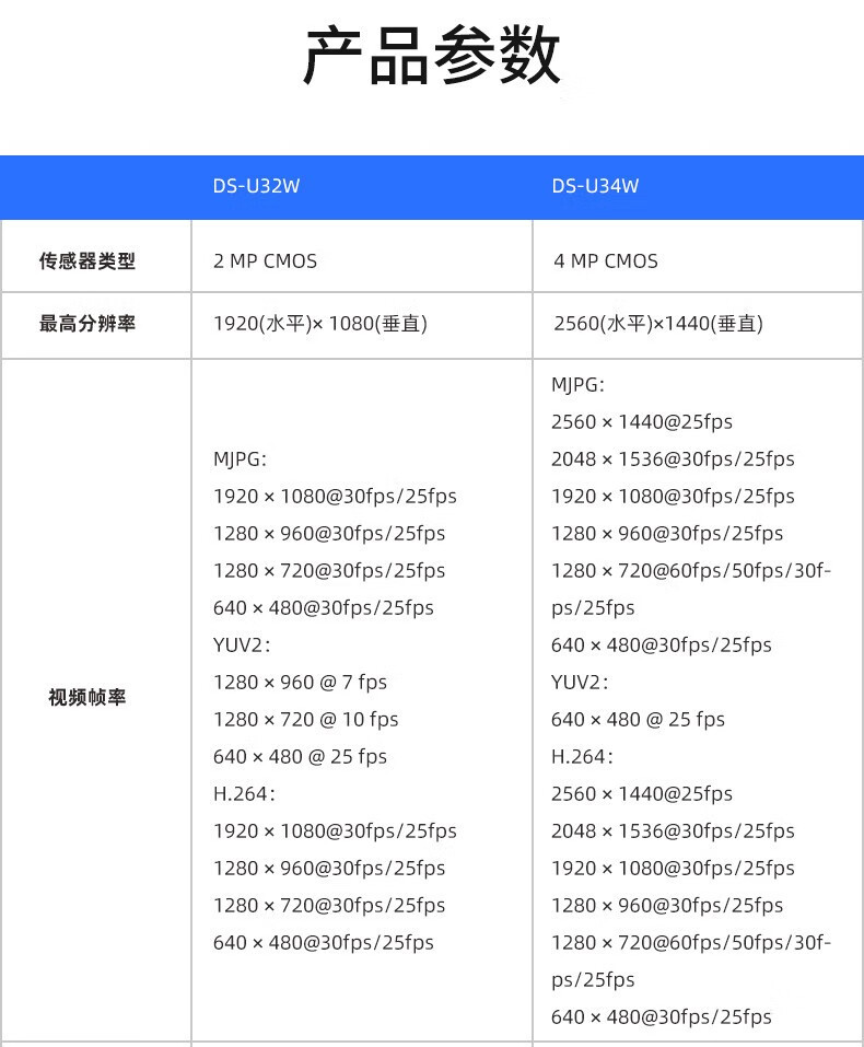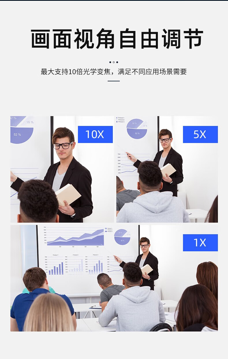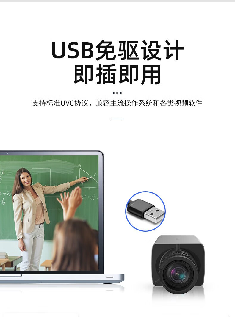 海康威视1080P摄像头USB直播摄像机工业相机电脑直播网课教学4K视频录制摄像机会议摄像头长焦镜头 2K 直播摄像机DS-U34W 2.7-13mm