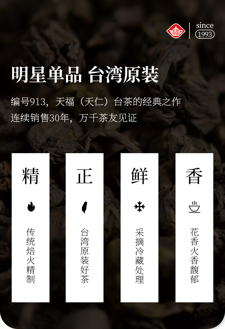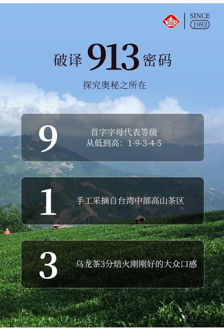 天福茗茶 913乌龙茶叶 高山茶台湾天仁茗茶 300克