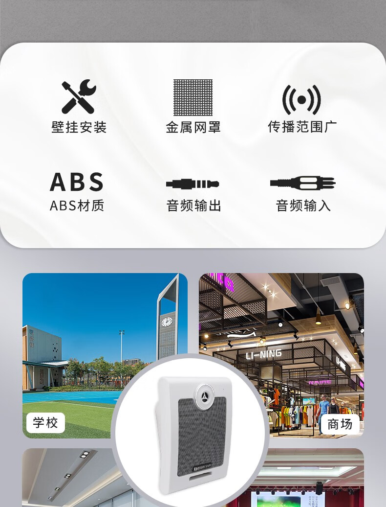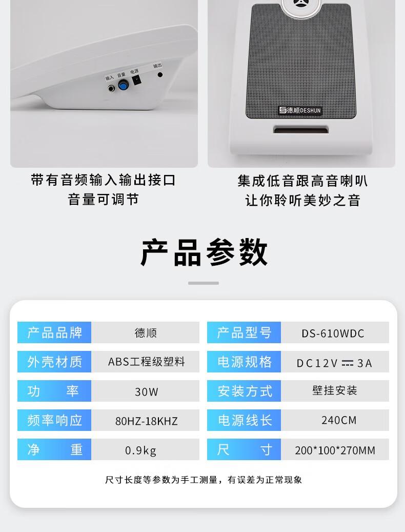 德顺(DESHUN) 610WDC有源壁挂式音箱内置功放30W教室音响监控喇叭音响 有源壁挂音箱+连接线+电源