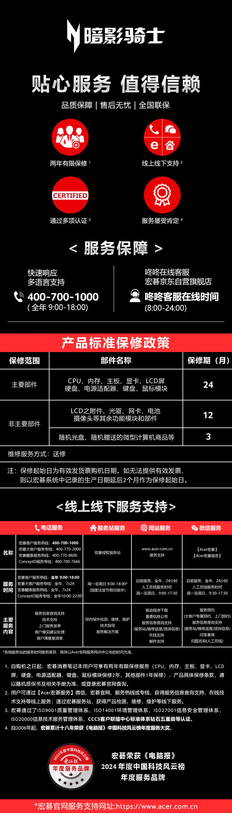 宏碁(acer)掠夺者·擎neo 暗影骑士·擎5/6/7 pro级酷睿标压HX可选满血独显直连大学生优惠笔记本电脑游戏本 i7-14650HX/4060/2.5K/擎6 16G/1TB PCI-e固态/优选版