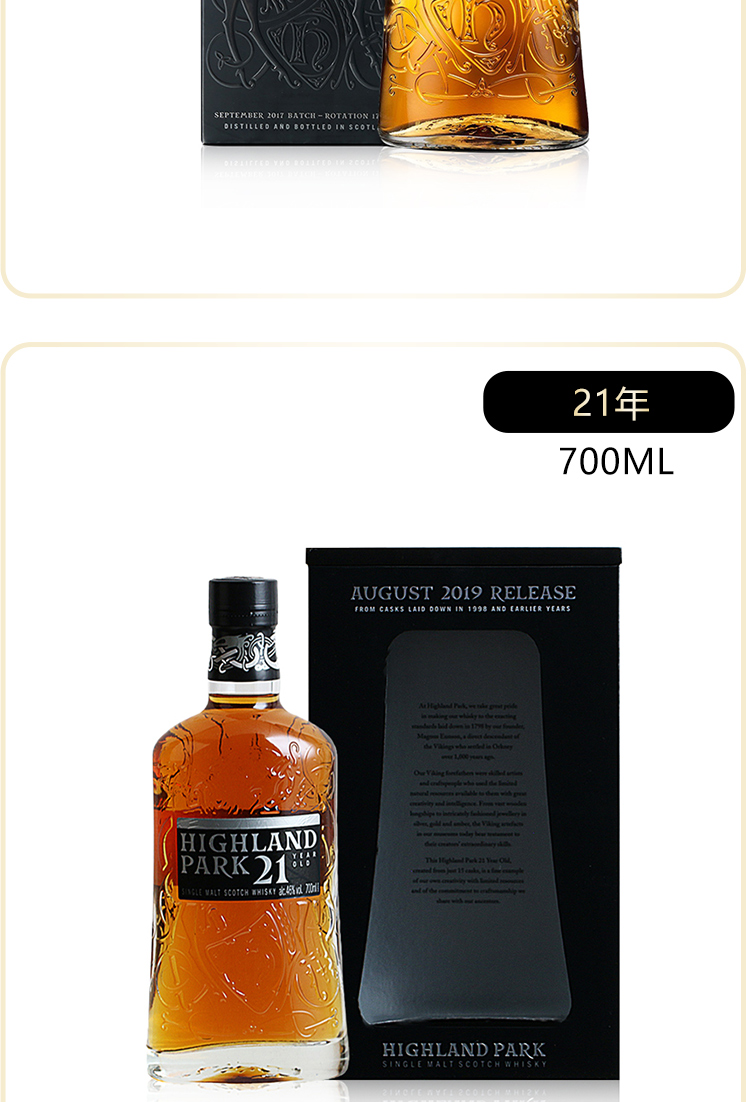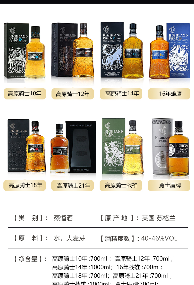 高原骑士(Highland Park)【7-PLUS】苏格兰单一麦芽泥煤风味威士忌原装进口洋酒礼品 高原骑士21年700ml