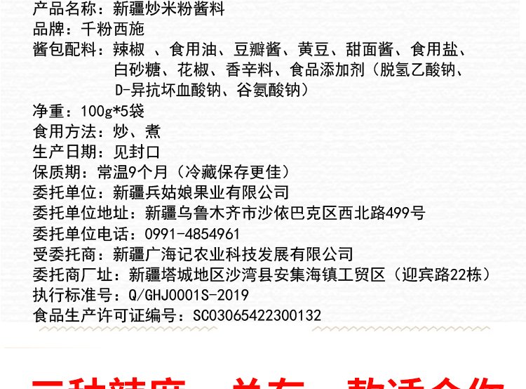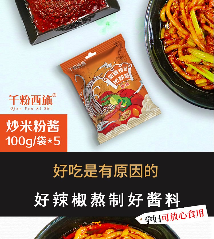 等你回疆 5袋装新疆爆辣炒米粉网红款千粉西施专用酱包商用调料 专用米粉酱5包爆辣