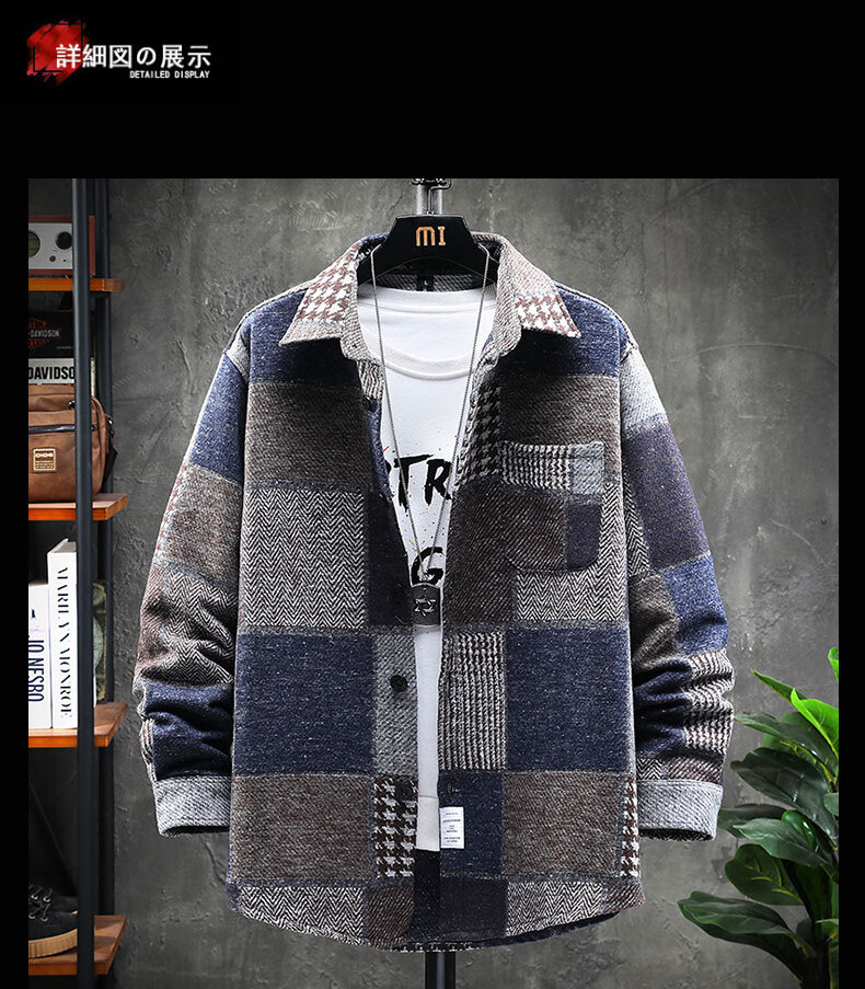 啄木鸟(TUCANO)2025春秋季磨毛衬衫男格子宽松大码潮流百搭衬衣男士休闲外套潮 蓝色 2XL 适合160-180斤