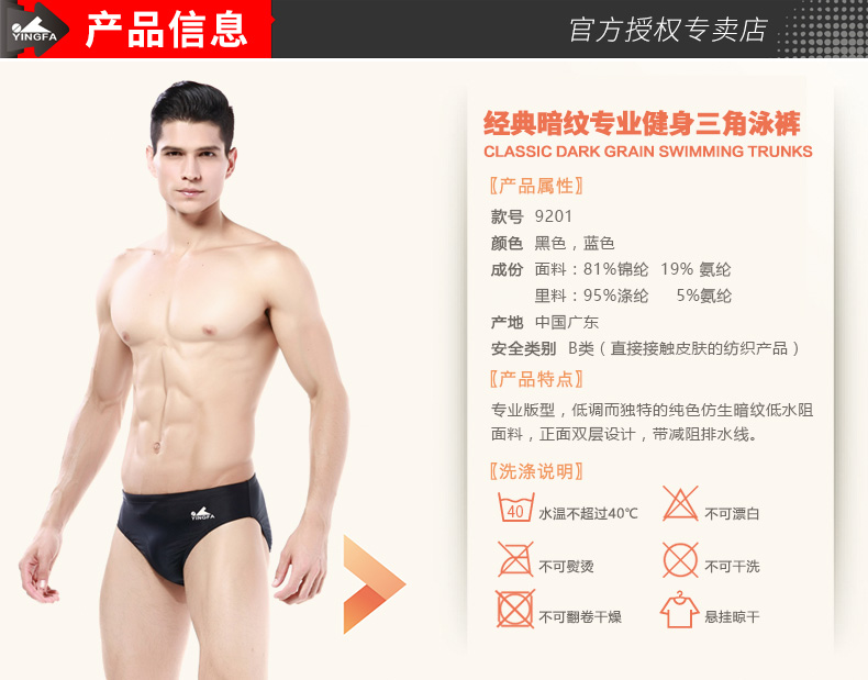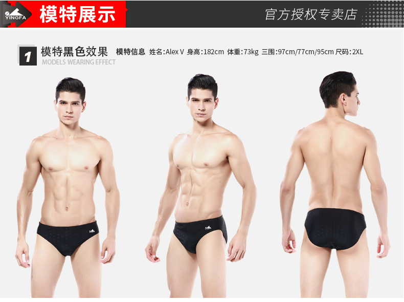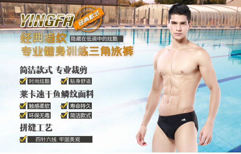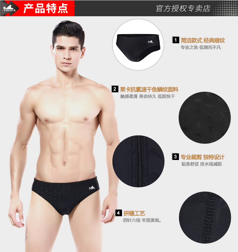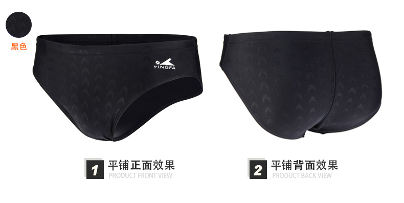 YINGFA swimming trunks men's professional triangle competition training swimming trunks imitation shark skin scale pattern adult and children's competition swimming trunks black S (waist 51-56 cm)