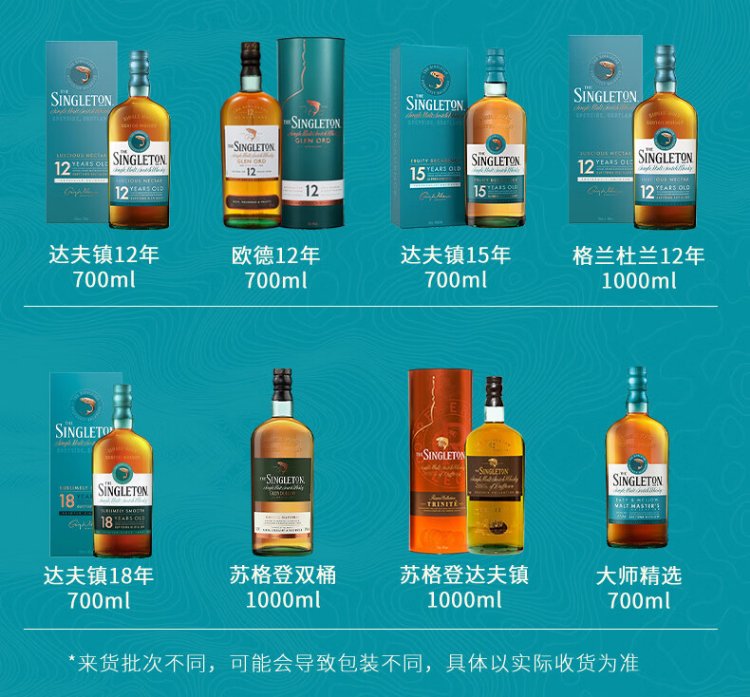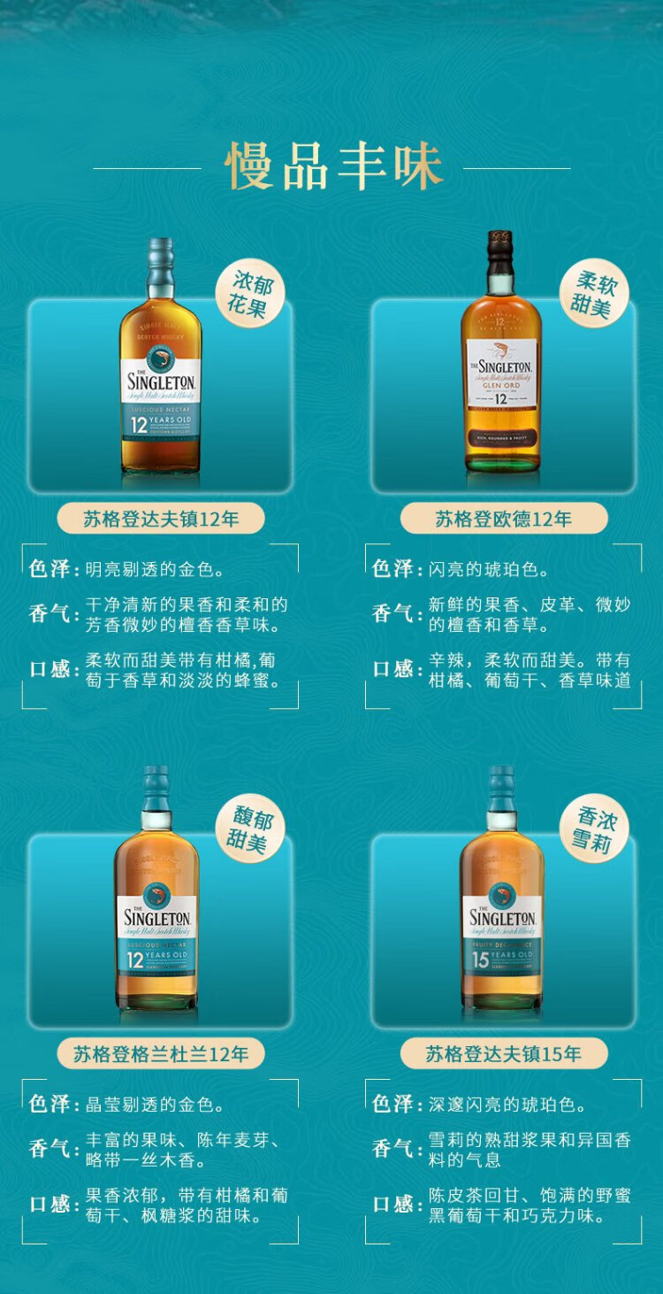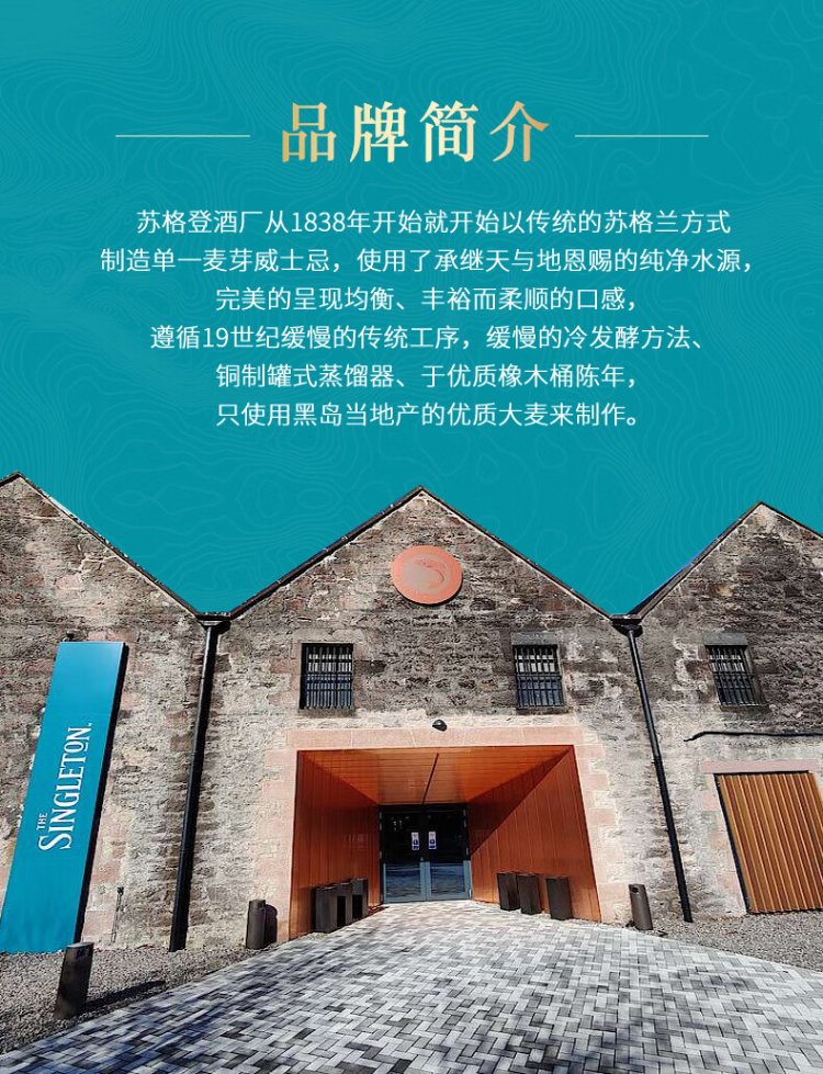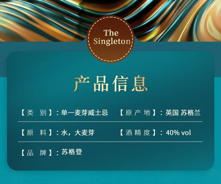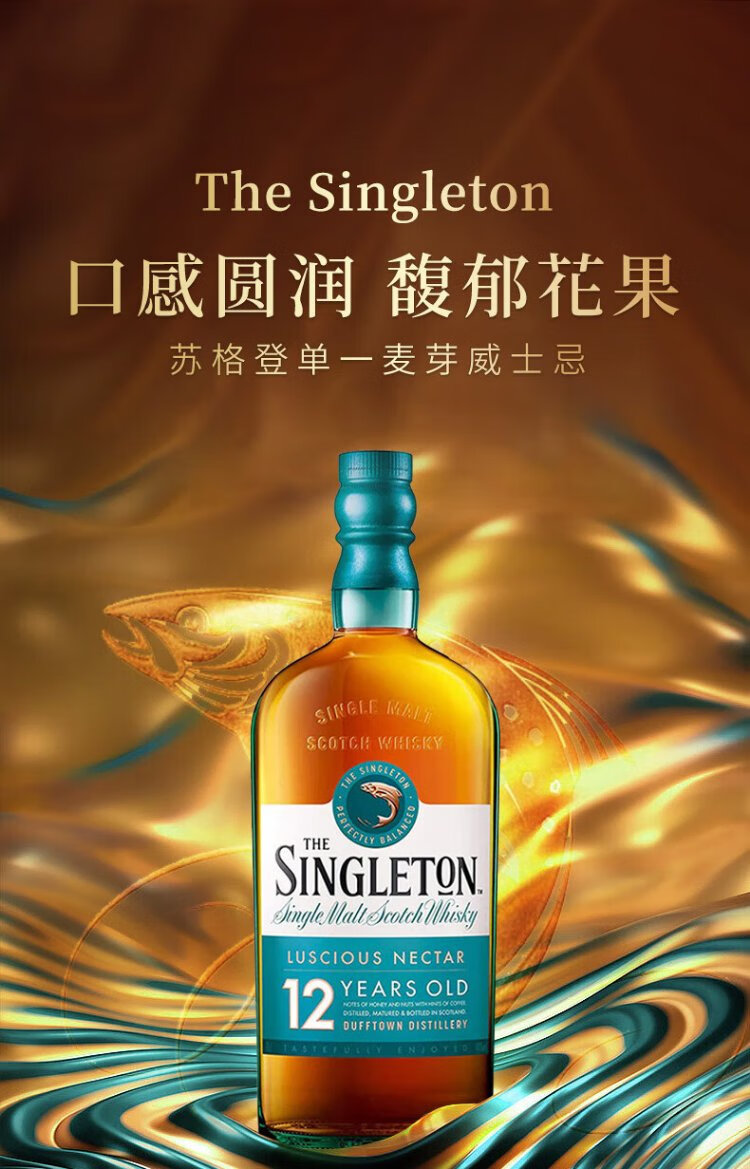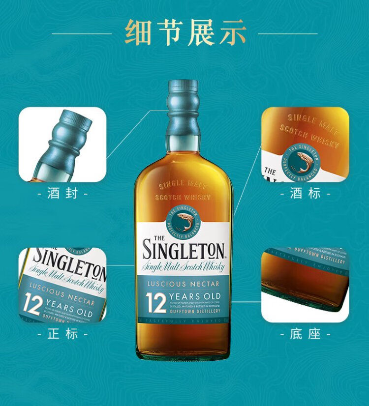 苏格登(Singleton) 苏格兰单一麦芽威士忌洋酒12年雪莉桶斯佩塞达夫镇 裸瓶-苏格登大师精选700ml