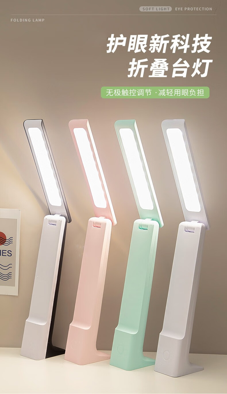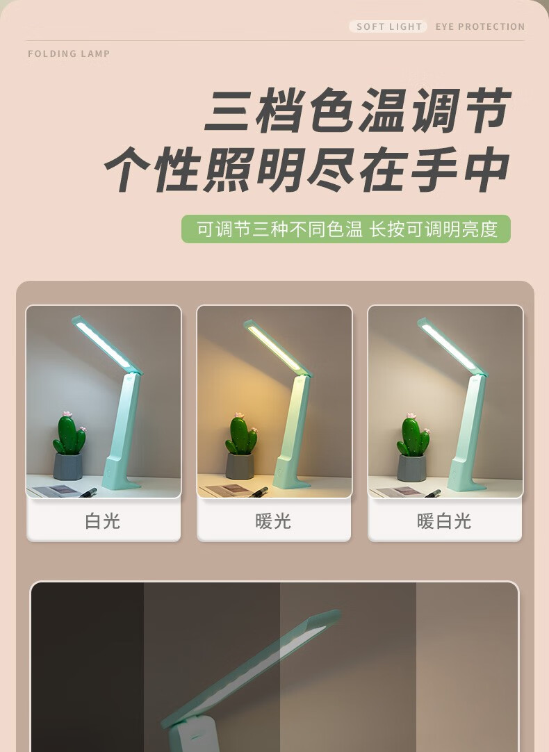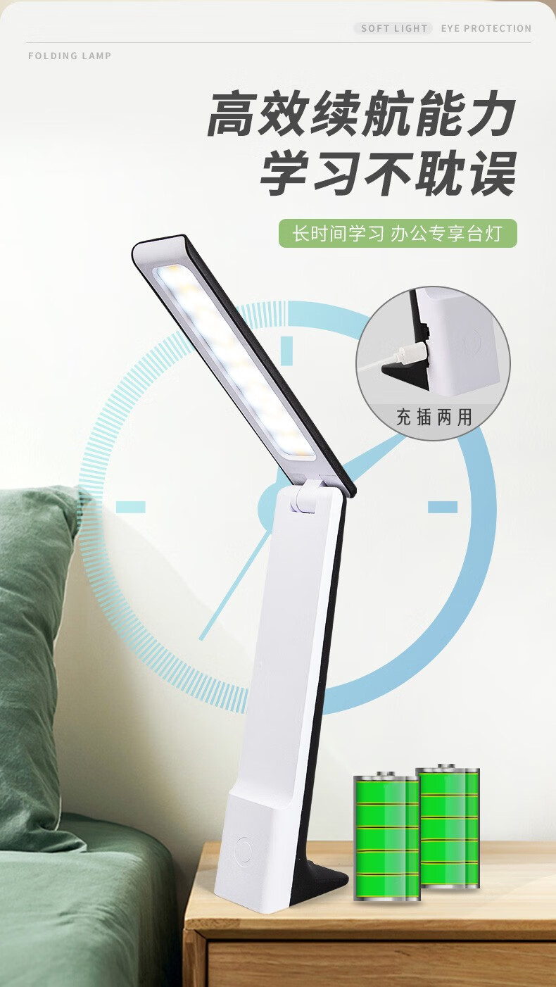 Chuyi learning and reading desk lamp, rechargeable and plug-in, three-level color-adjustable LED writing and reading lamp, student dormitory desk, infinitely dimmable folding desk lamp, white
