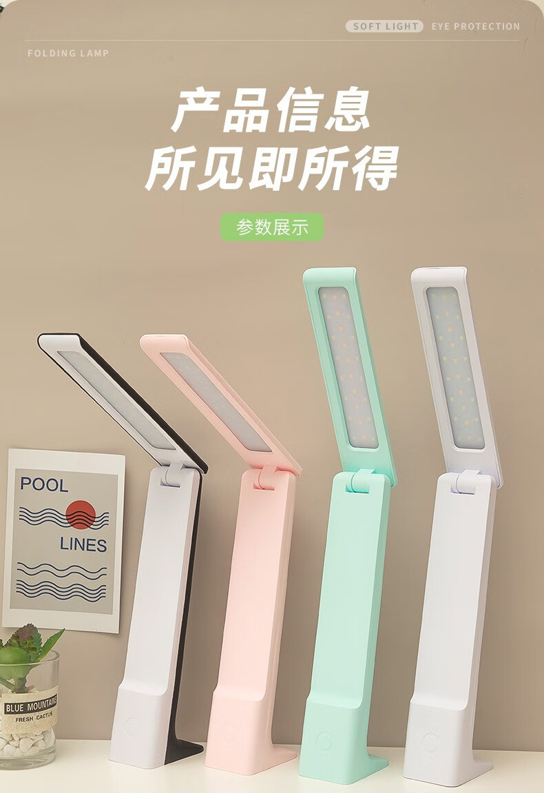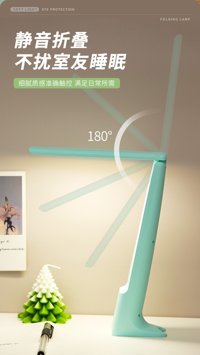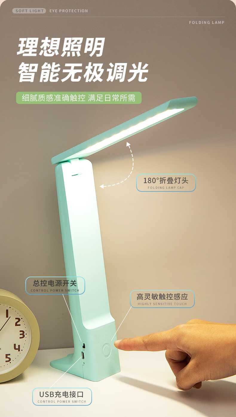 Chuyi learning and reading desk lamp, rechargeable and plug-in, three-level color-adjustable LED writing and reading lamp, student dormitory desk, infinitely dimmable folding desk lamp, white