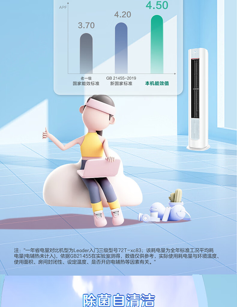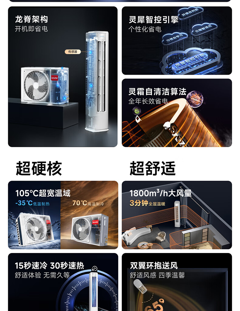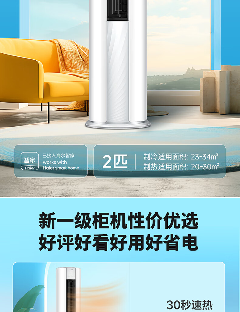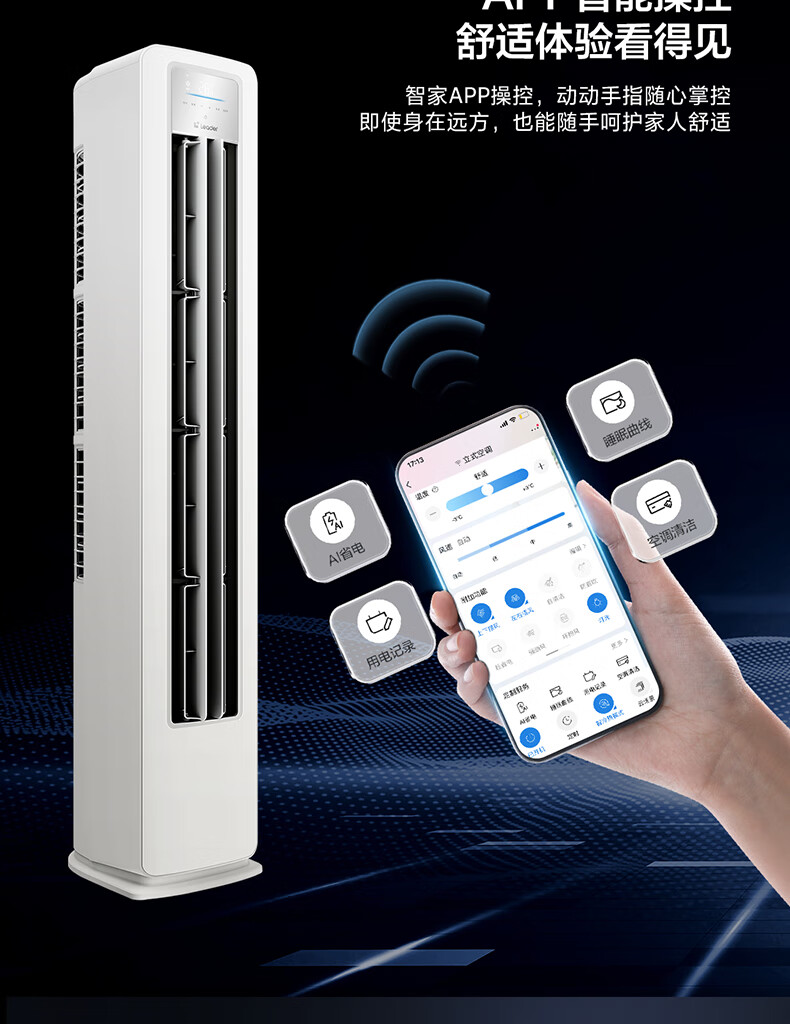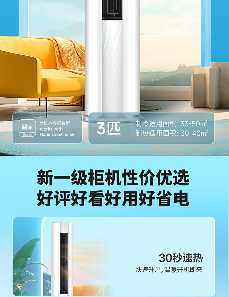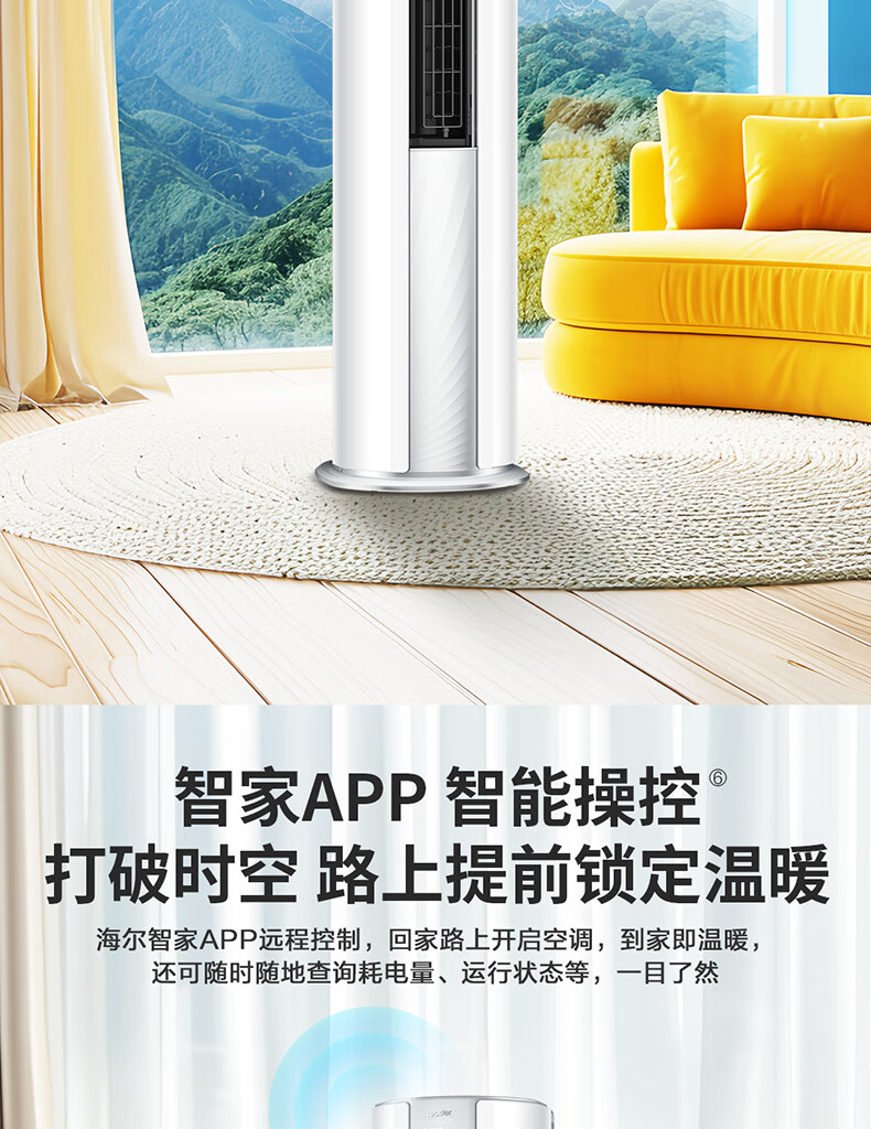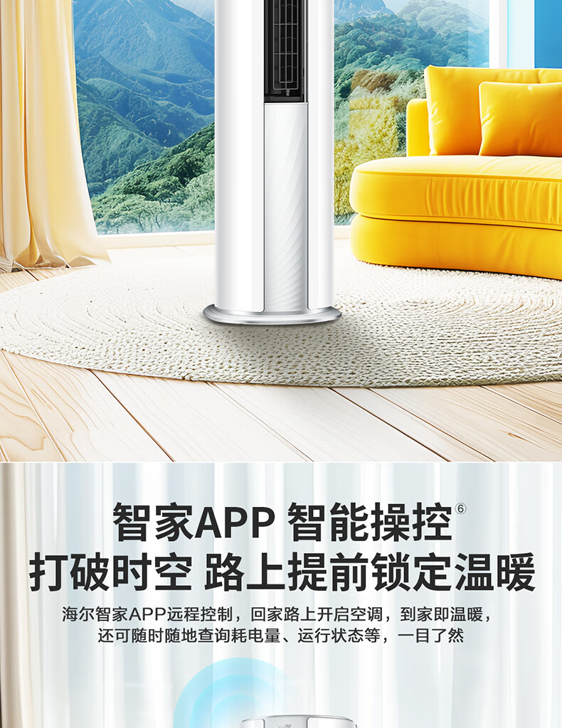 Leader Haier Smart Home produces air conditioner frequency conversion first-level energy efficiency healthy self-cleaning one-click WiFi intelligent control home heating and cooling living room cabinet air conditioner first-level energy efficiency AI power-saving self-cleaning large air volume cabinet air conditioner 3 HP