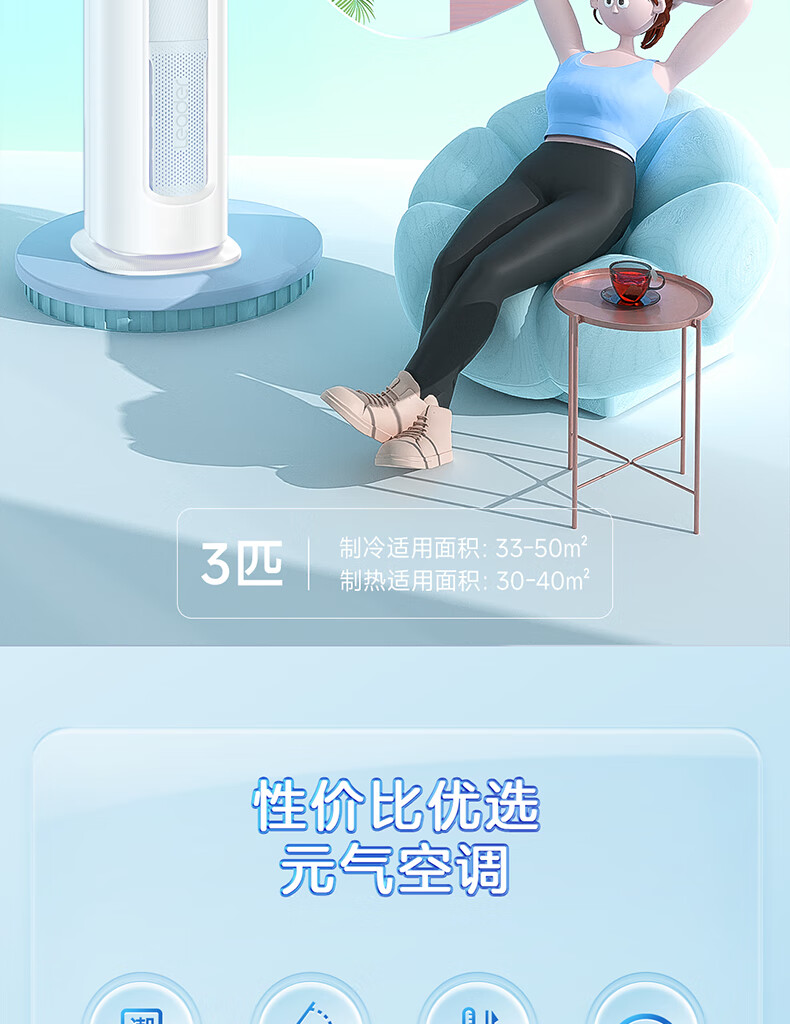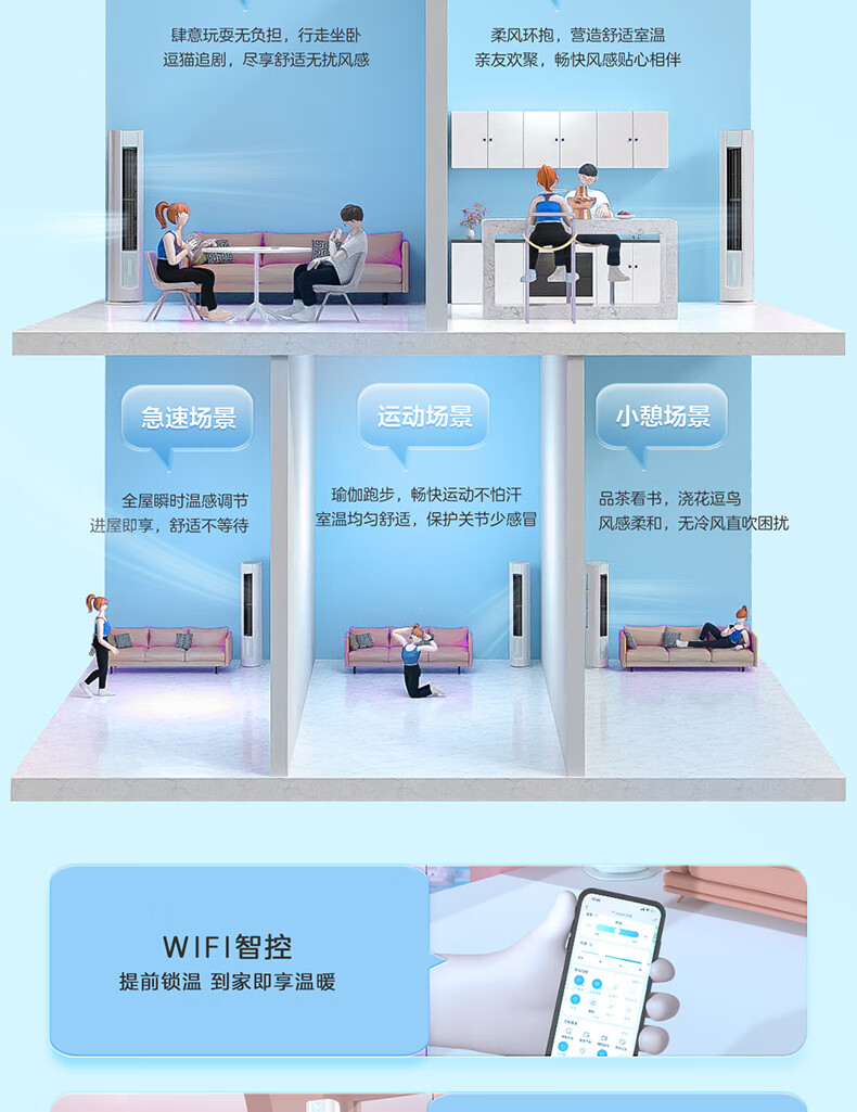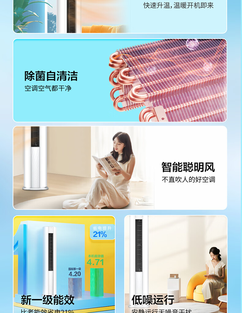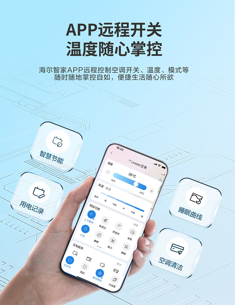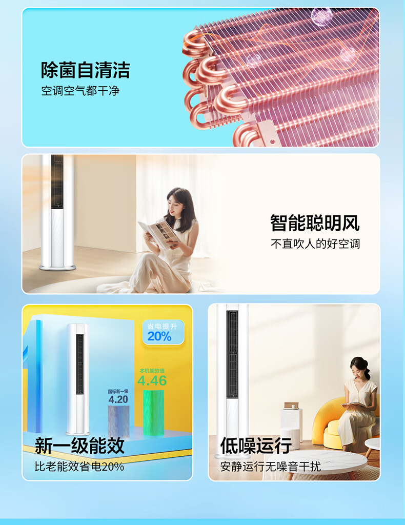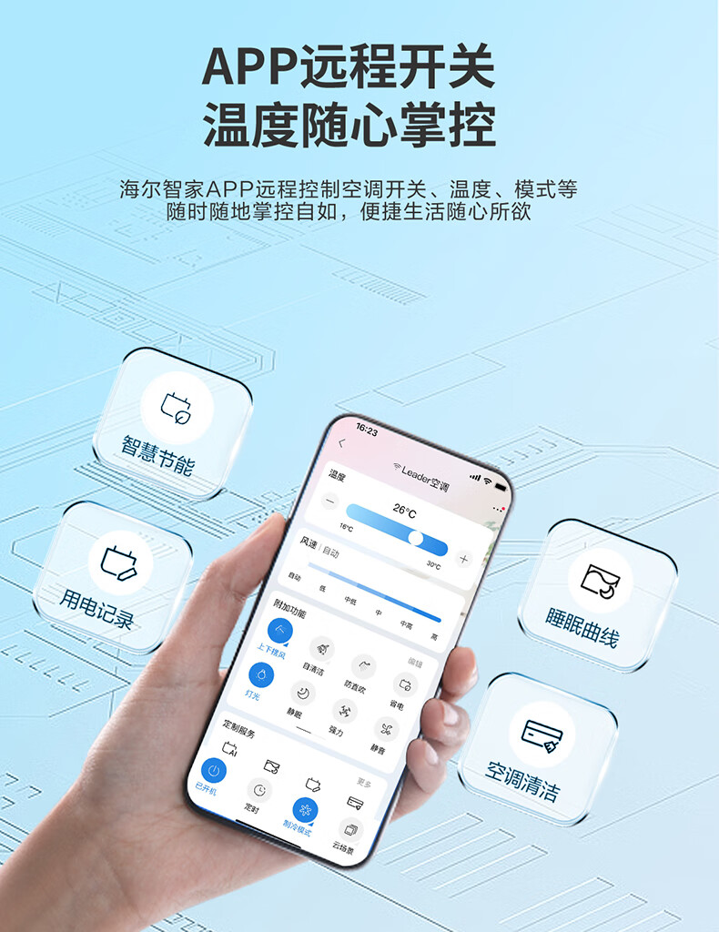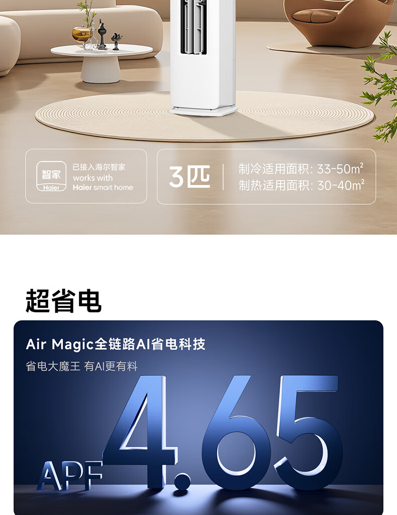 Leader Haier Smart Home produces air conditioner frequency conversion first-level energy efficiency healthy self-cleaning one-click WiFi intelligent control home heating and cooling living room cabinet air conditioner first-level energy efficiency AI power-saving self-cleaning large air volume cabinet air conditioner 3 HP