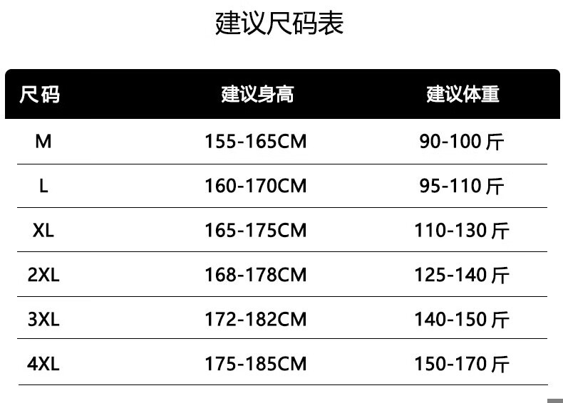 China (cm) 160-165/84-86 165-170 / 88-90 167-172 / 92-96 168-173 / 98-102 170-176 / 106-110