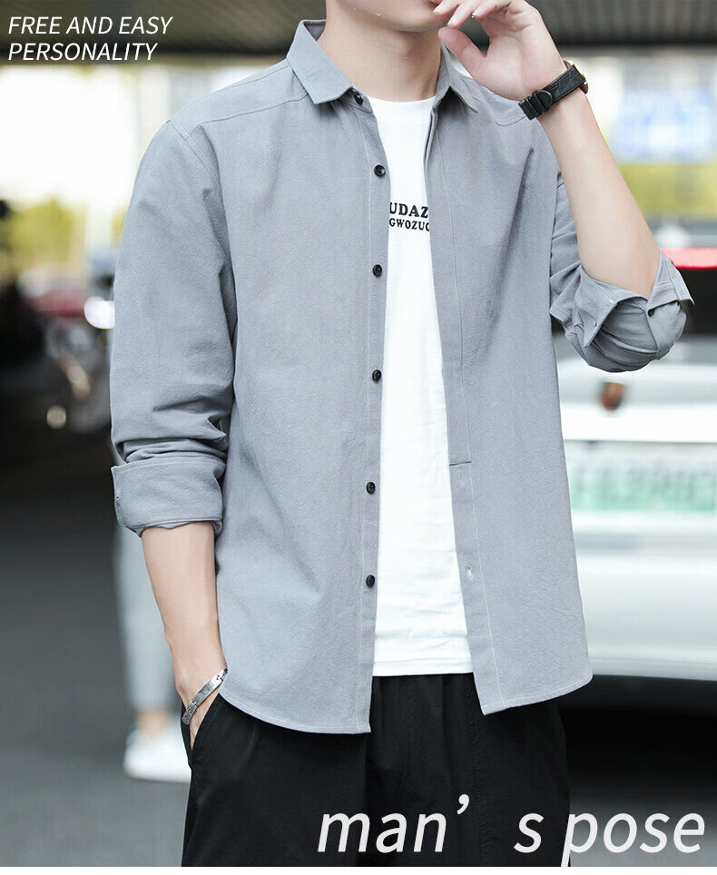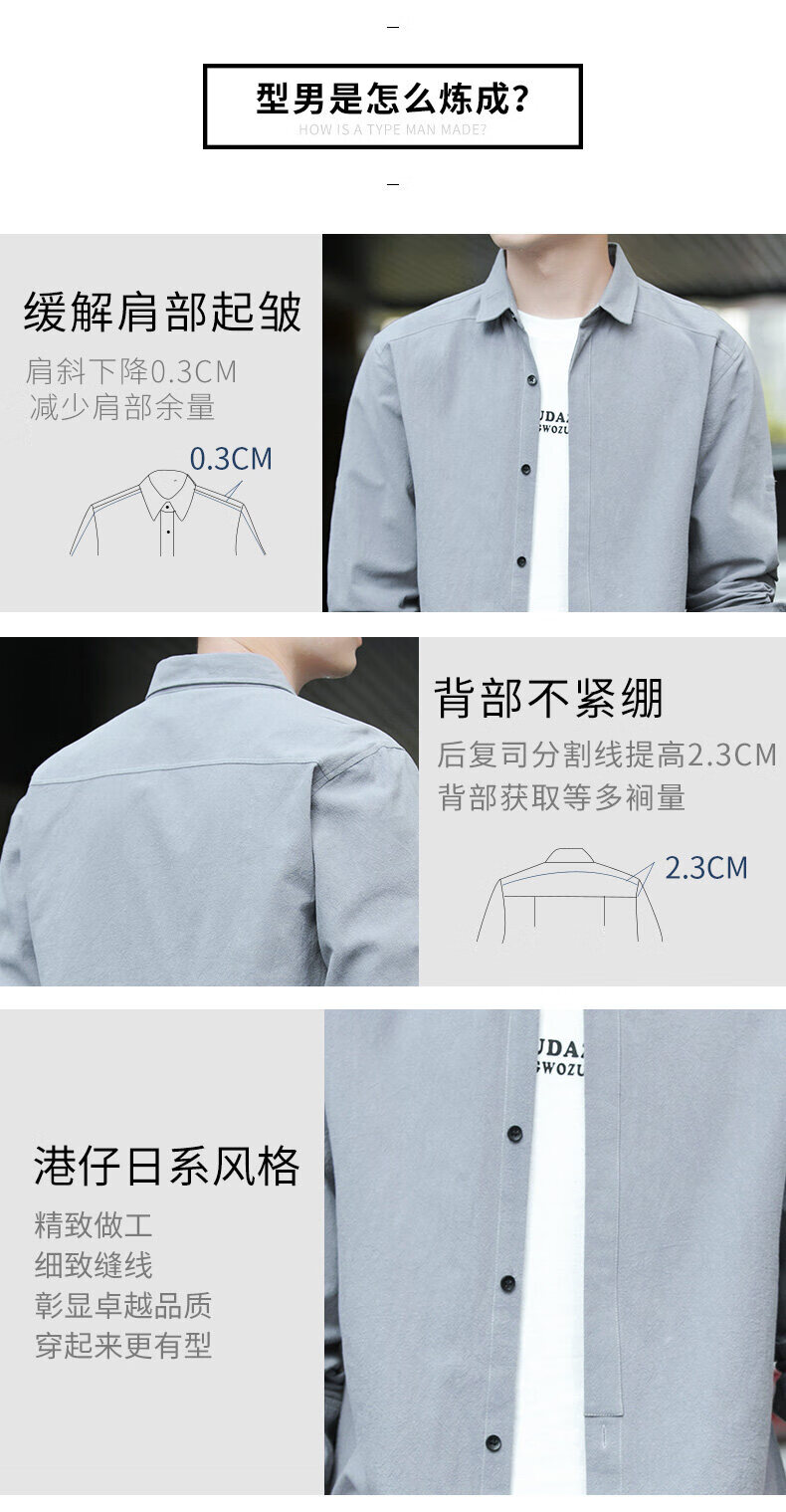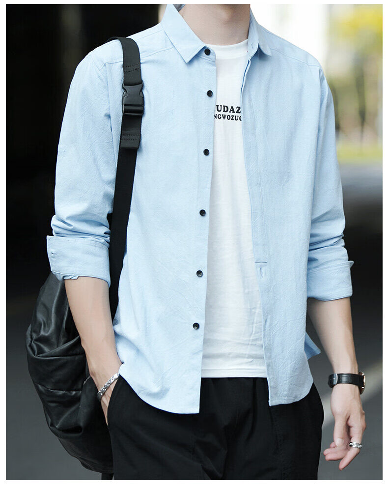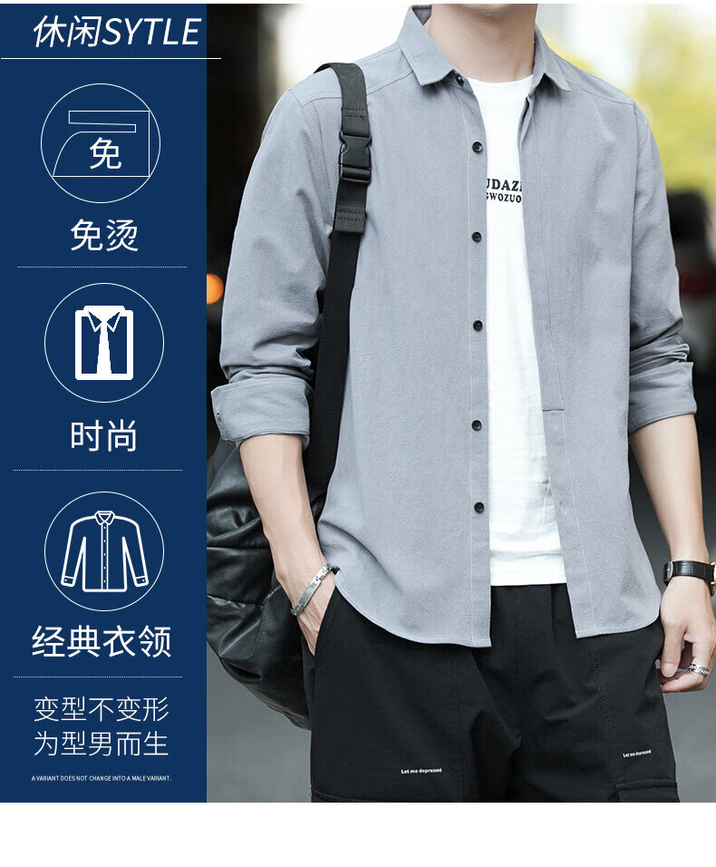花花公子(PLAYBOY)长袖衬衫男士春夏季纯棉衬衣工装宽松商务休闲外套保龄球上衣服秋 浅蓝色【长袖款】 L