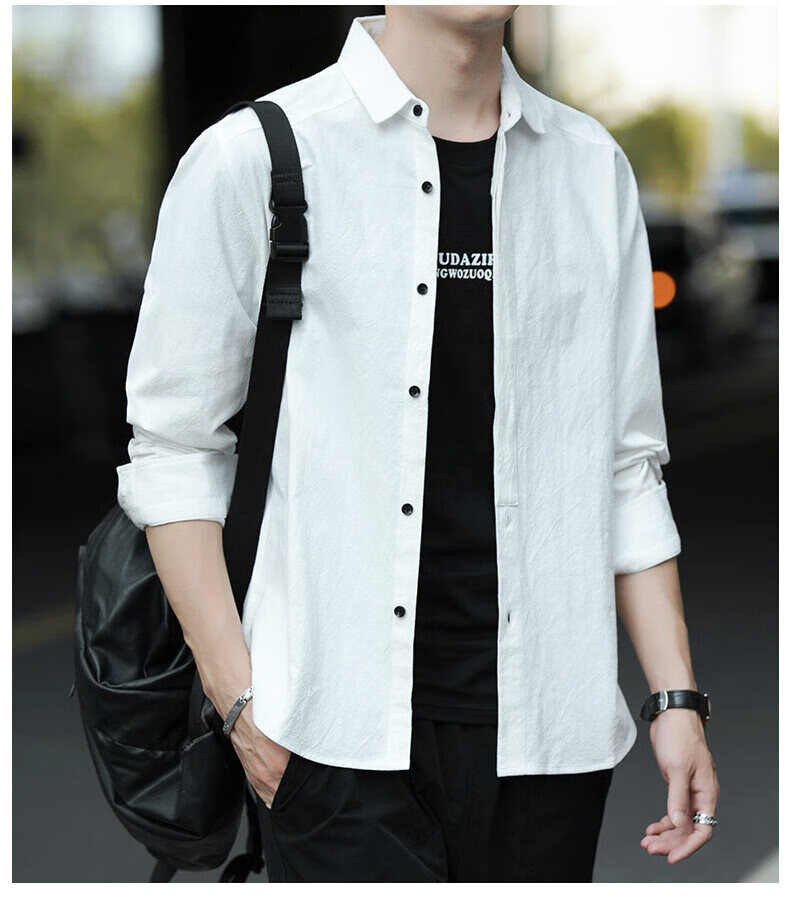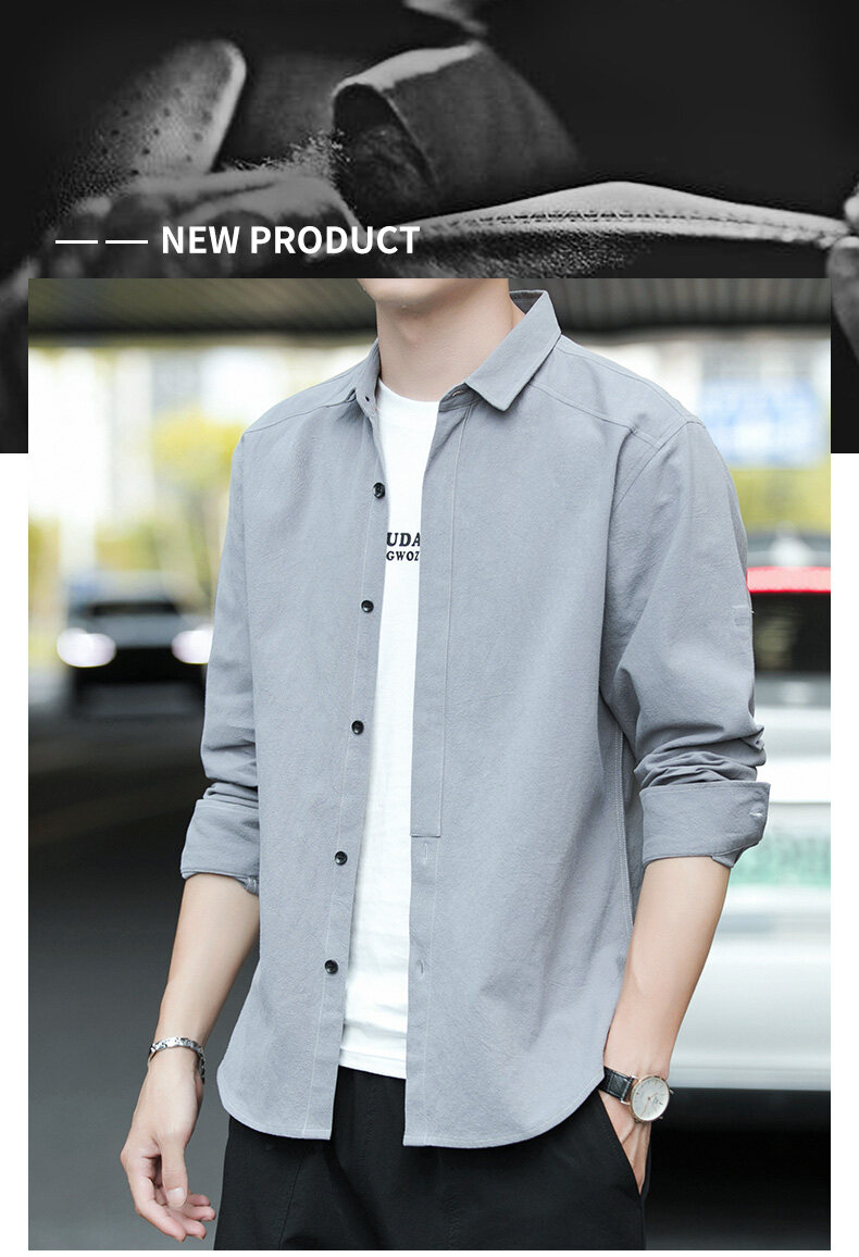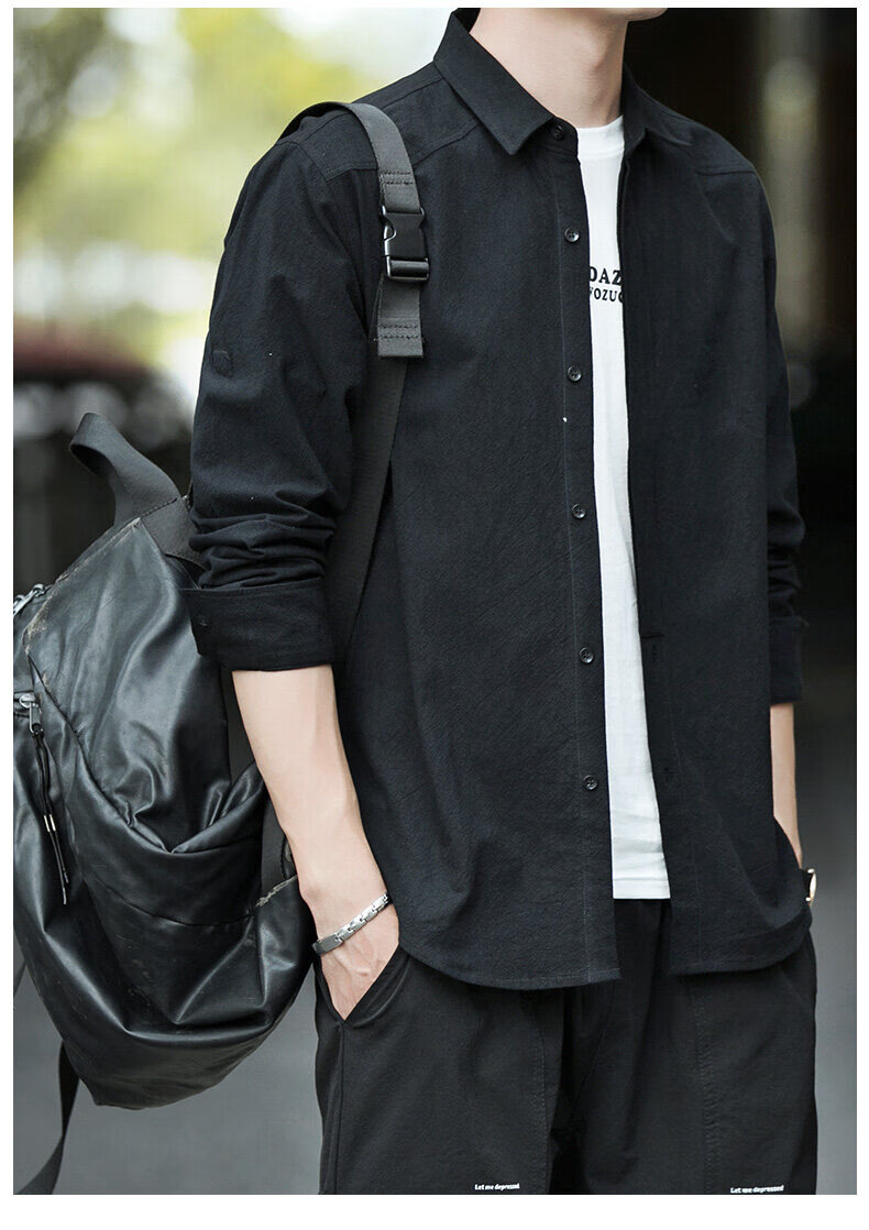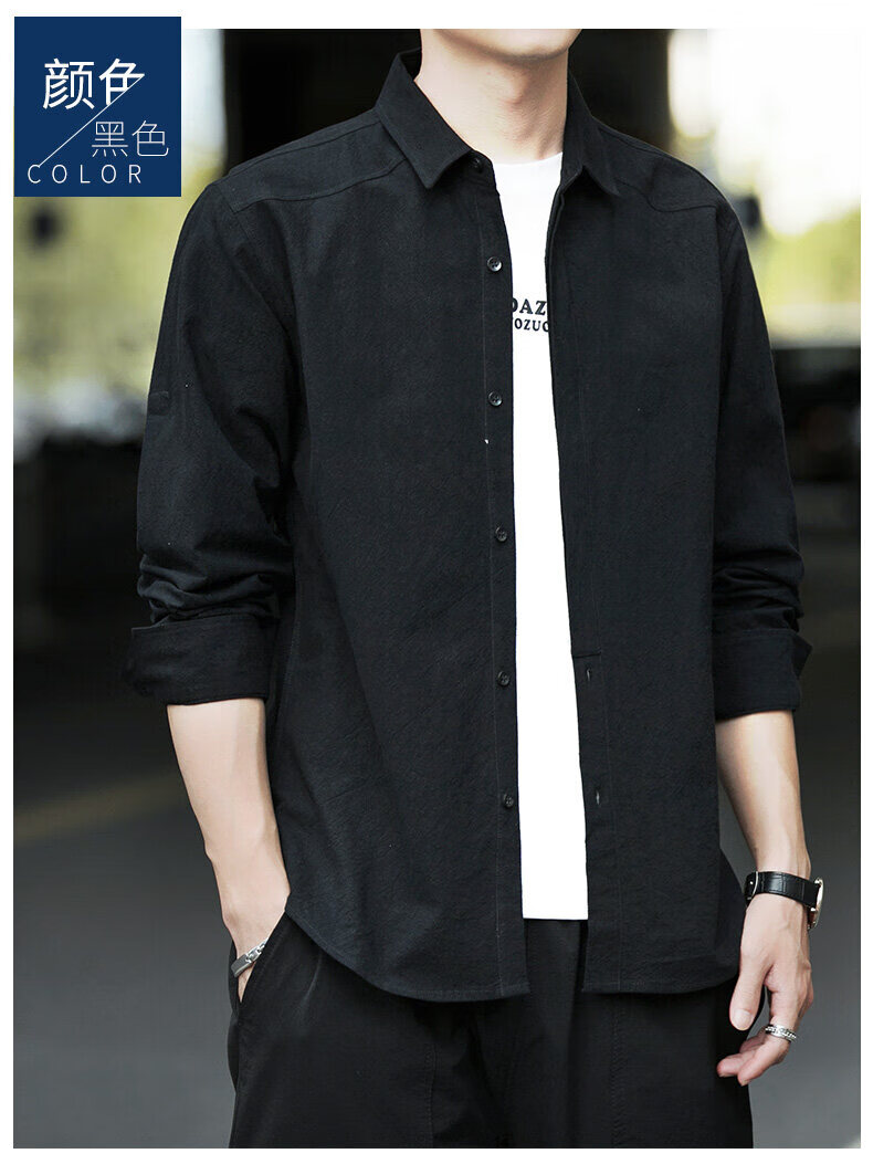 花花公子(PLAYBOY)长袖衬衫男士春夏季纯棉衬衣工装宽松商务休闲外套保龄球上衣服秋 浅蓝色【长袖款】 L