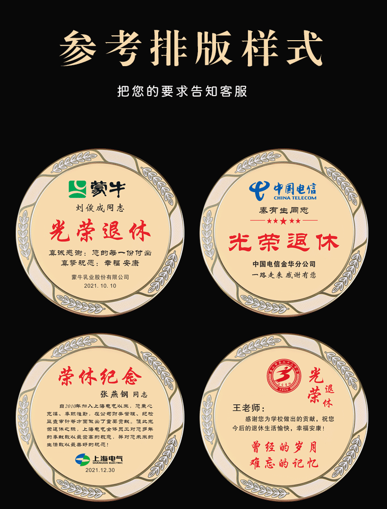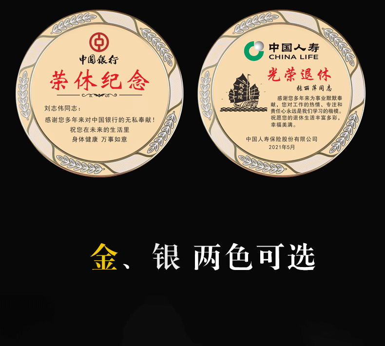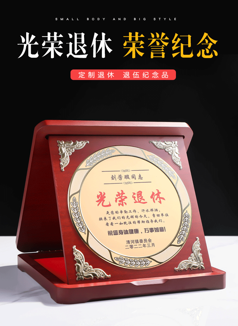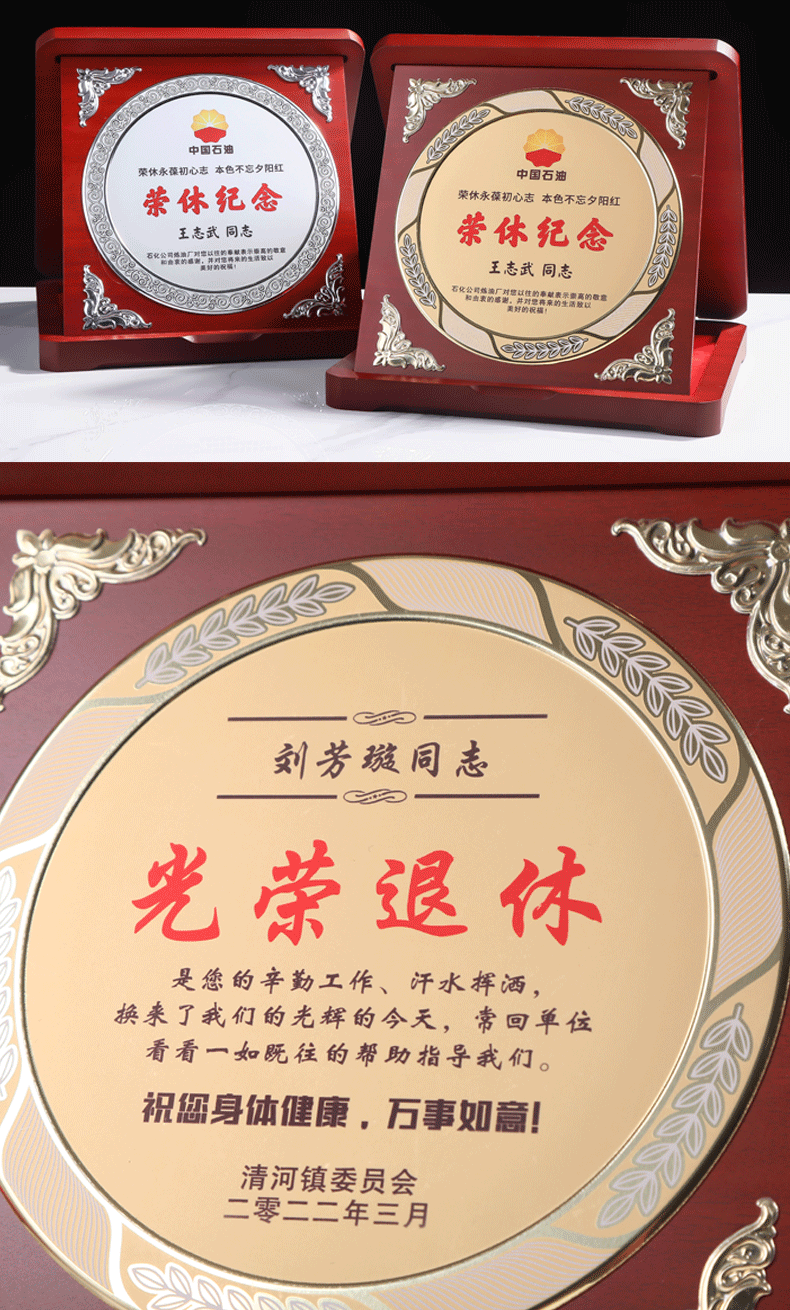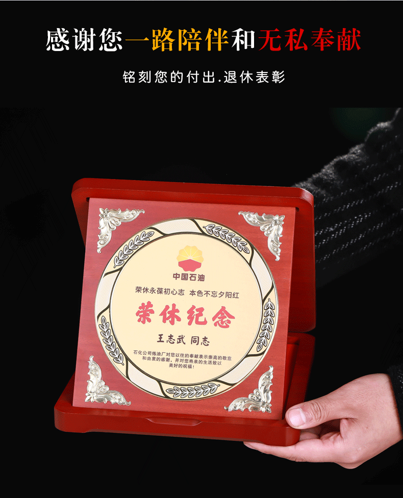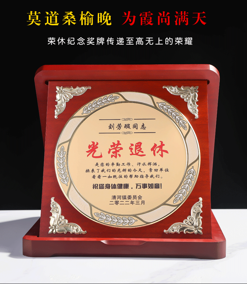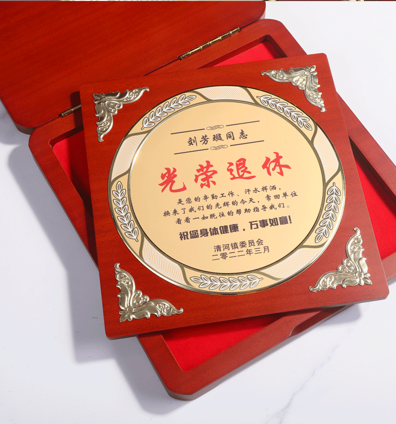 岚枫 单位员工离职退休纪念礼品定制创意木质奖牌荣誉证书爱心企业捐赠感谢牌制作荣休留念教师节礼物送老师