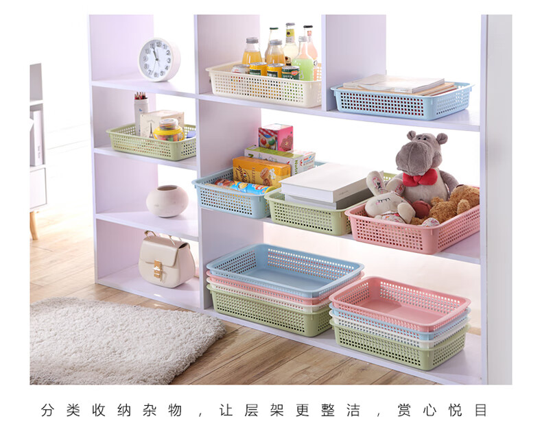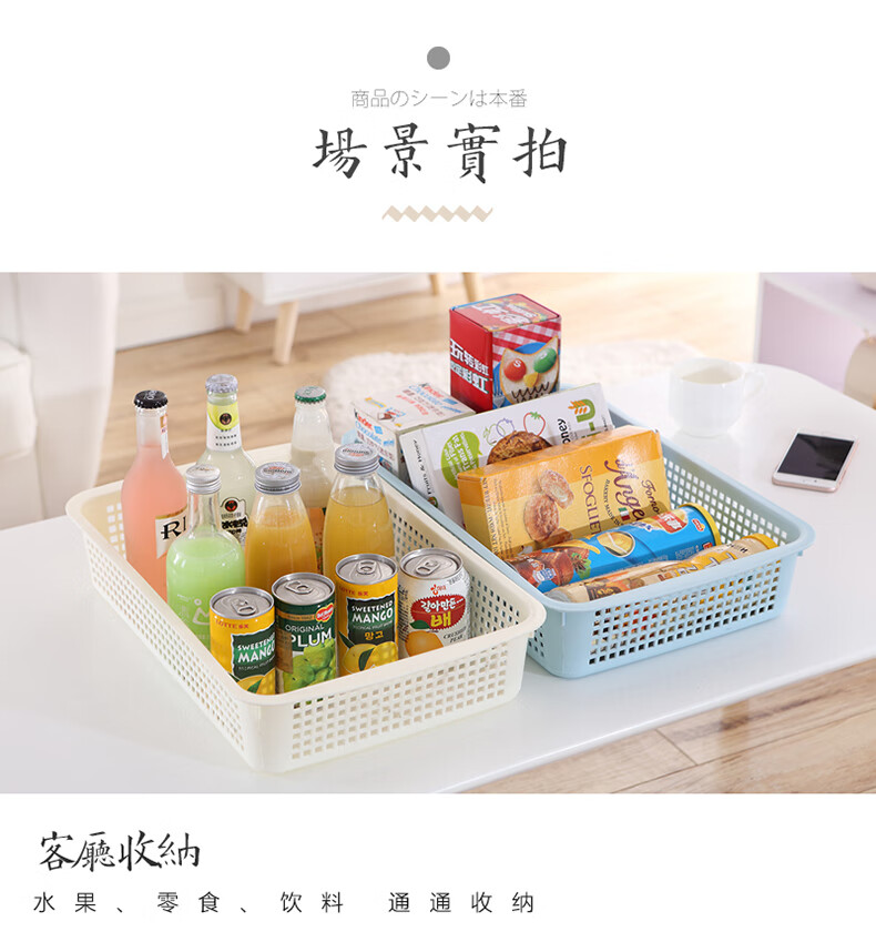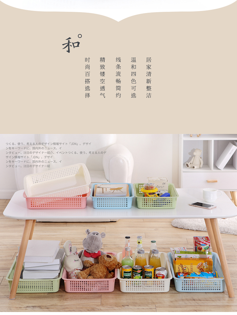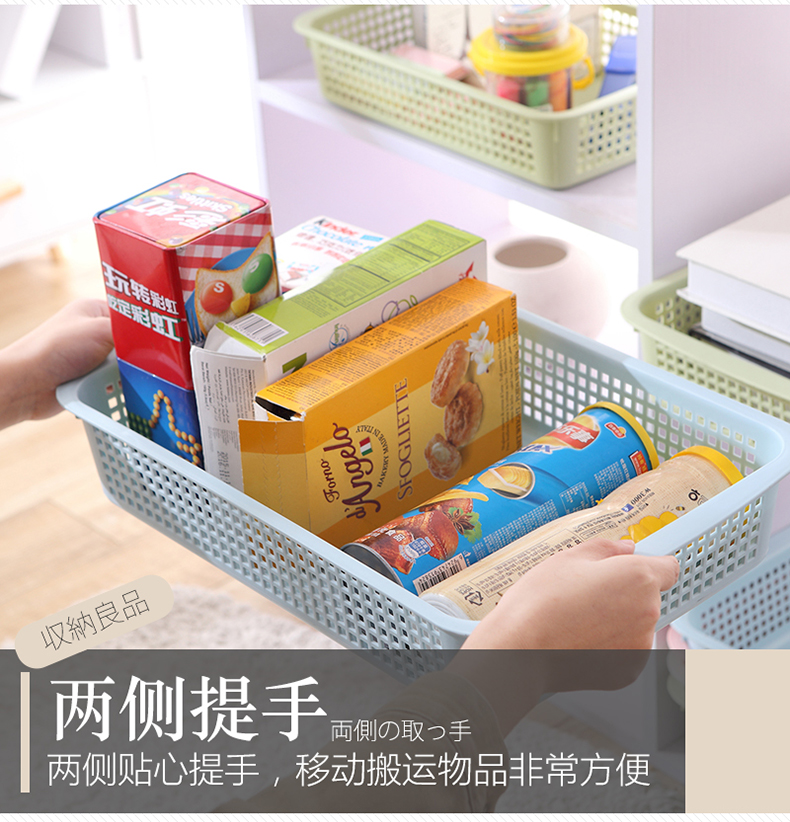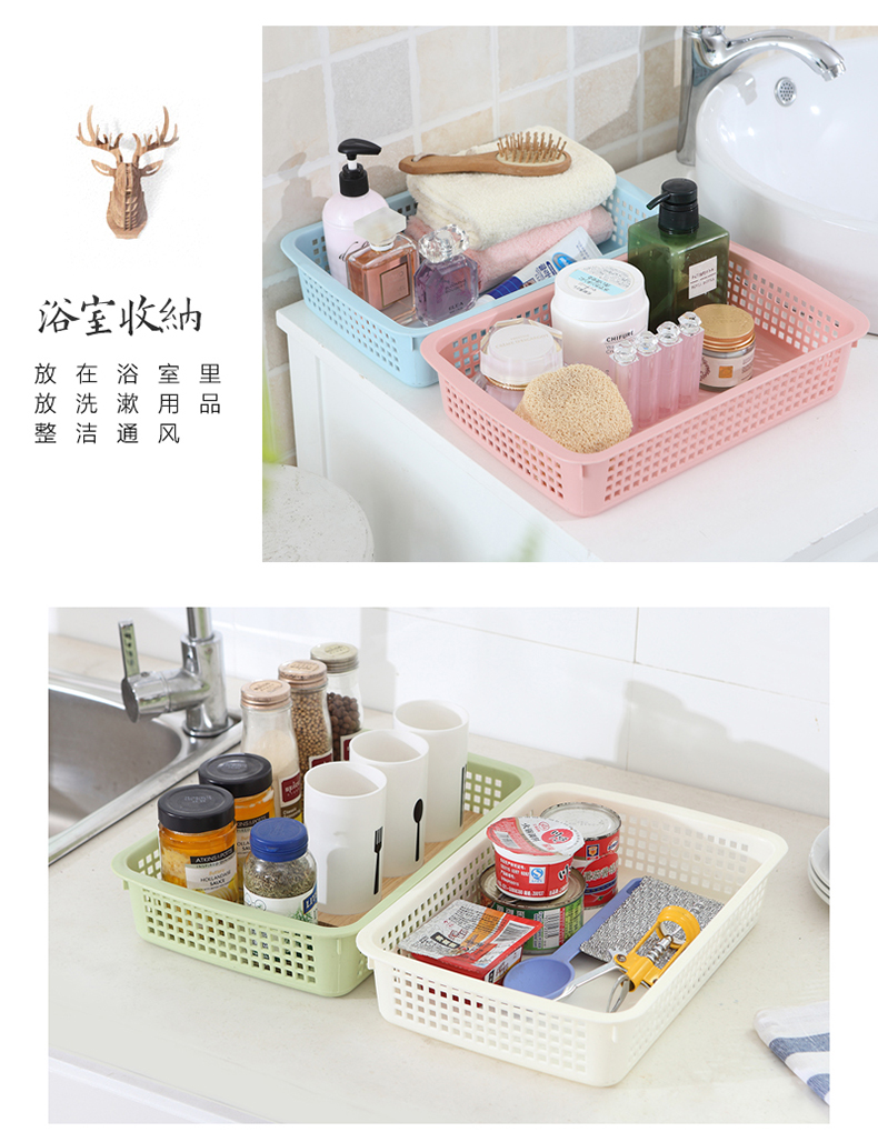 Qianxuan simple rectangular plastic basket kitchen storage basket desktop file storage basket bathroom cosmetic storage basket large white
