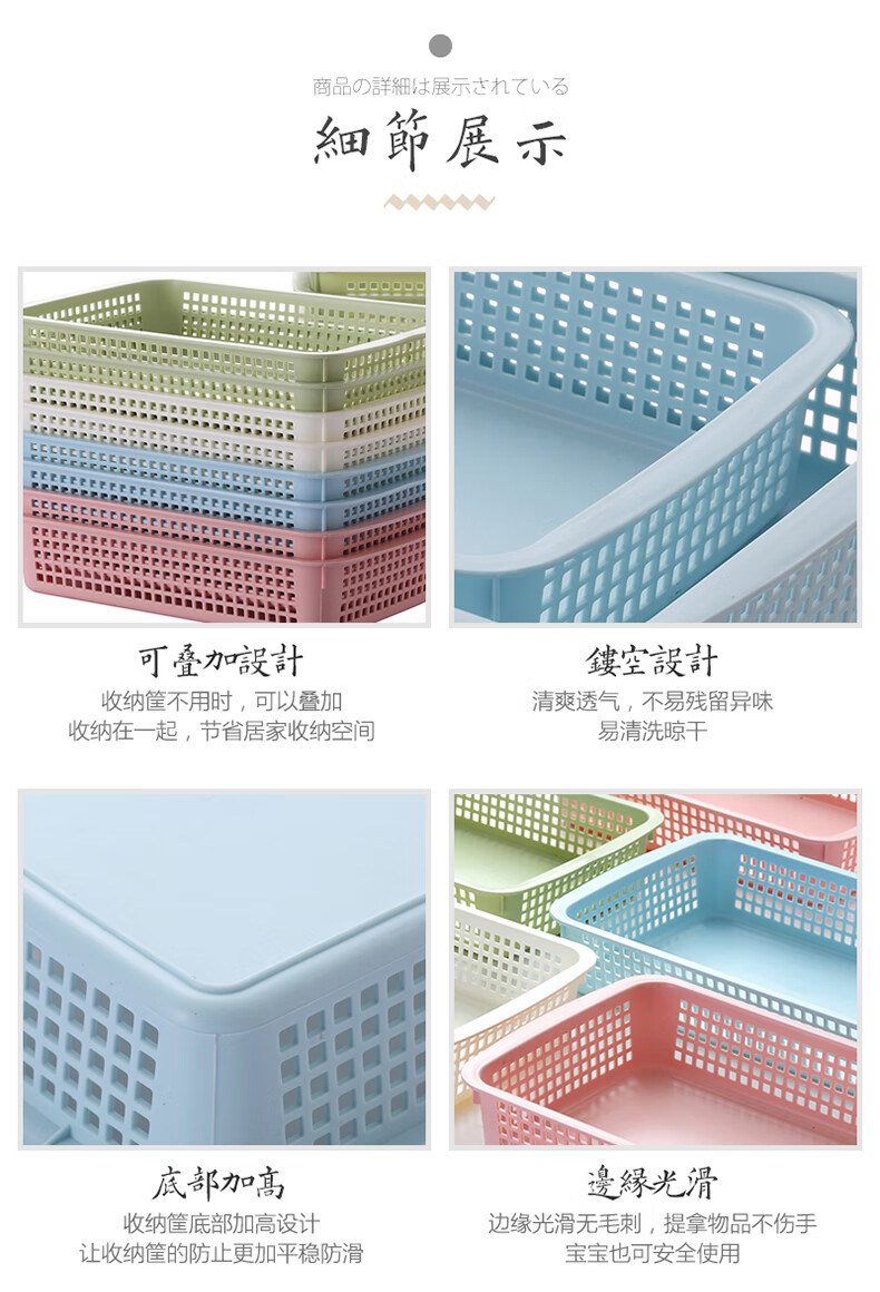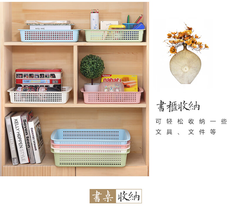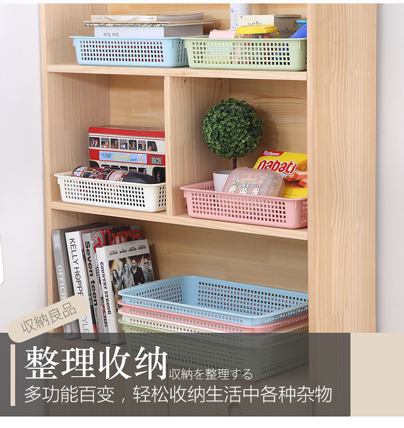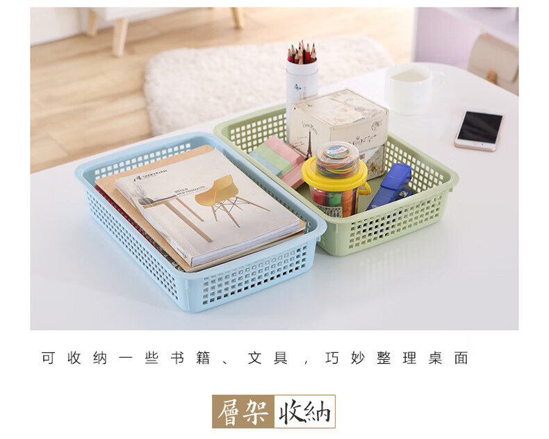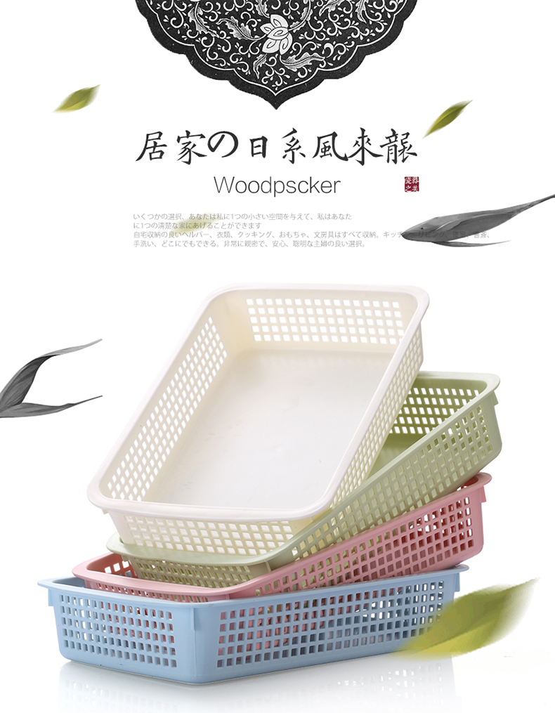 Qianxuan simple rectangular plastic basket kitchen storage basket desktop file storage basket bathroom cosmetic storage basket large white