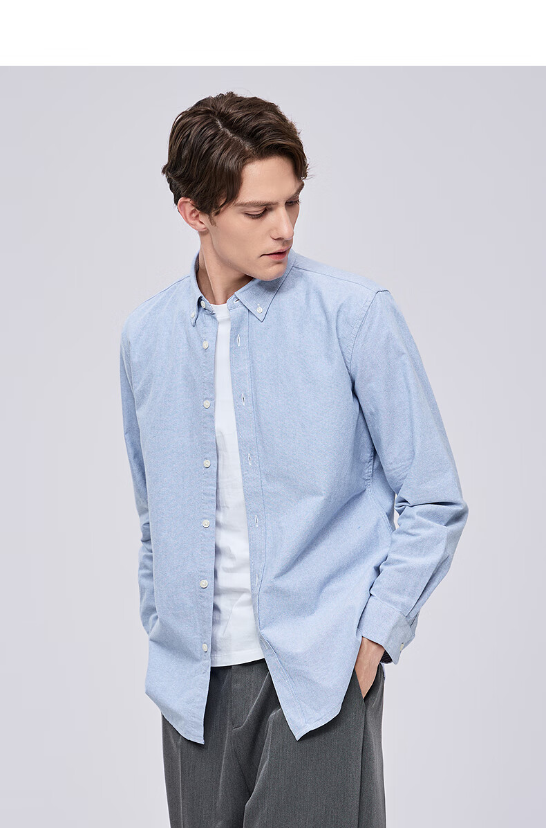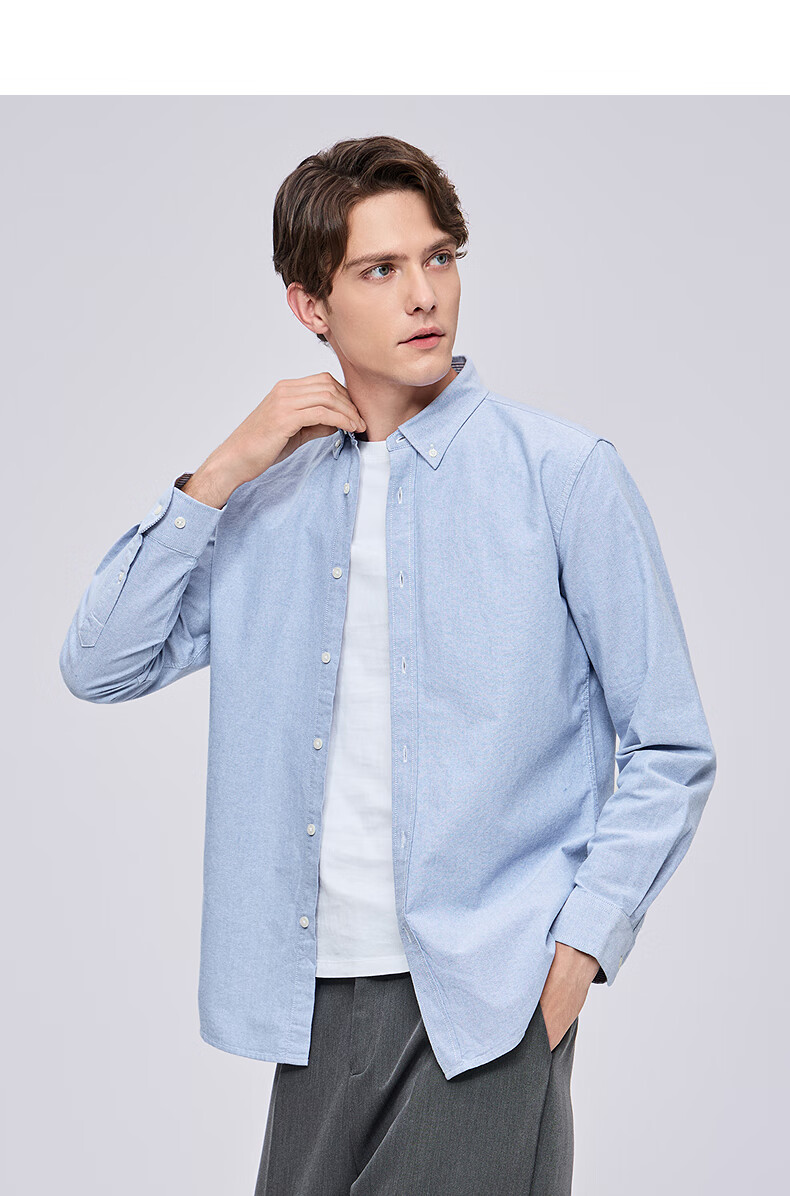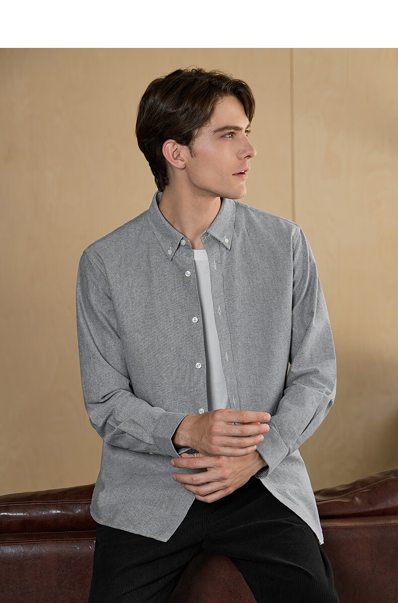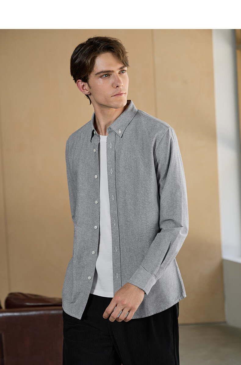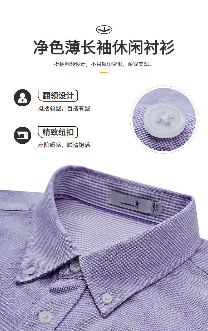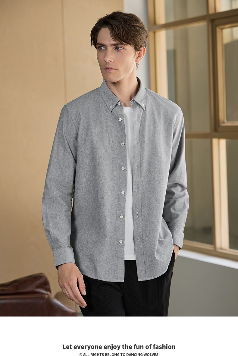 与狼共舞【纯棉透气】衬衫男新疆长绒棉春夏季商务通勤百搭男士长袖衬衣 015深灰 L 175/92A