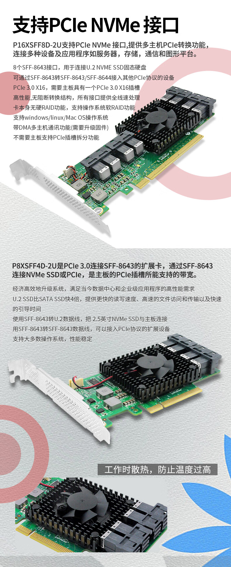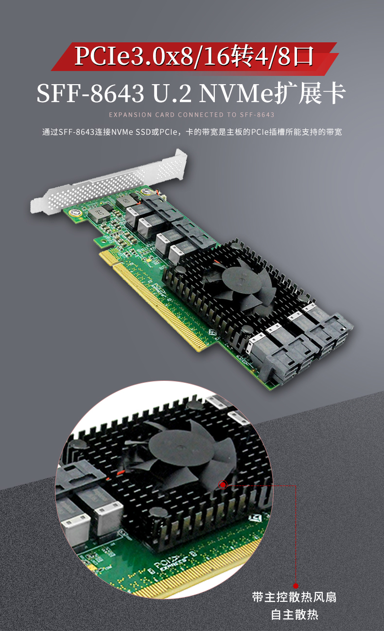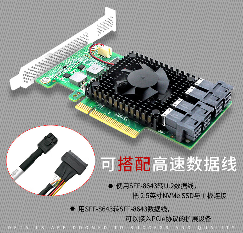 芯梦达(XINMONDA) PCIe扩展卡8口8643转8639 U.2固态硬盘转接卡RAID阵列卡 x8转4口SFF-8643 U.2 NVMe扩展卡 8643转8639 U.2扩展卡+高速数据线