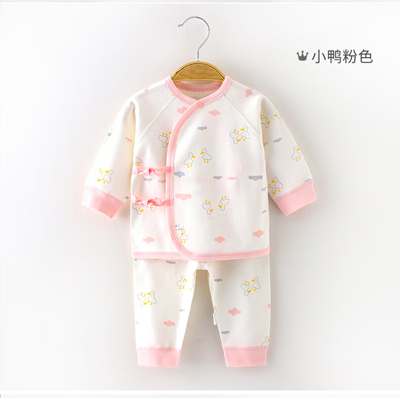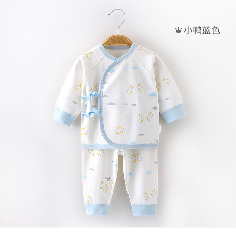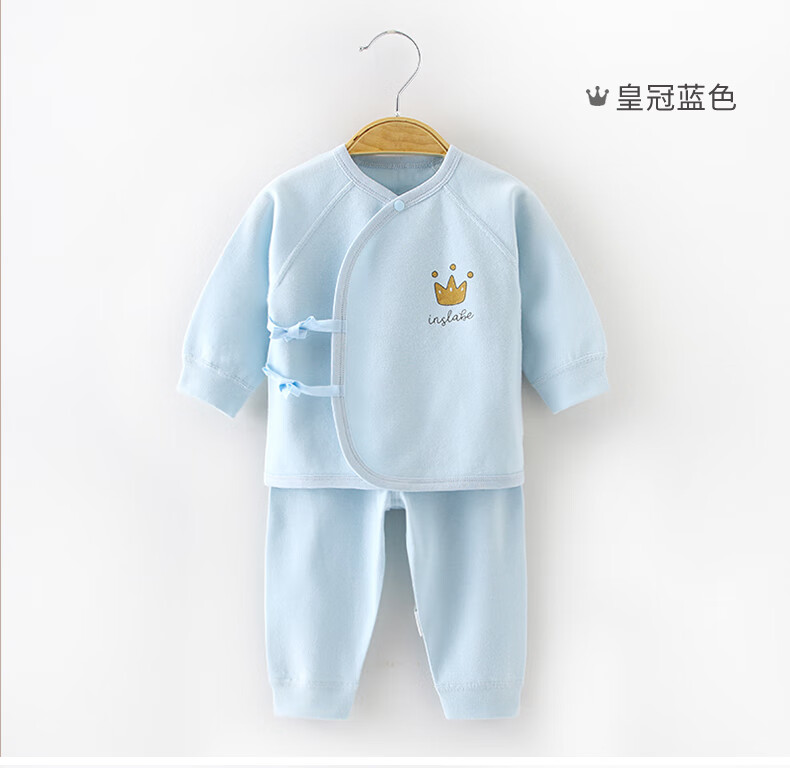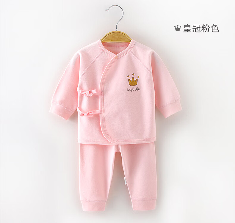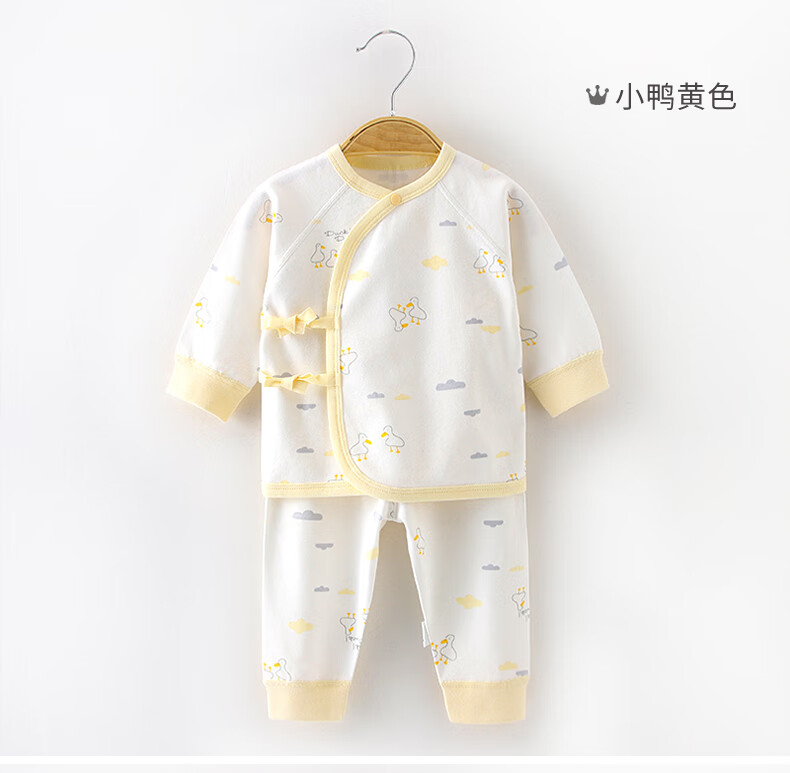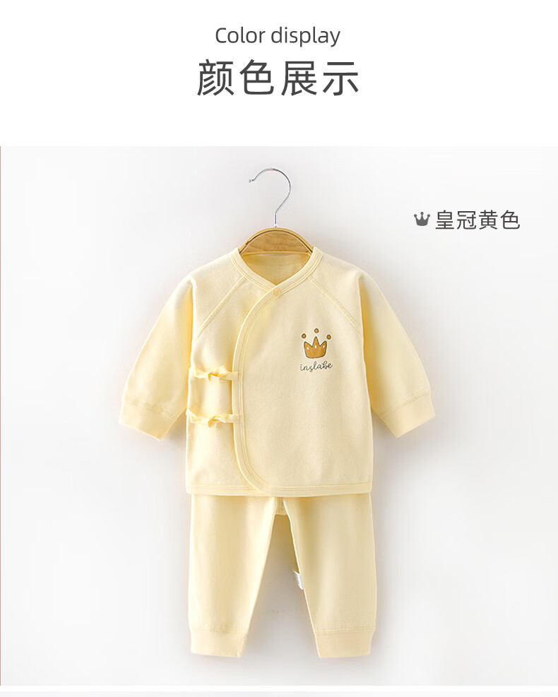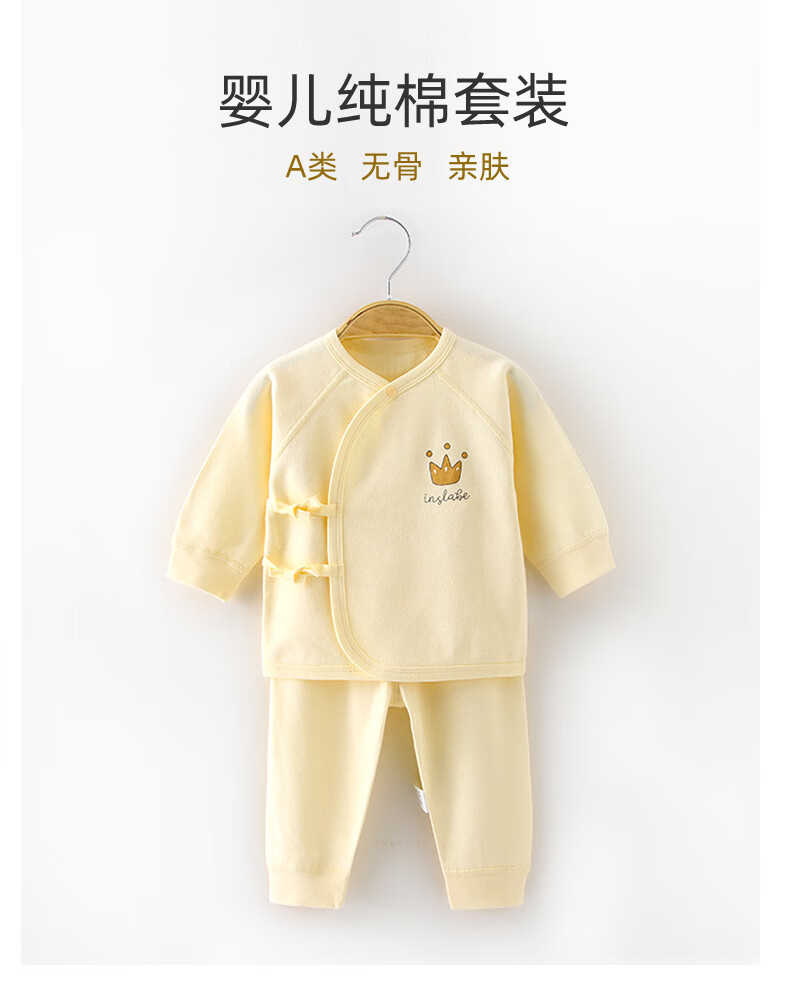 婴诗拉贝 新生儿内衣套装婴儿秋衣秋裤纯棉初生宝宝衣服春秋满月打底衣服 【2套装四季款】皇冠黄组合 52 (建议0-1个月5-8斤)