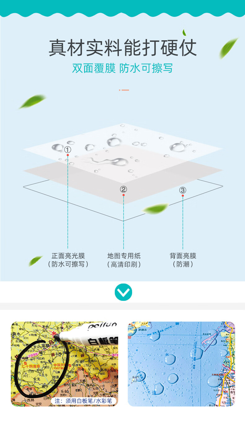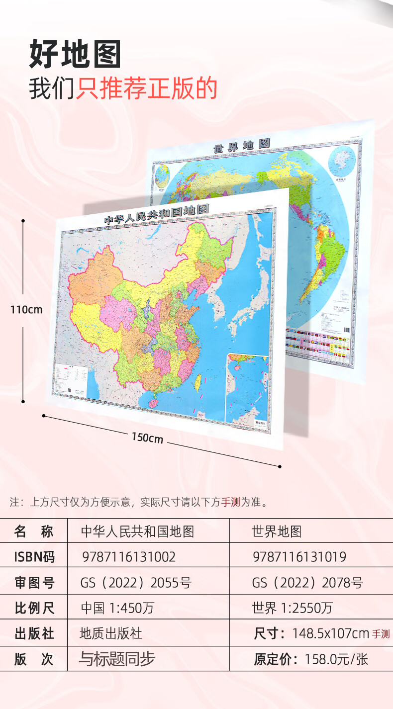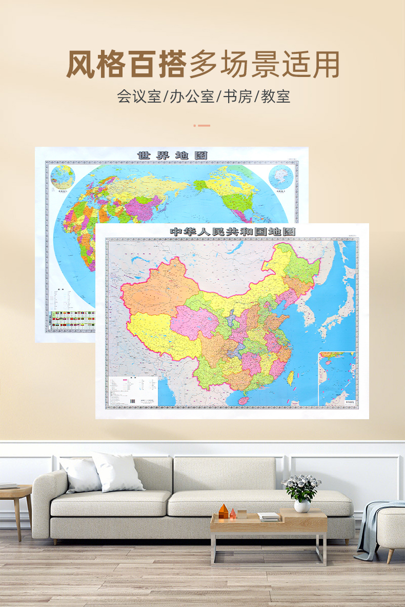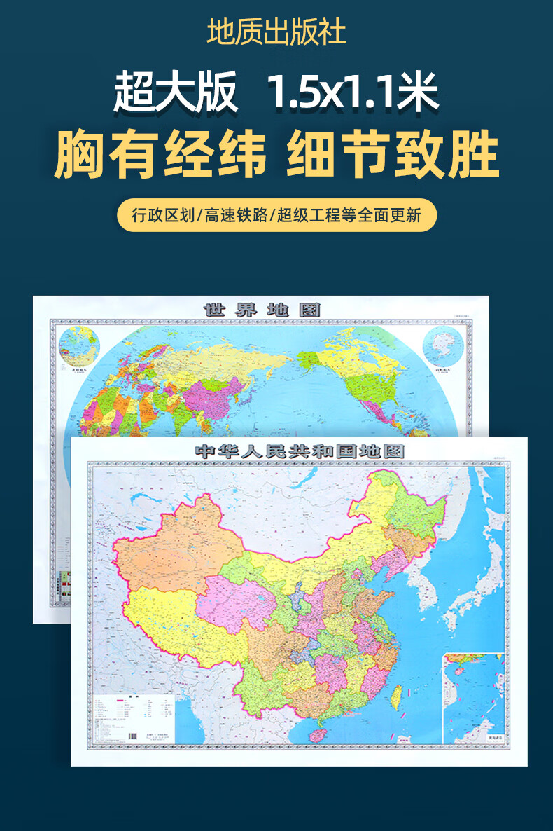 China map world map 1.5x1.1m extra large version double-sided laminated waterproof thickening without creases business office study room conference room map 1.5m China map