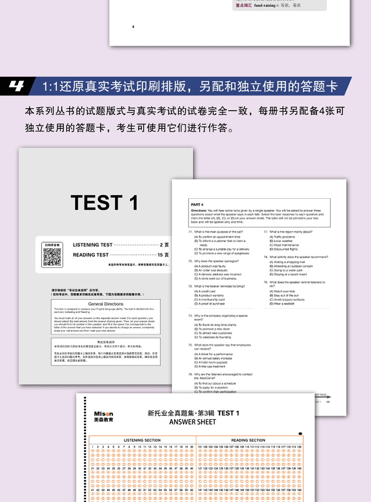 In stock, Mason Education TOEIC new TOEIC all-real test questions set 3rd series question set + analysis volume 4 sets of TOEIC full-real simulation test questions TOEIC question bank past real test questions analysis TOEIC test teaching materials ETS question characteristics and proposition rules