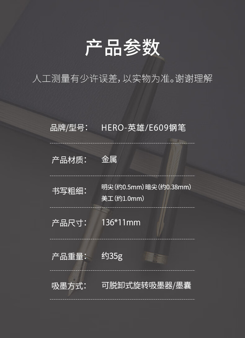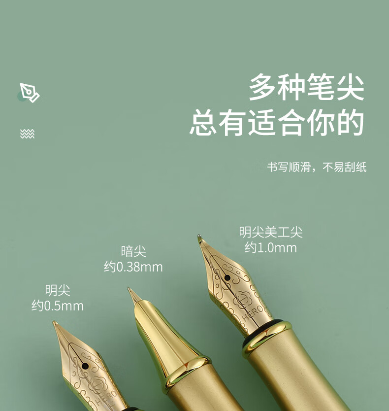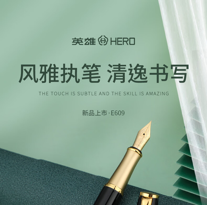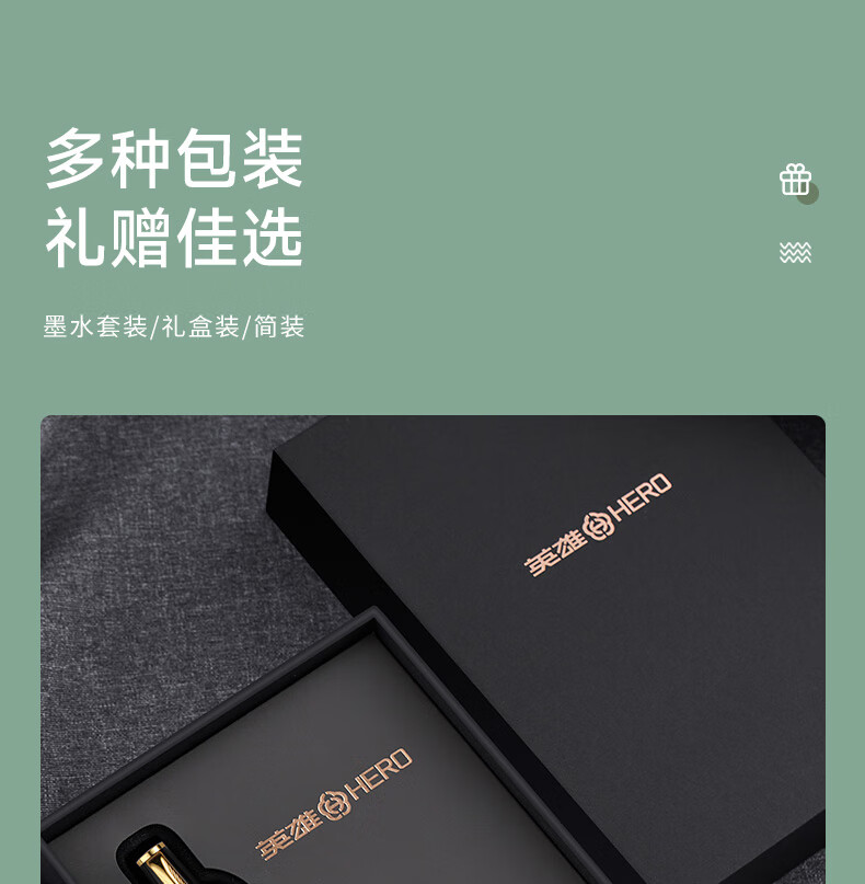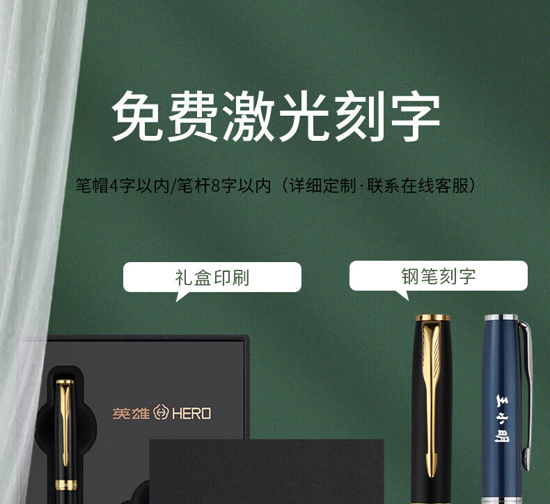 英雄(HERO)钢笔礼盒男女士签字笔礼品商务书法练字三年级中小学生定制刻字笔生日礼物E609 暮光绿【简装】(送 墨水) F明尖0.5mm