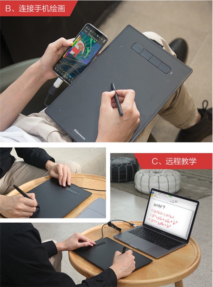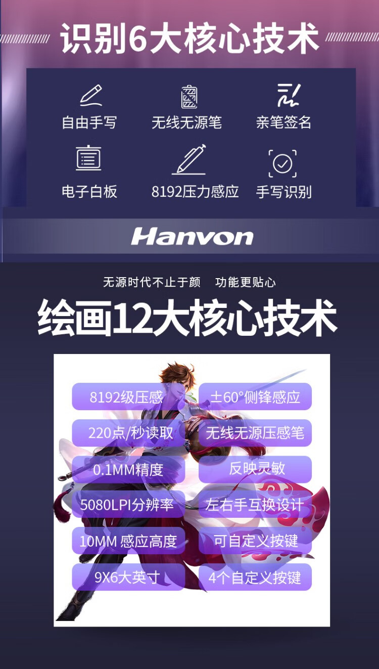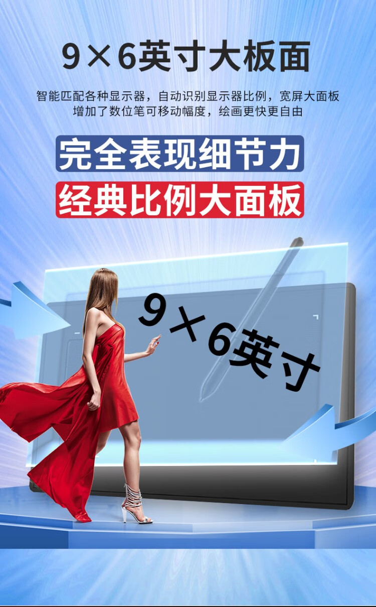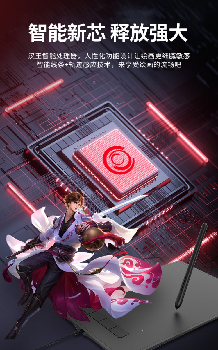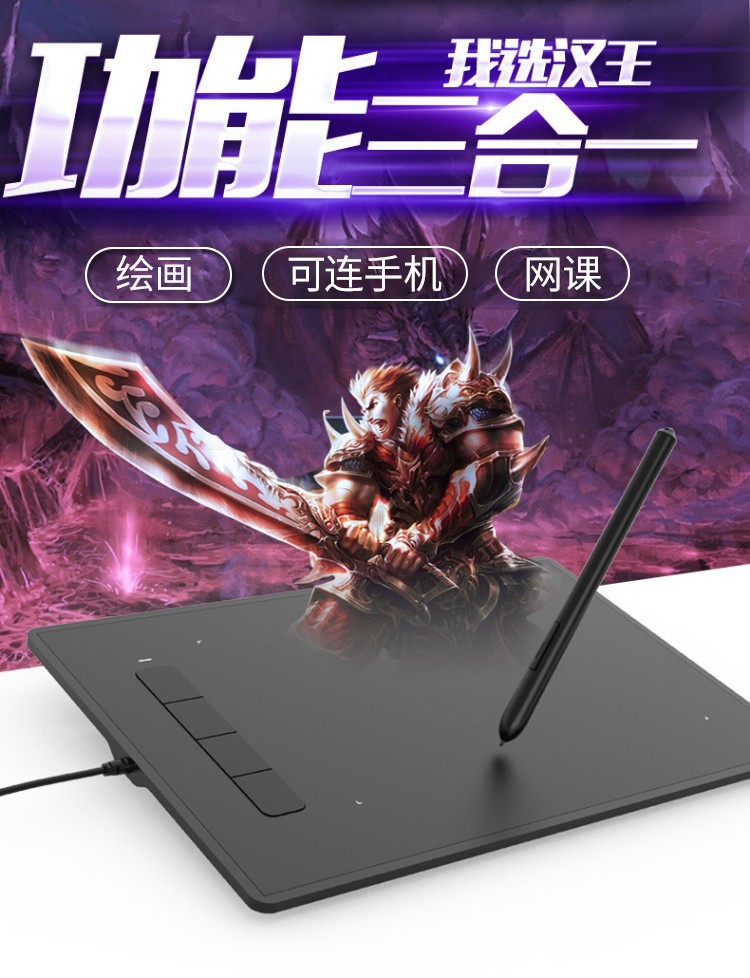 汉王(Hanvon) 小黑专业数位板绘画板专业绘画手绘板网课手写板连电脑连手机输入板无线大屏 酷学D(11%客户选择)