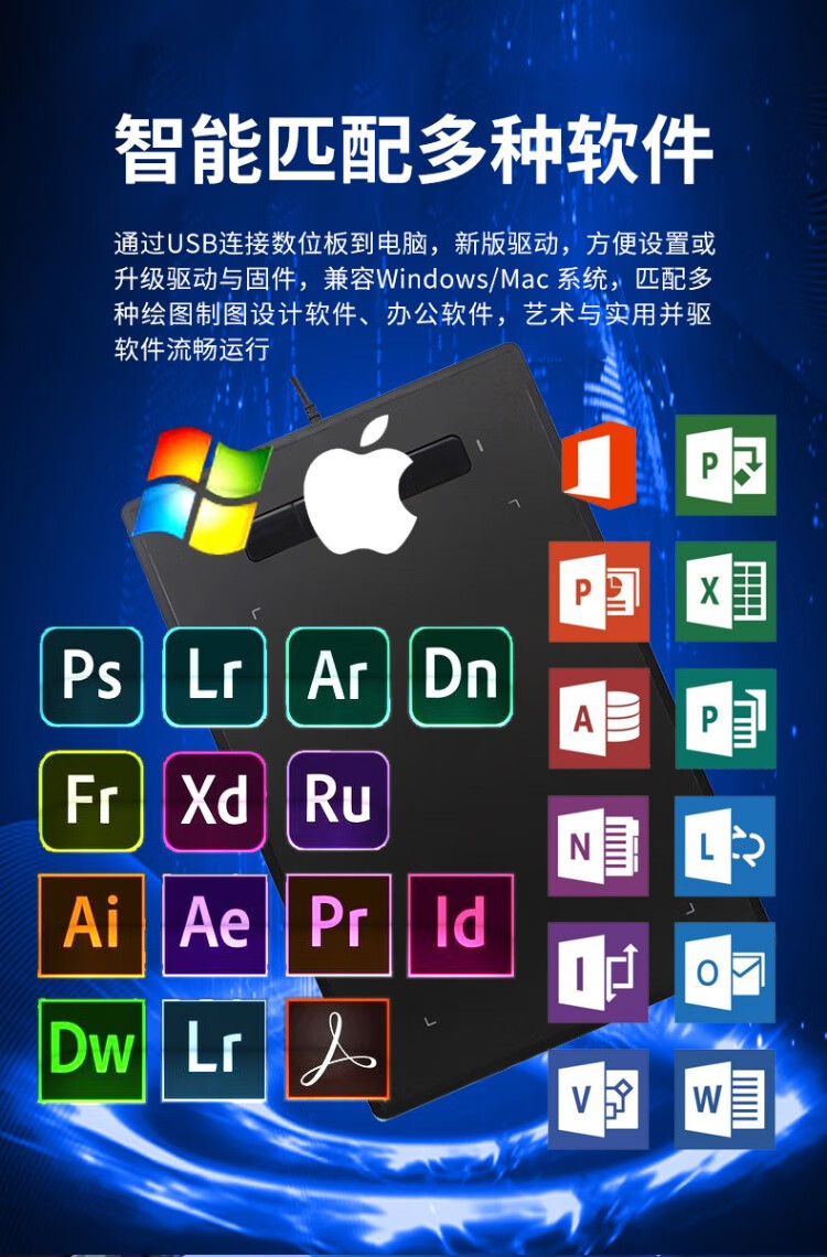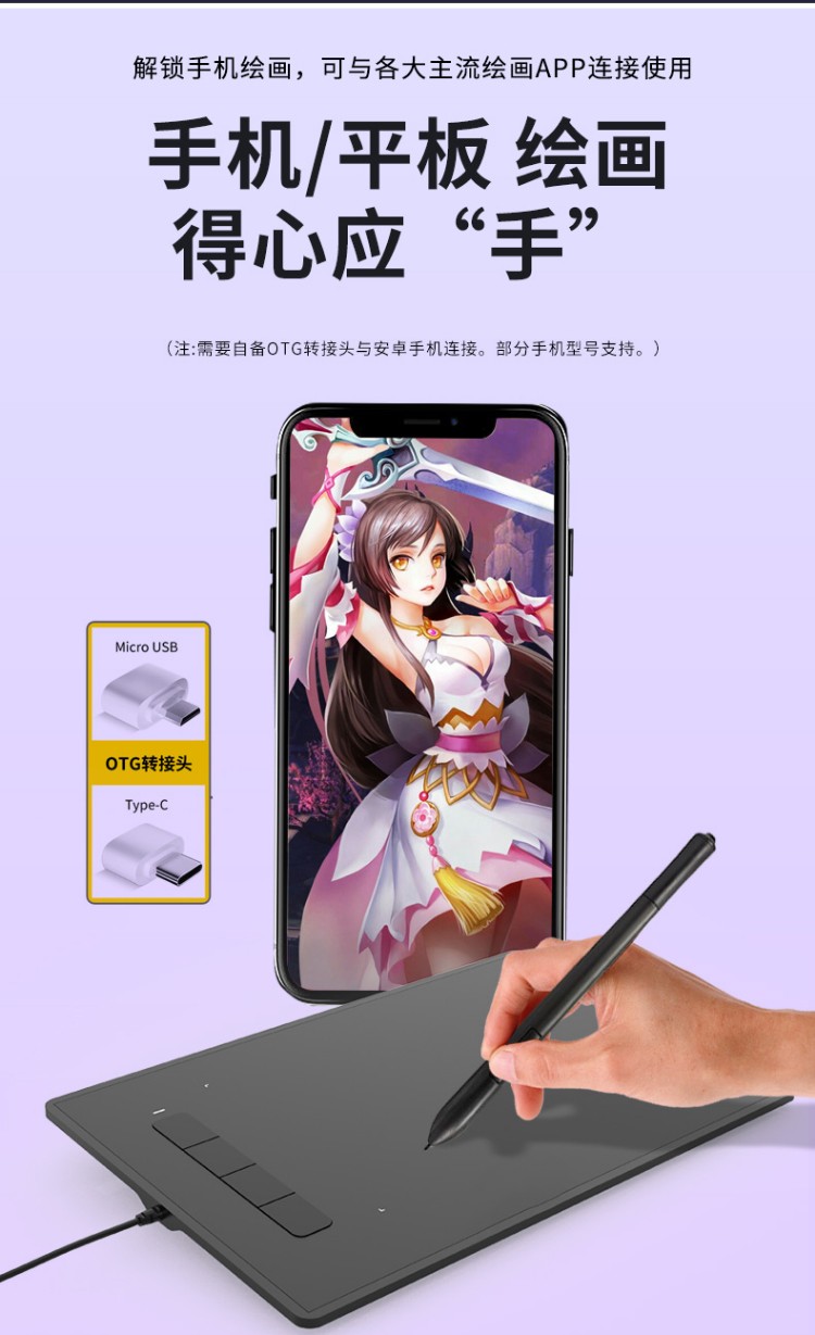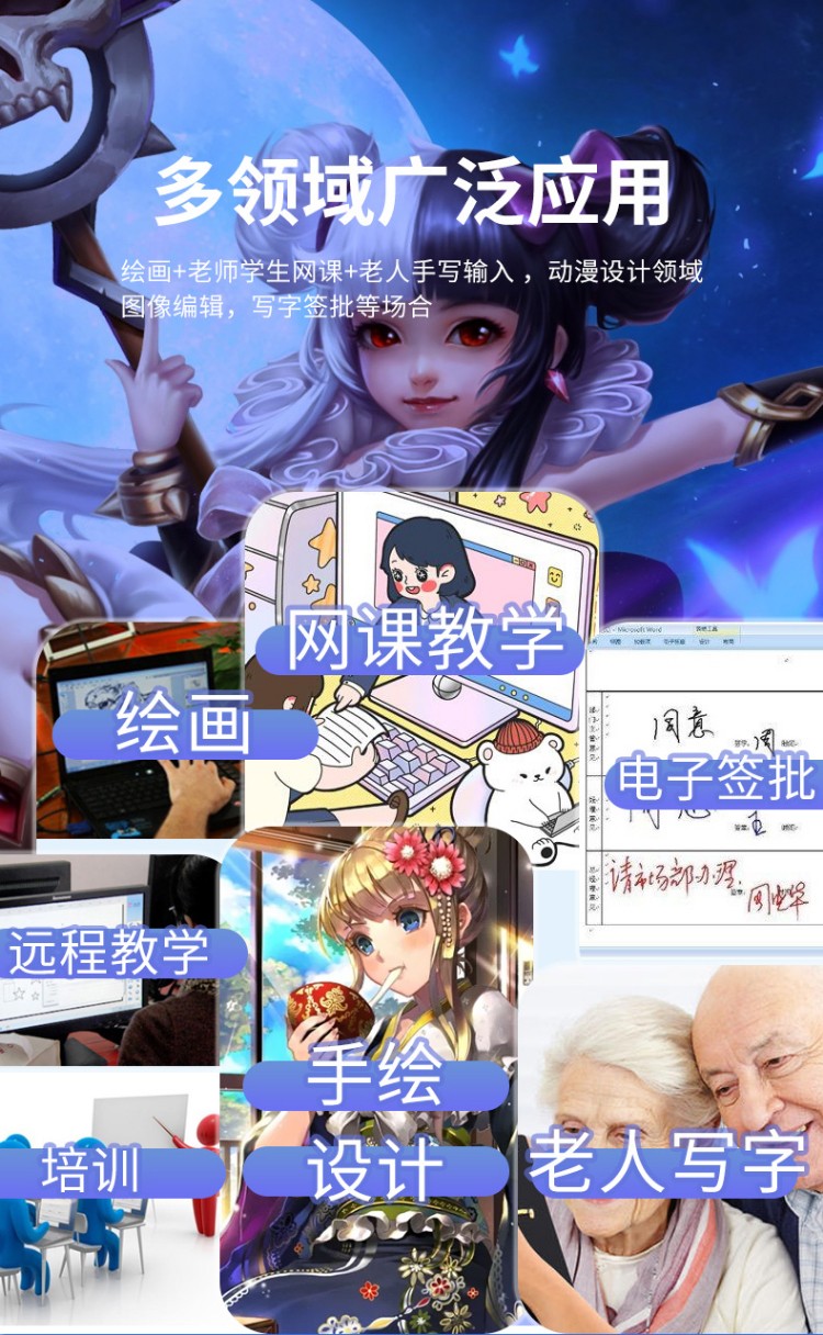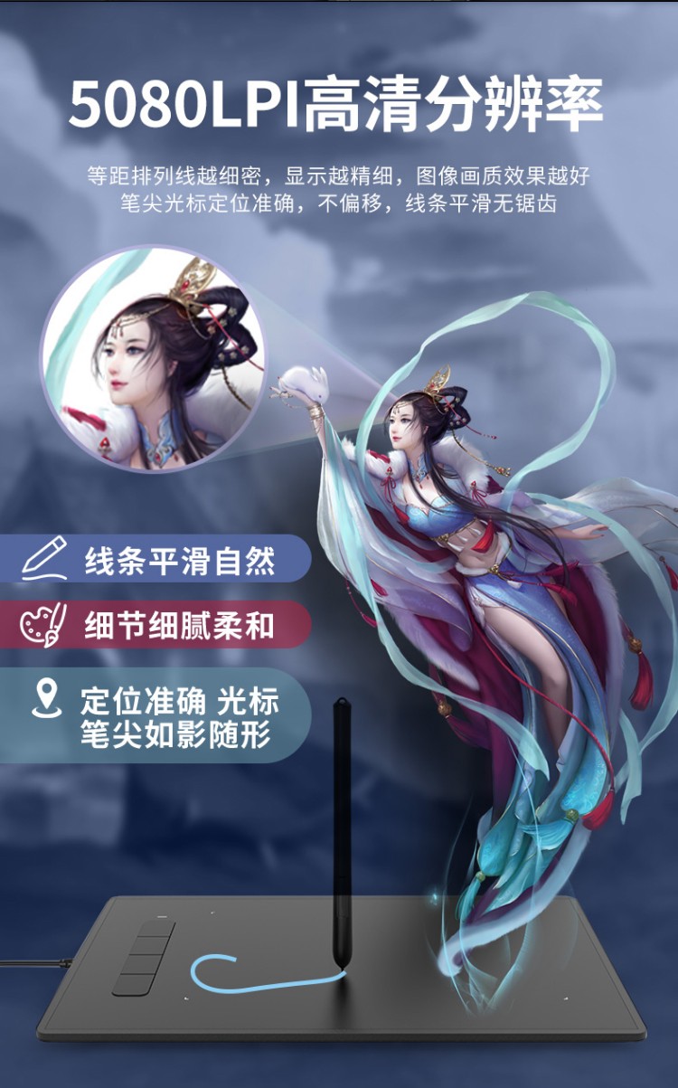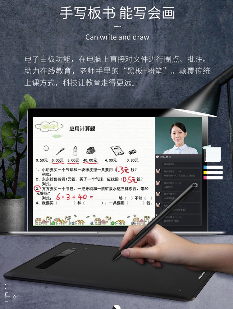 汉王(Hanvon) 小黑专业数位板绘画板专业绘画手绘板网课手写板连电脑连手机输入板无线大屏 酷学D(11%客户选择)