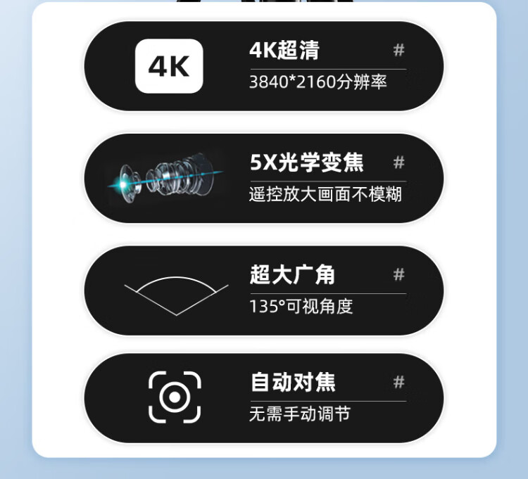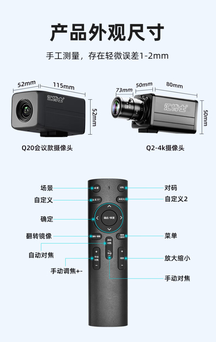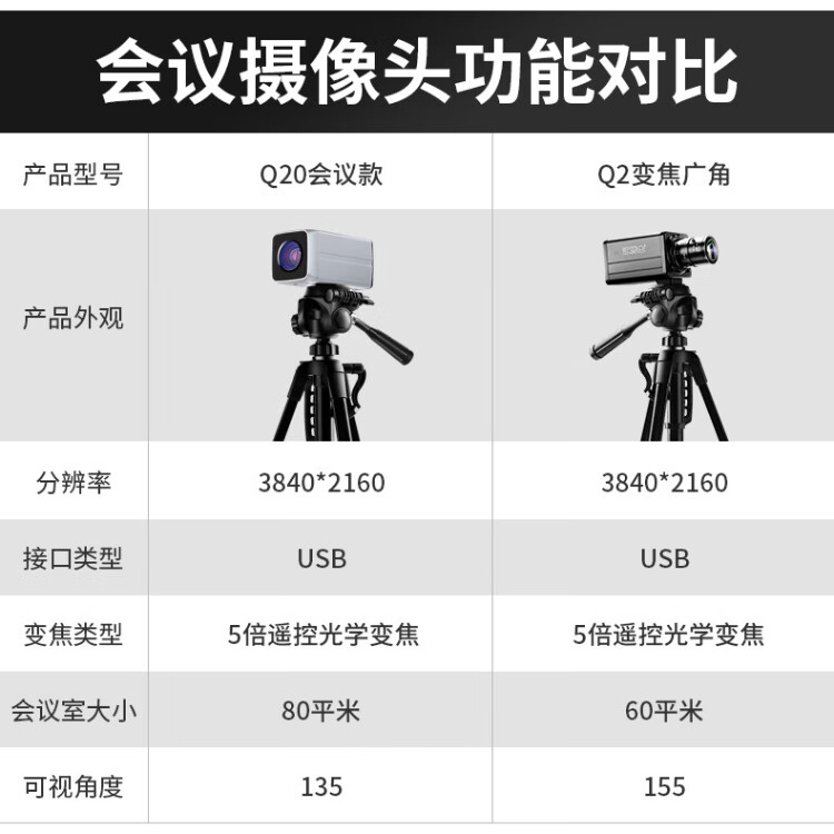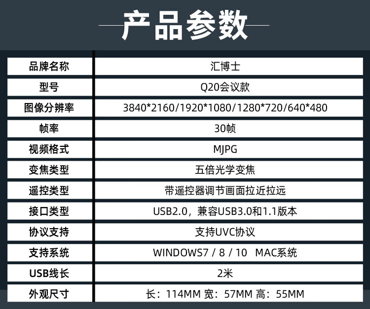 汇博士远程视频会议标准集成解决方案10-40平米4K会议摄像头变焦摄像机风超大广角视频摄像头 【4K】Q2变焦广角+1.5米支架