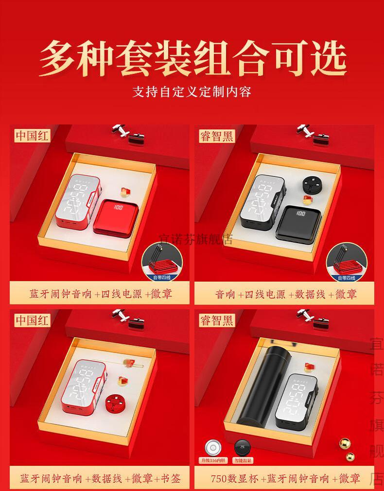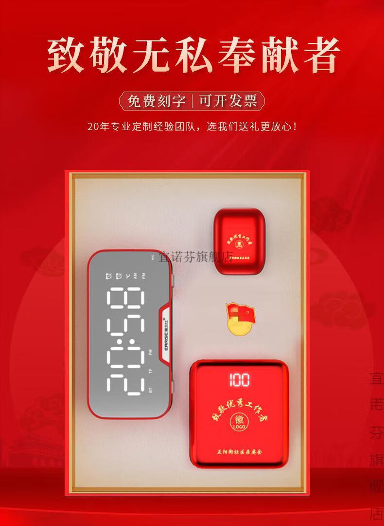 宜诺芬党员政治生日礼物纪念品实用党党员会议礼品定制知识竞赛奖品活动纪念品办公用品 蓝牙闹钟音响(黑)