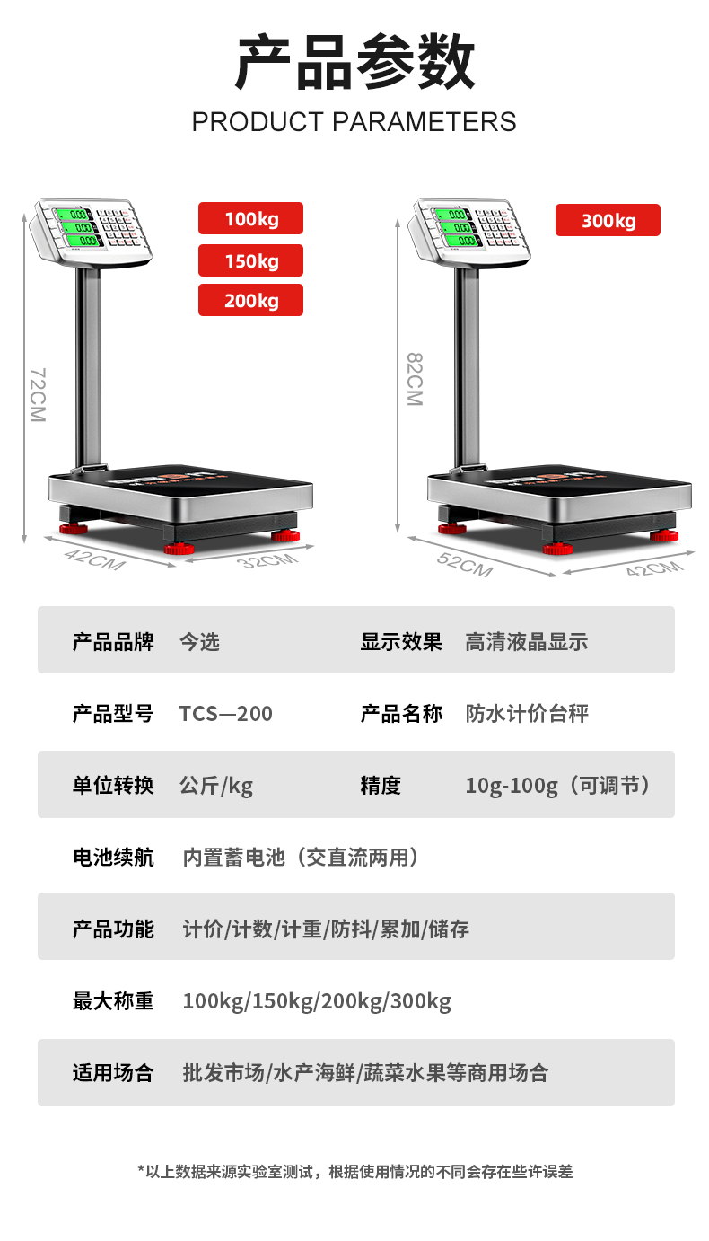 Today's selection (jinxuan) waterproof floor-standing electronic scale, commercial platform scale, high-precision 150kg electronic scale, cargo scale, 300kg stall aquatic products, seafood and fruit express scale, front and rear dual-screen display, 300kg stainless steel waterproof model - accurate and durable