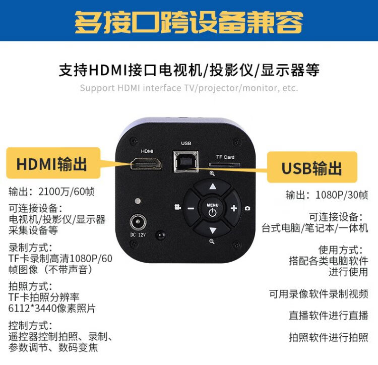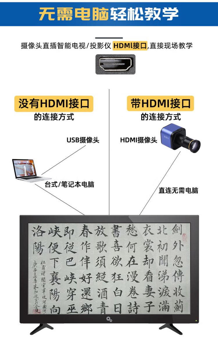 汇博士 HDMI高清摄像头 电视机投影直播摄像头书法绘画教学现场展示 4K【直连电视】HD-05变焦款(大三角支架)