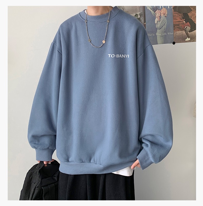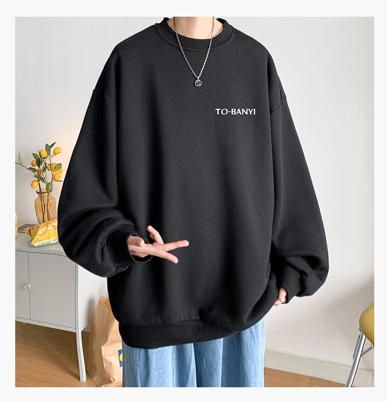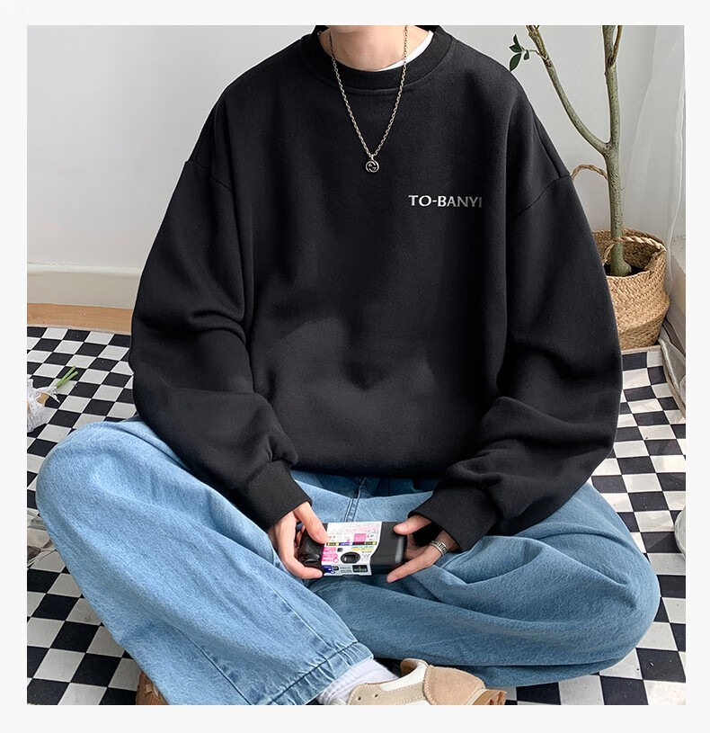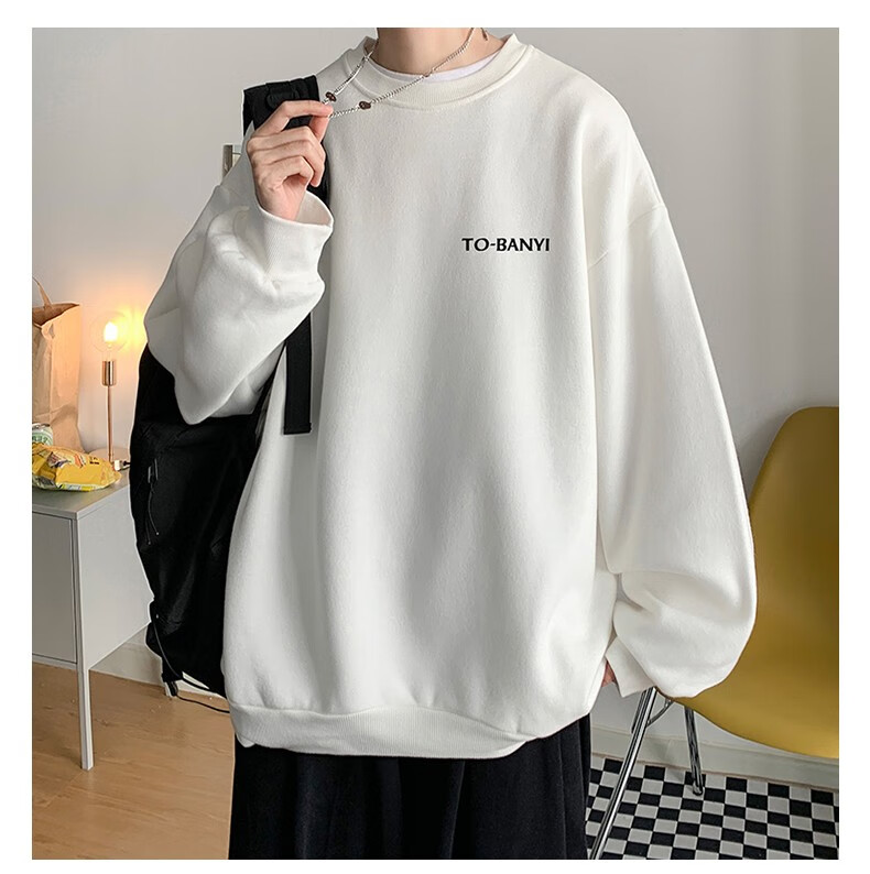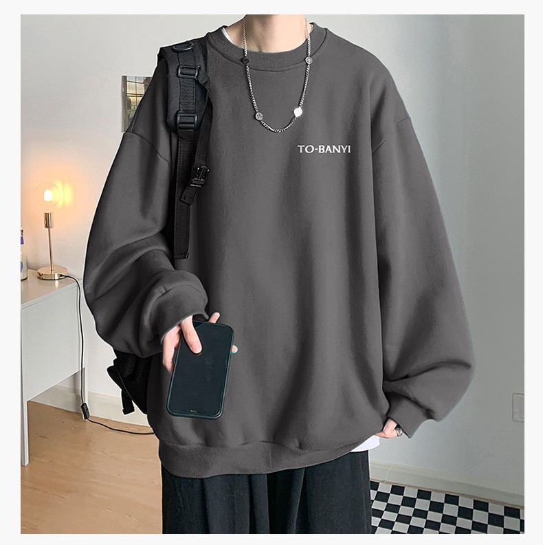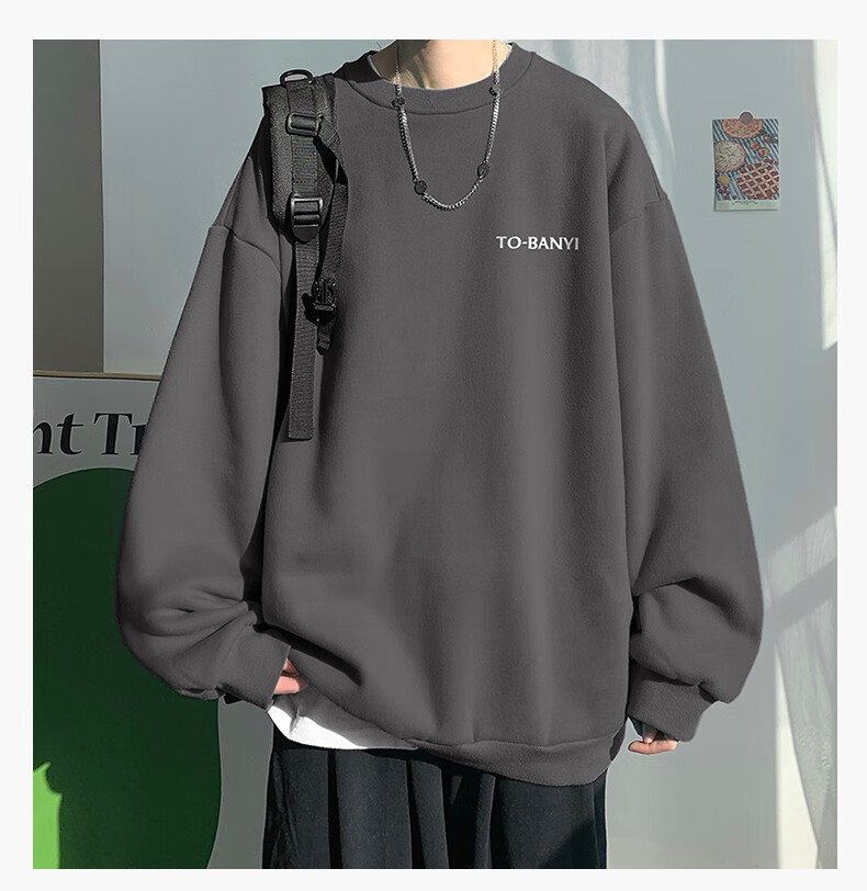Style Yuge trendy brand hoodless round neck sweatshirt boys' bottoming shirt autumn and winter thickened velvet warm long-sleeved T-shirt with men's top dark gray (regular style) XL recommendation (125-145Jin Jin equals 0.5 kg)