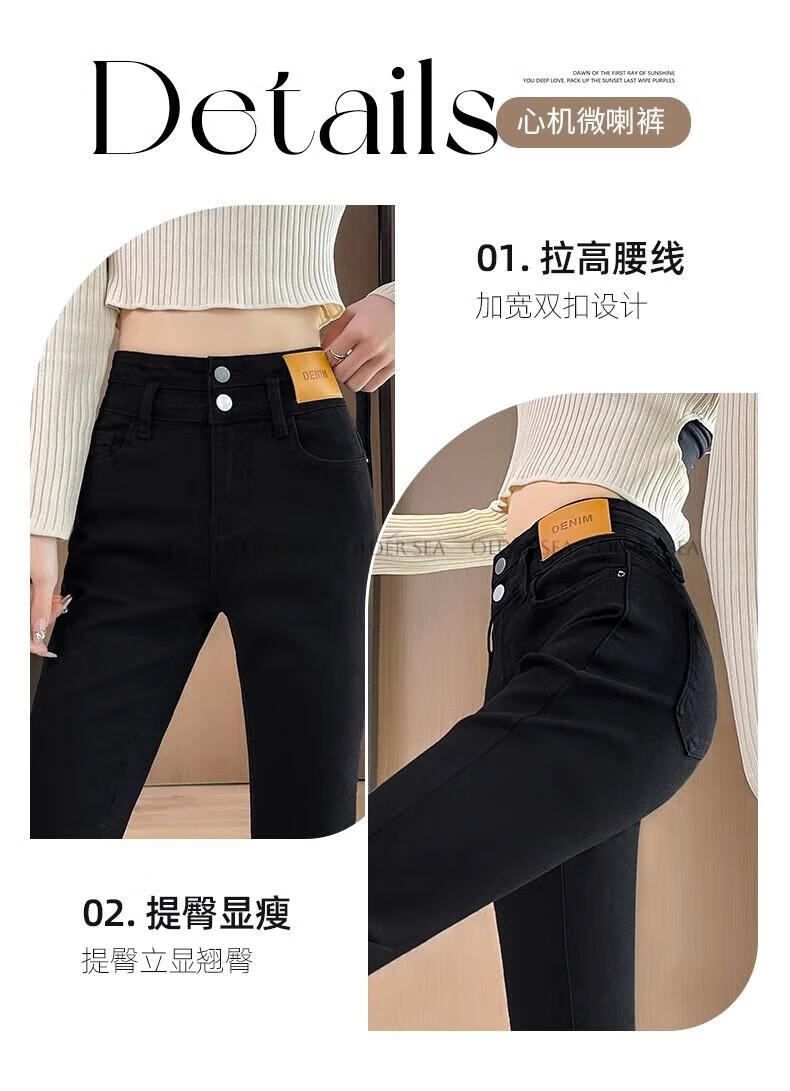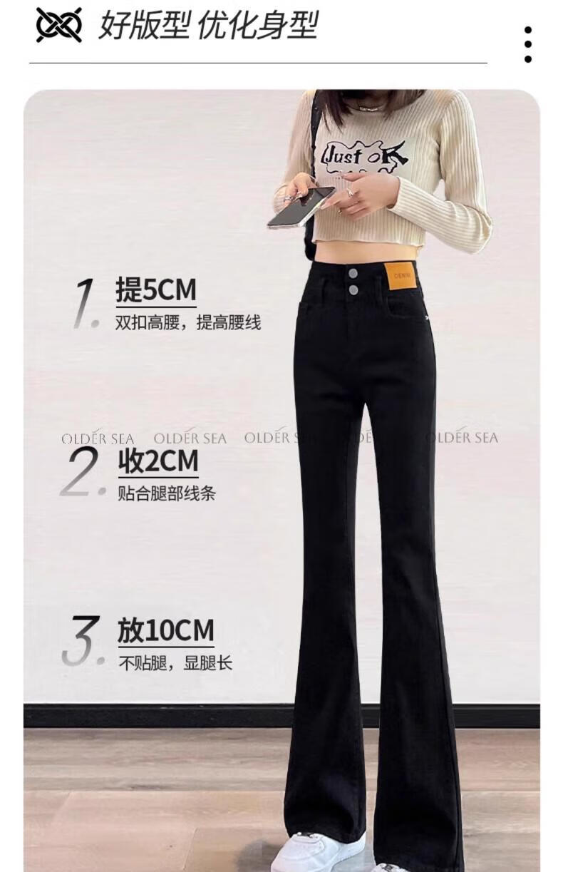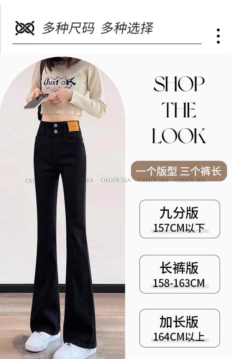 OLDER SEA black high-waisted slim flared jeans for women in autumn 2025 new versatile small bootcut jeans for women black regular 27/M recommended 95-108Jin Jin is equal to 0.5 kg