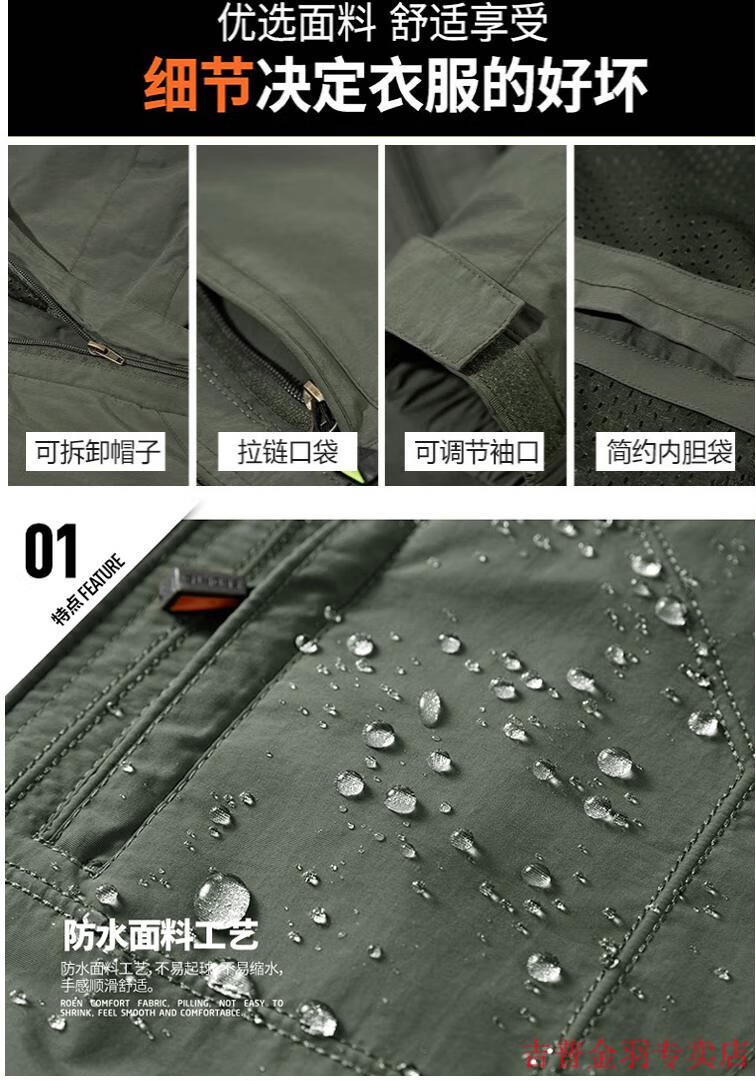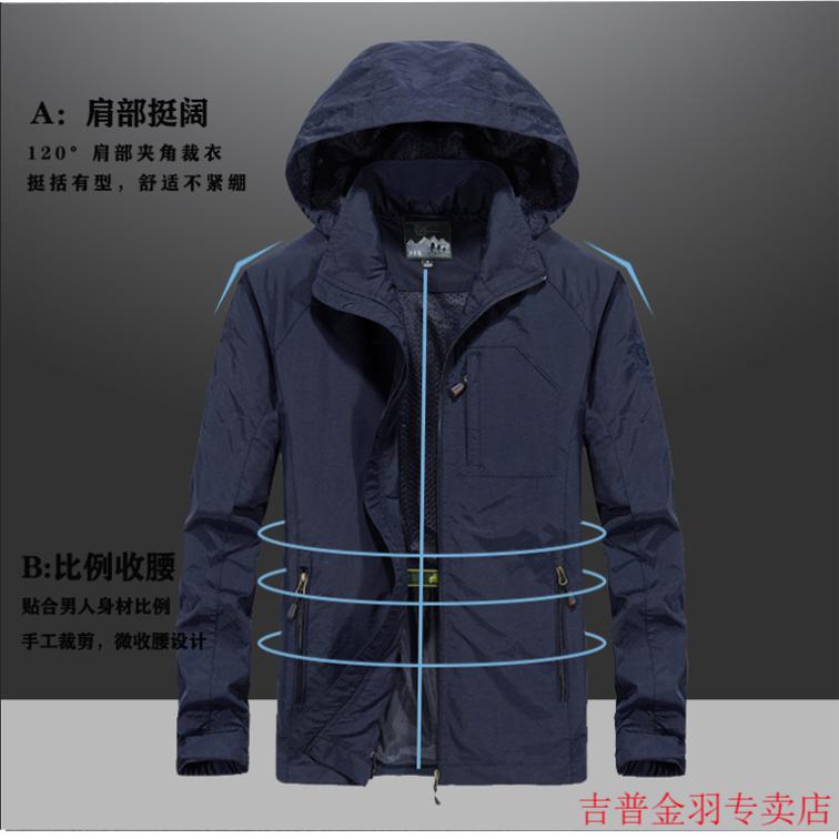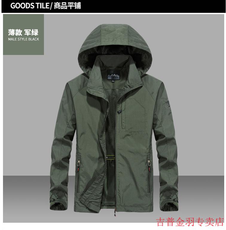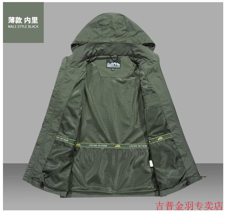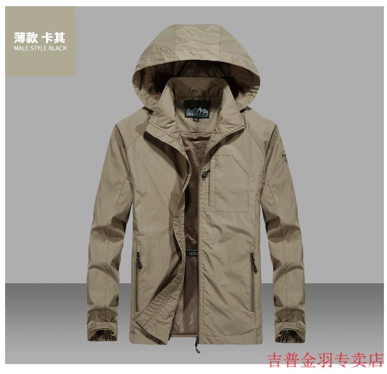 JEEP SPIRITJeep/Jeep Spring and Autumn Thin Windbreaker Jacket Men's Casual All-Match Work Jacket Gram Large Size Quick-Drying Anti-Proof Khaki - Spring and Autumn Thin Section 3XL