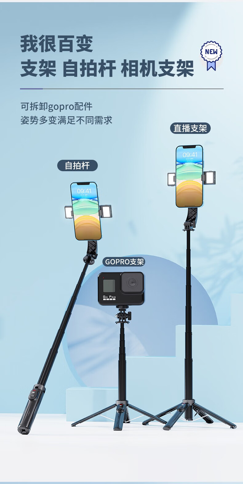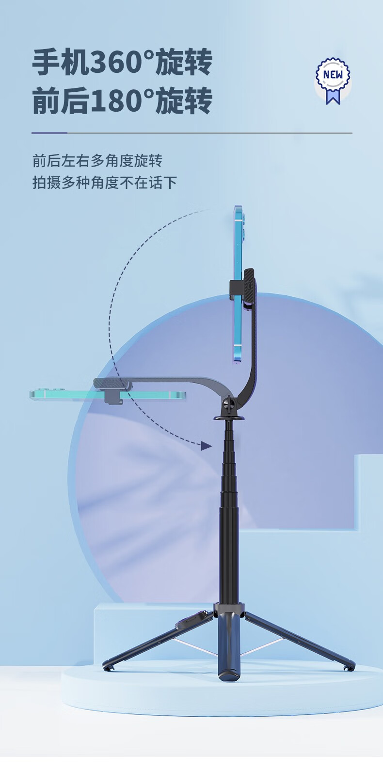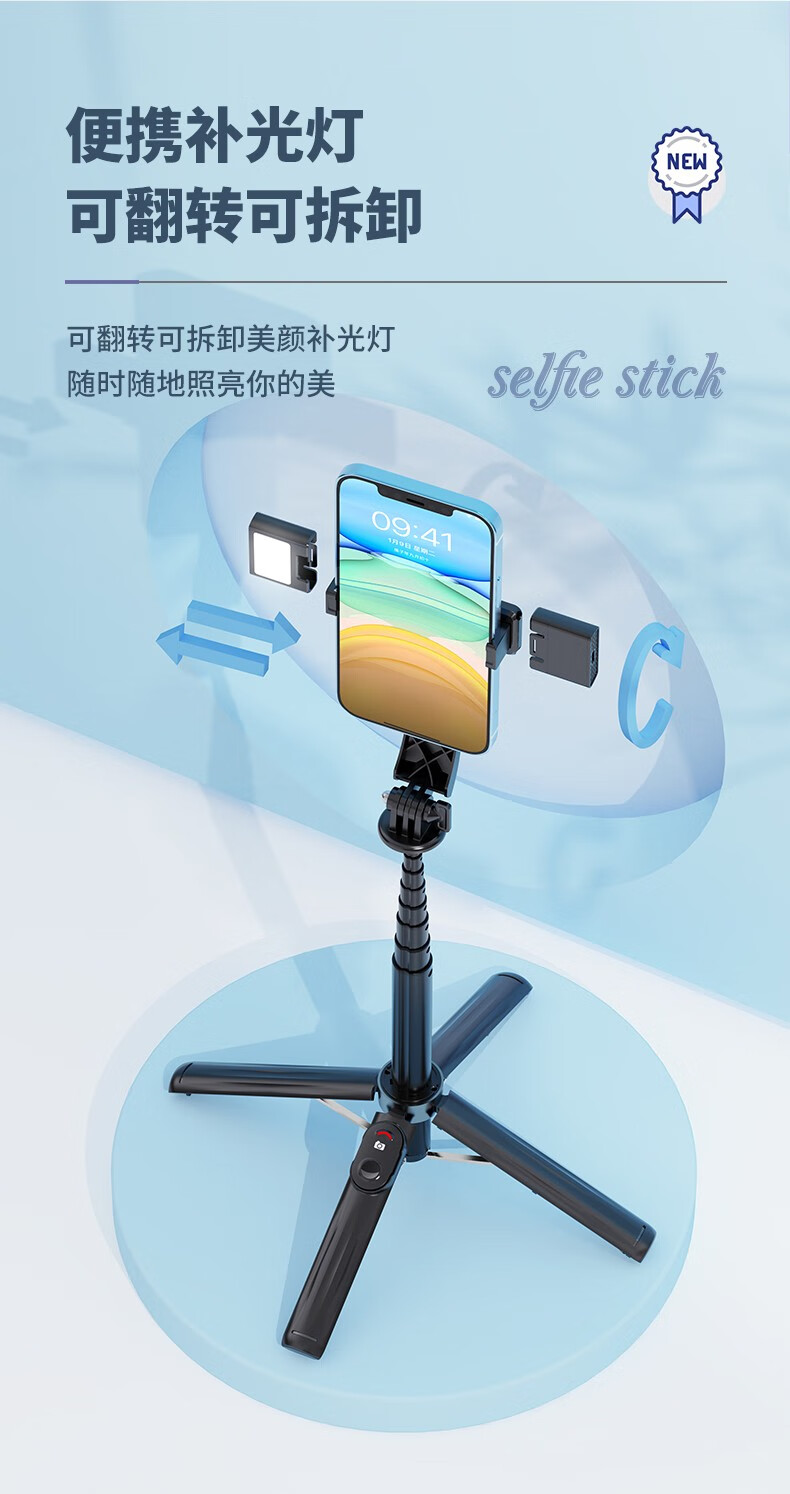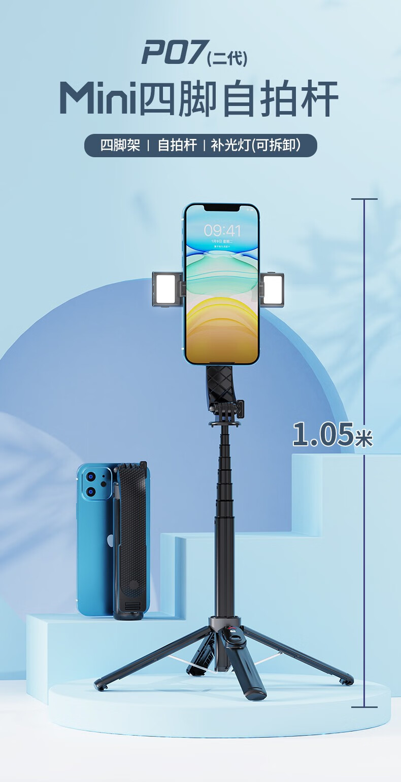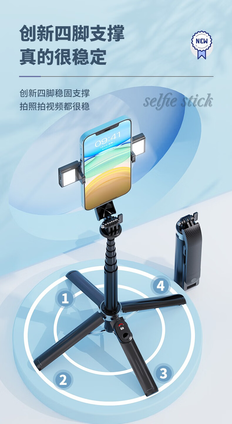 品士【升级四脚】自拍杆三脚架手机支架防抖稳拍手持演唱会神器多功能户外直播短视频适用苹果安卓通用 四脚加固【铝合金+1米+美颜灯】蓝牙遥控横竖拍