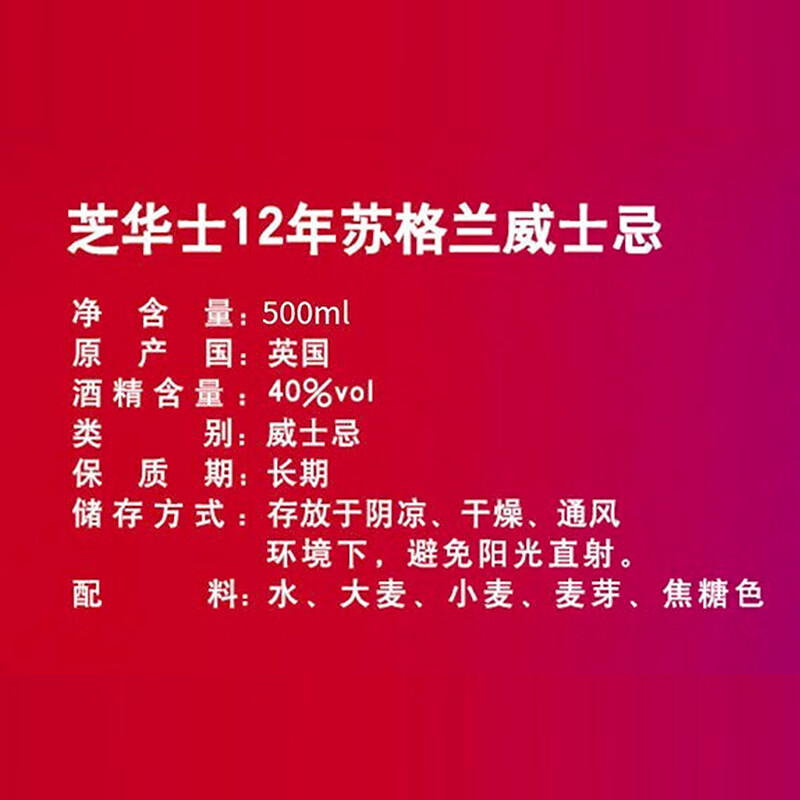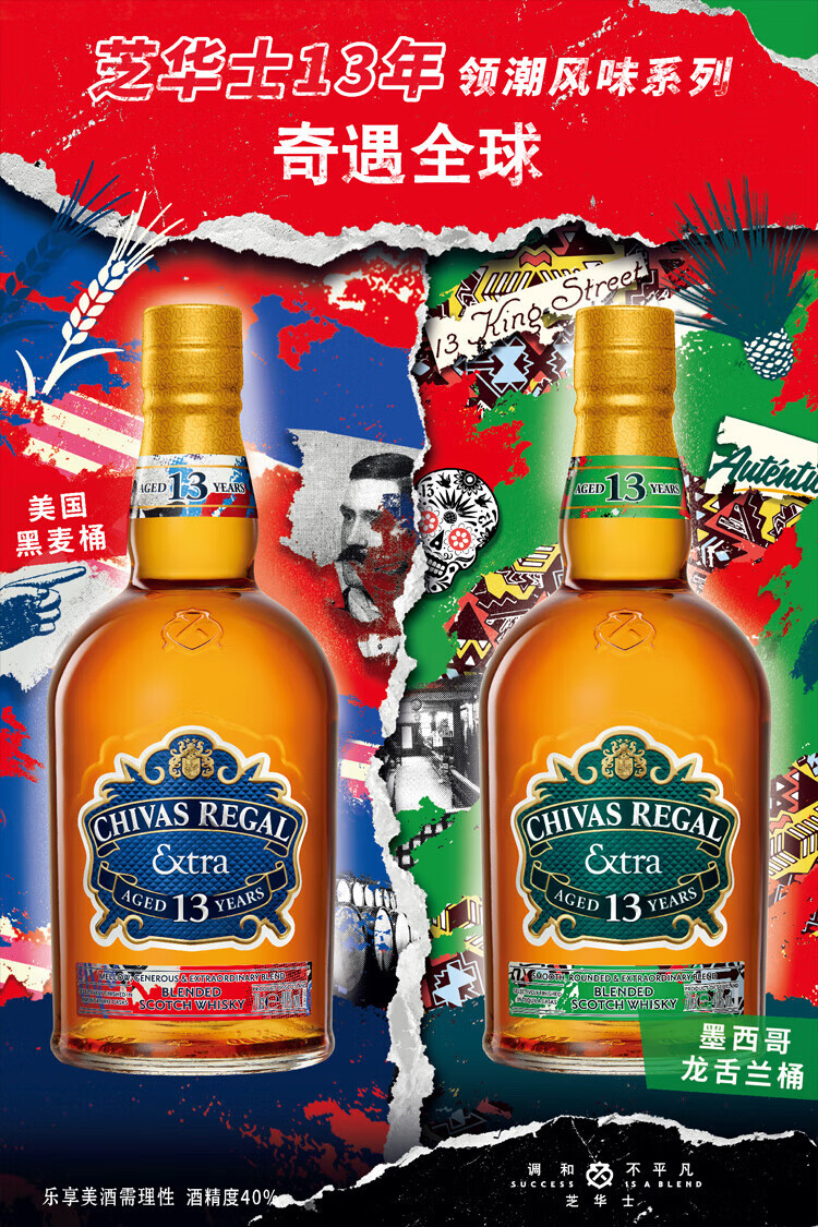 芝华士(Chivas)苏格兰 调和型 威士忌 洋酒 礼品 芝华士13年柔醇黑麦桶 500mL*2支