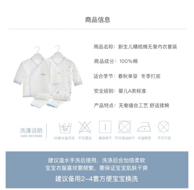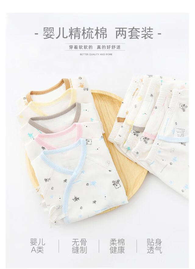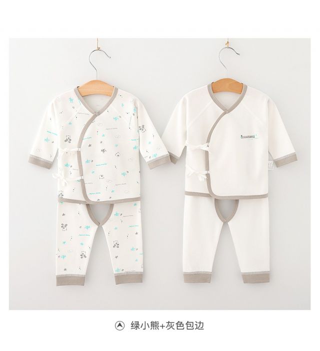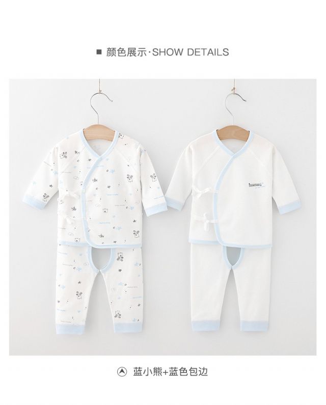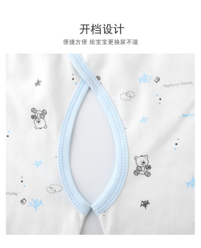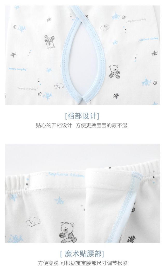 翘脚鸭婴儿衣服新生儿满月宝宝睡衣纯棉分体内衣套装秋衣秋裤春秋冬季款 蓝小熊2套装【开裆丨四季款】 66 (建议3-6个月)