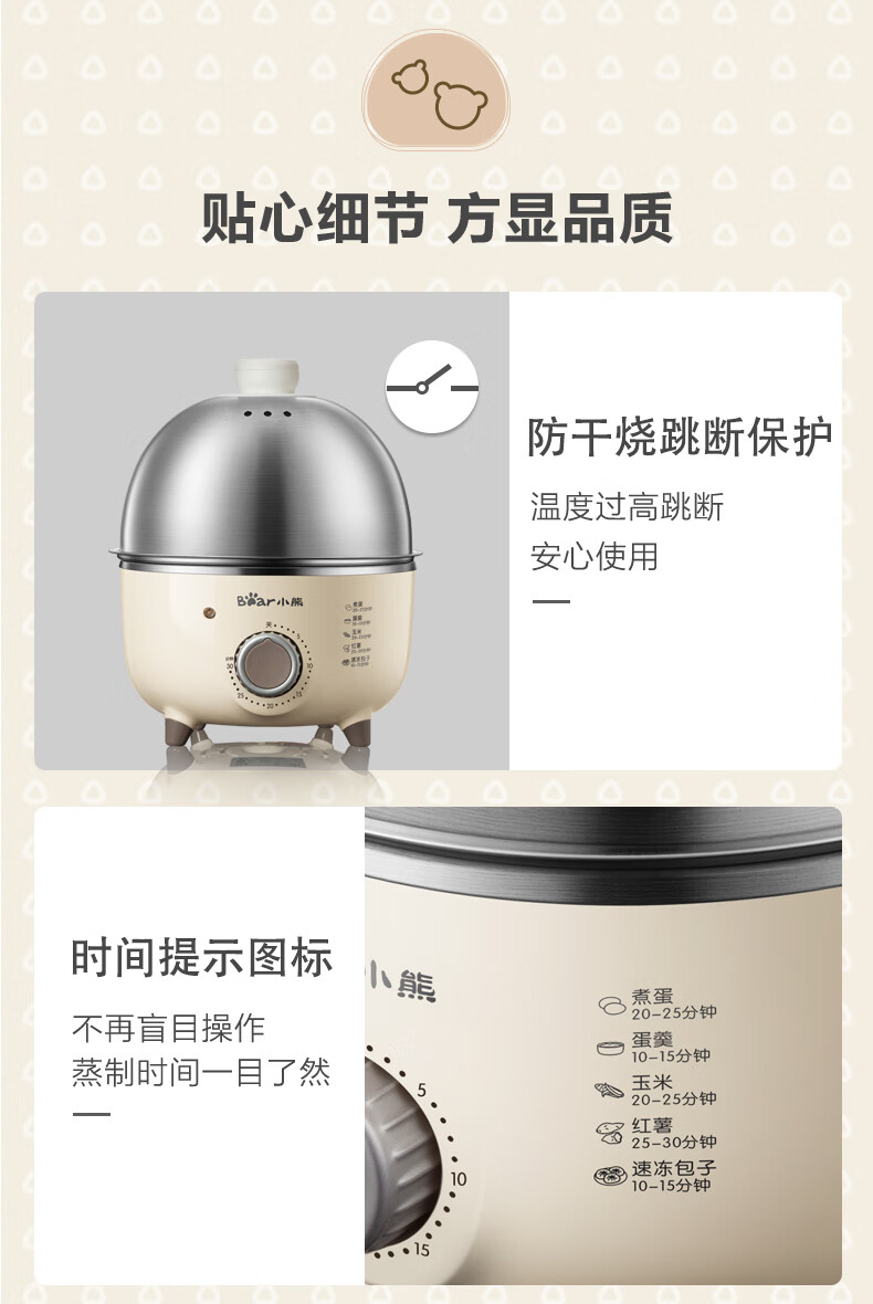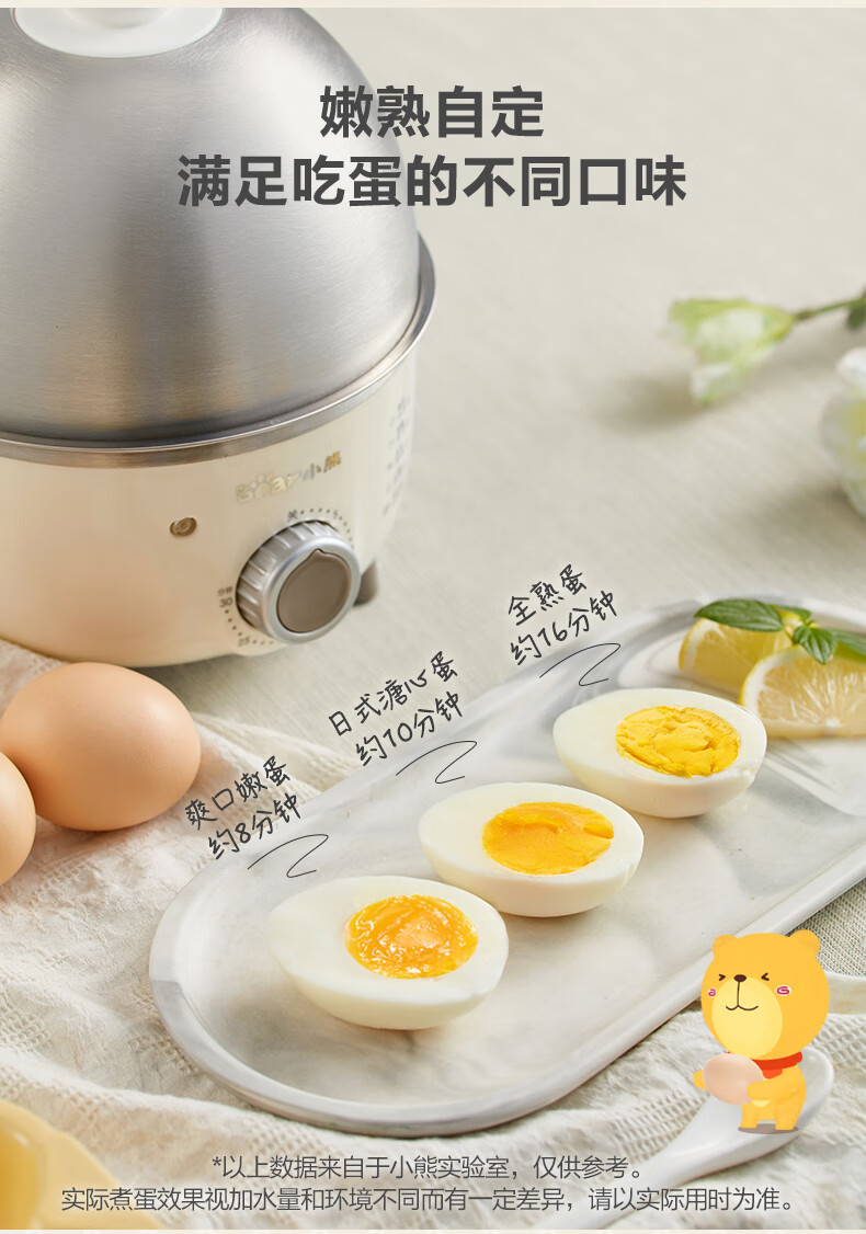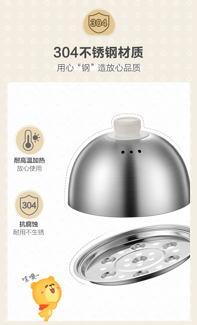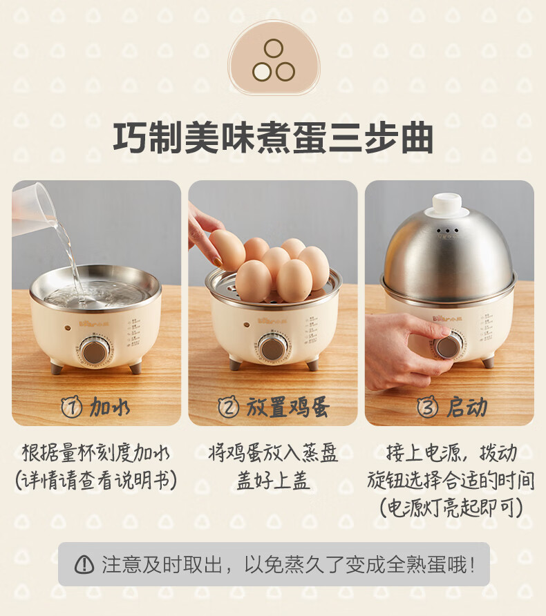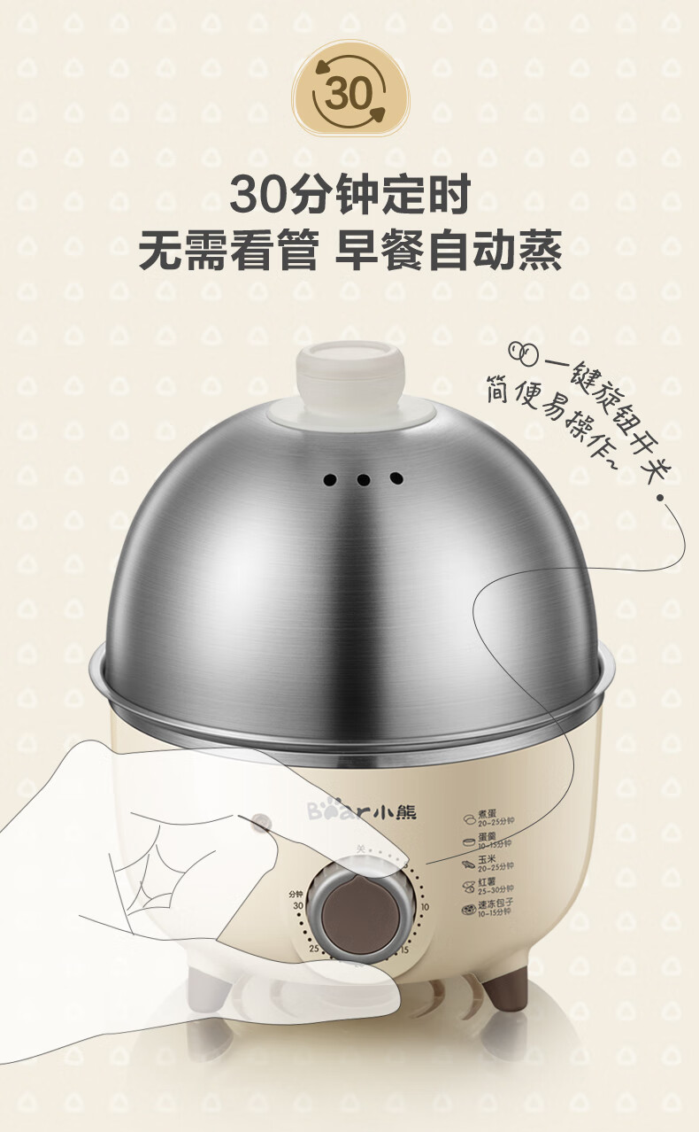Bear egg cooker small household egg steamer timer stainless steel steamed egg artifact automatic power off dormitory mini breakfast egg cooker single layer beige