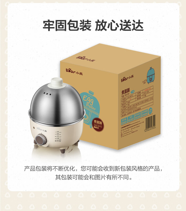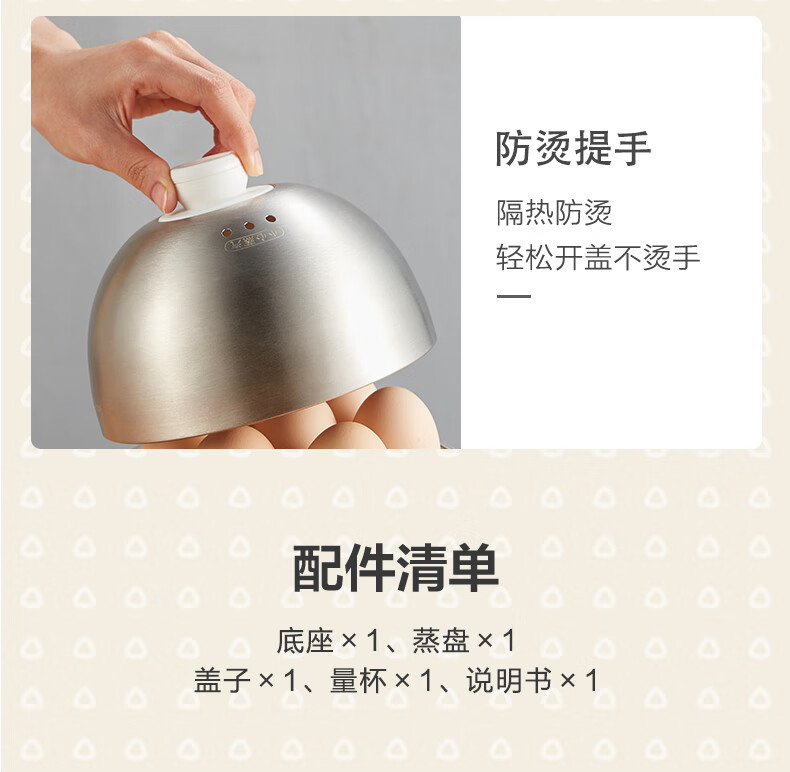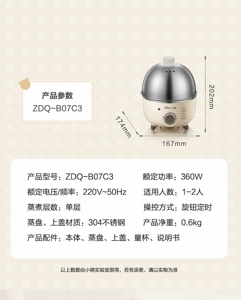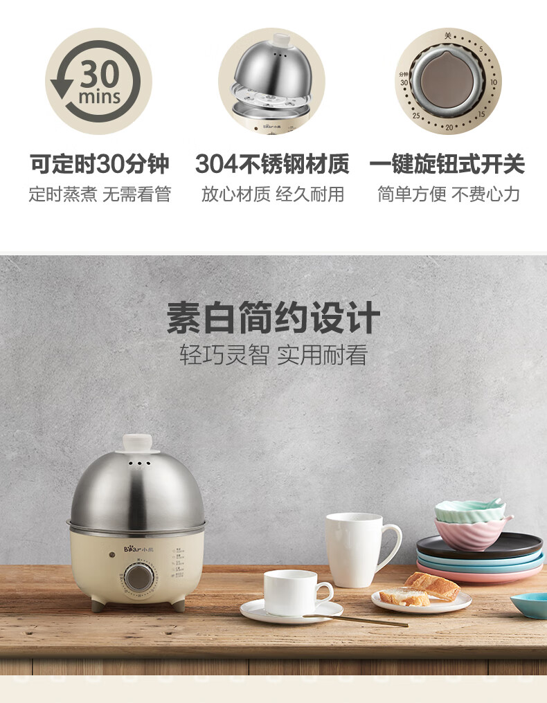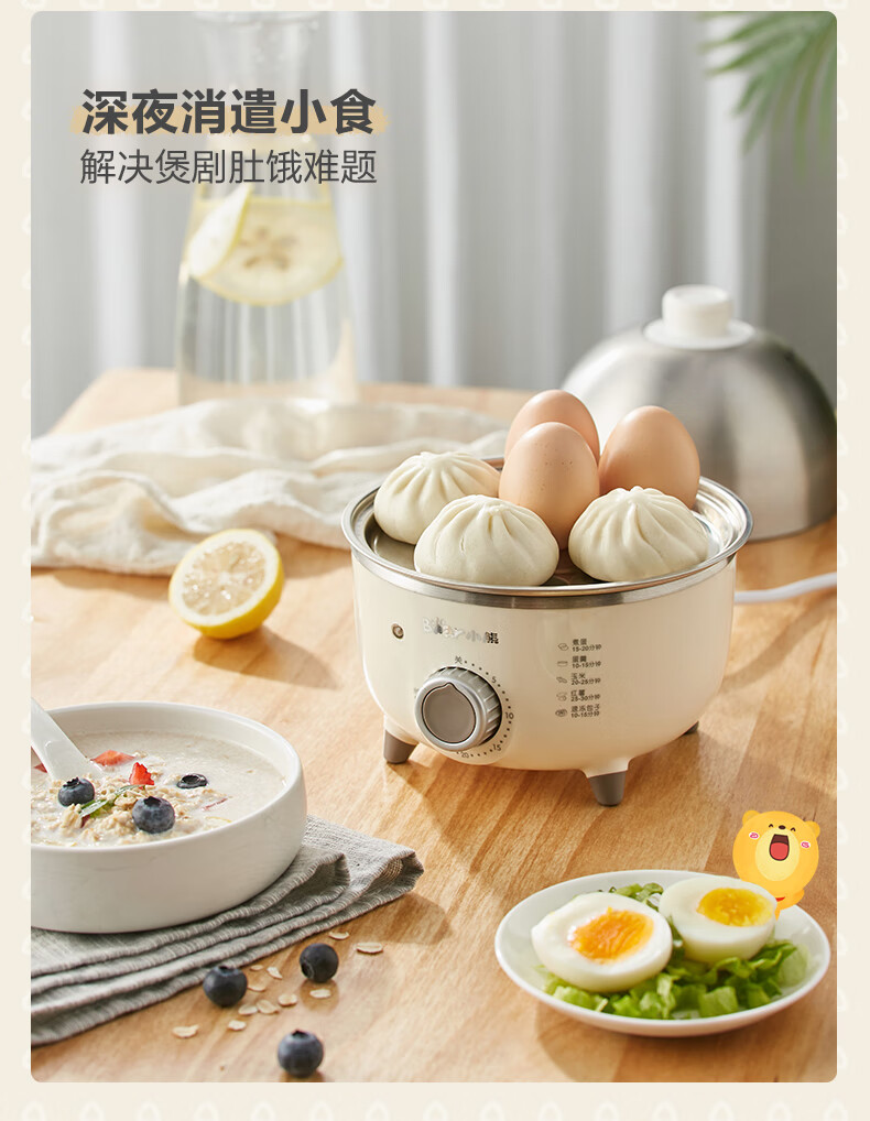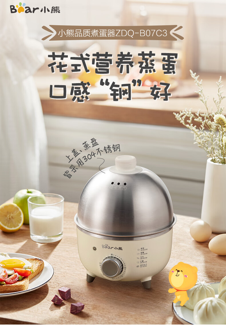 Bear egg cooker small household egg steamer timer stainless steel steamed egg artifact automatic power off dormitory mini breakfast egg cooker single layer beige