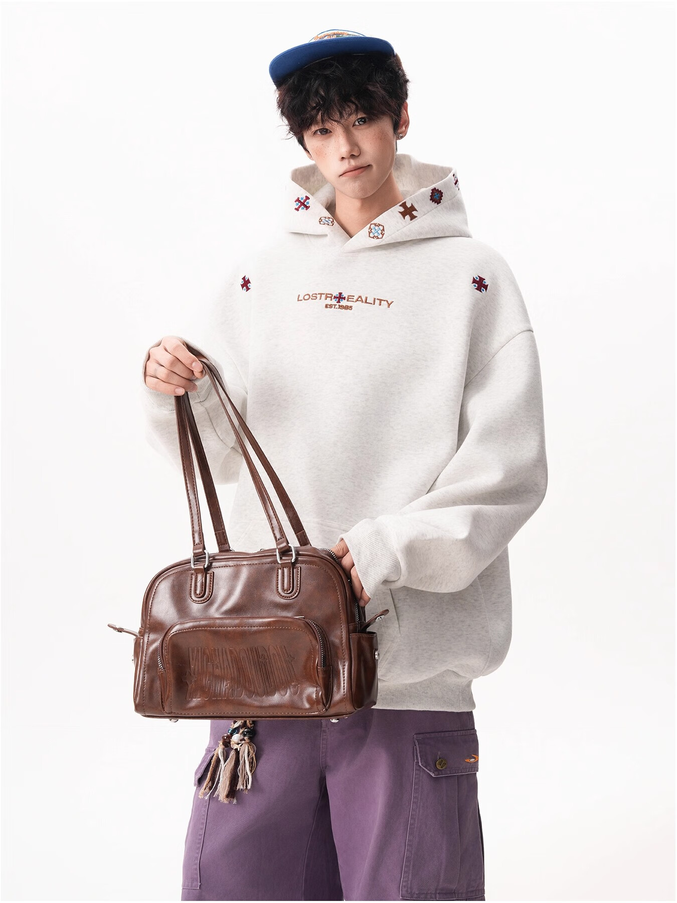 OEMG  重磅500g刺绣连帽加绒加厚卫衣男士秋冬季潮牌美式宽松保暖外套 白花灰 【高品质】 XL [建议110-130斤]