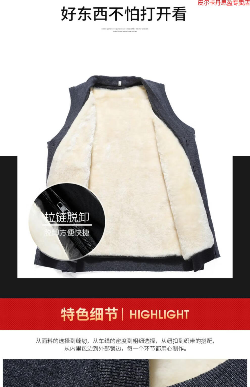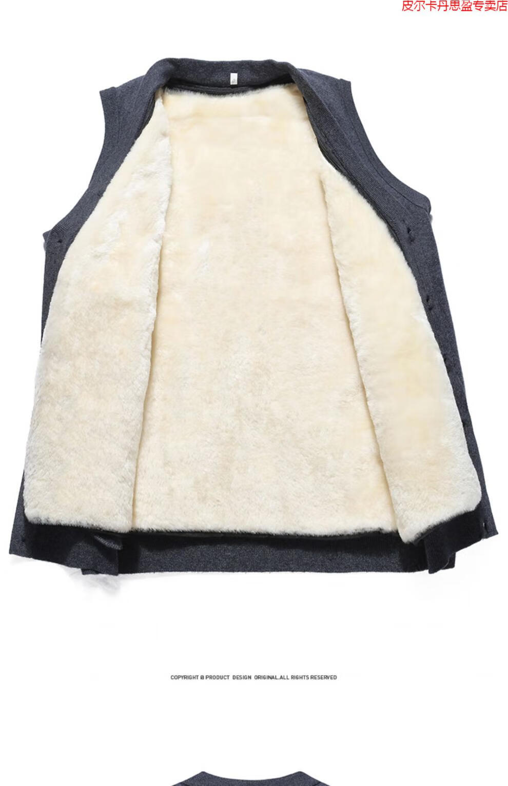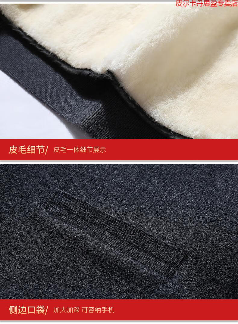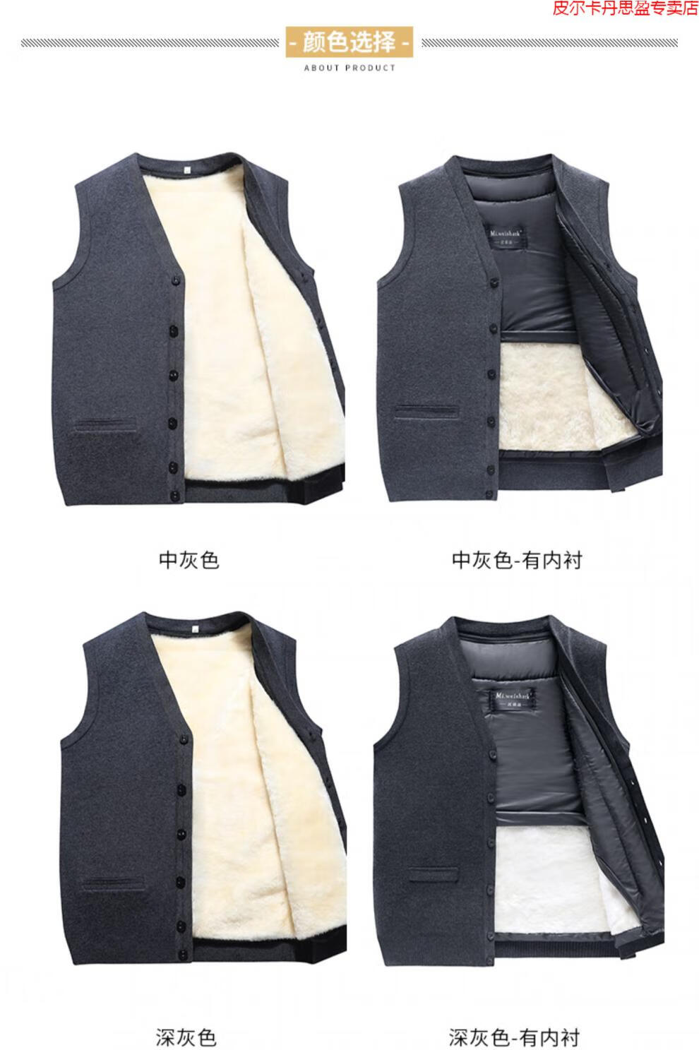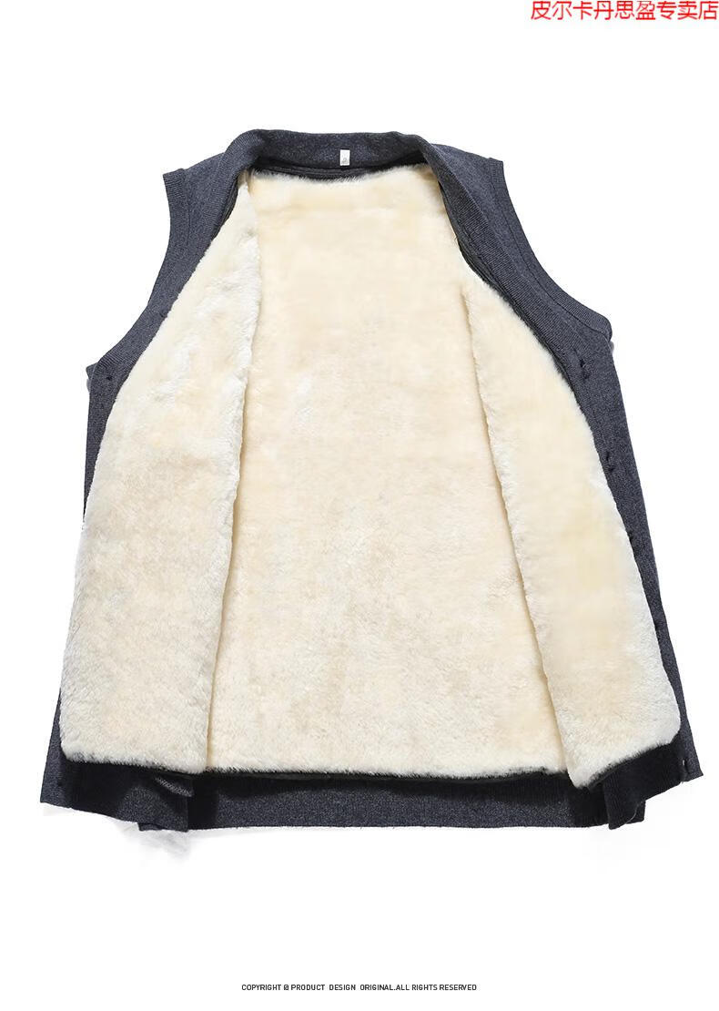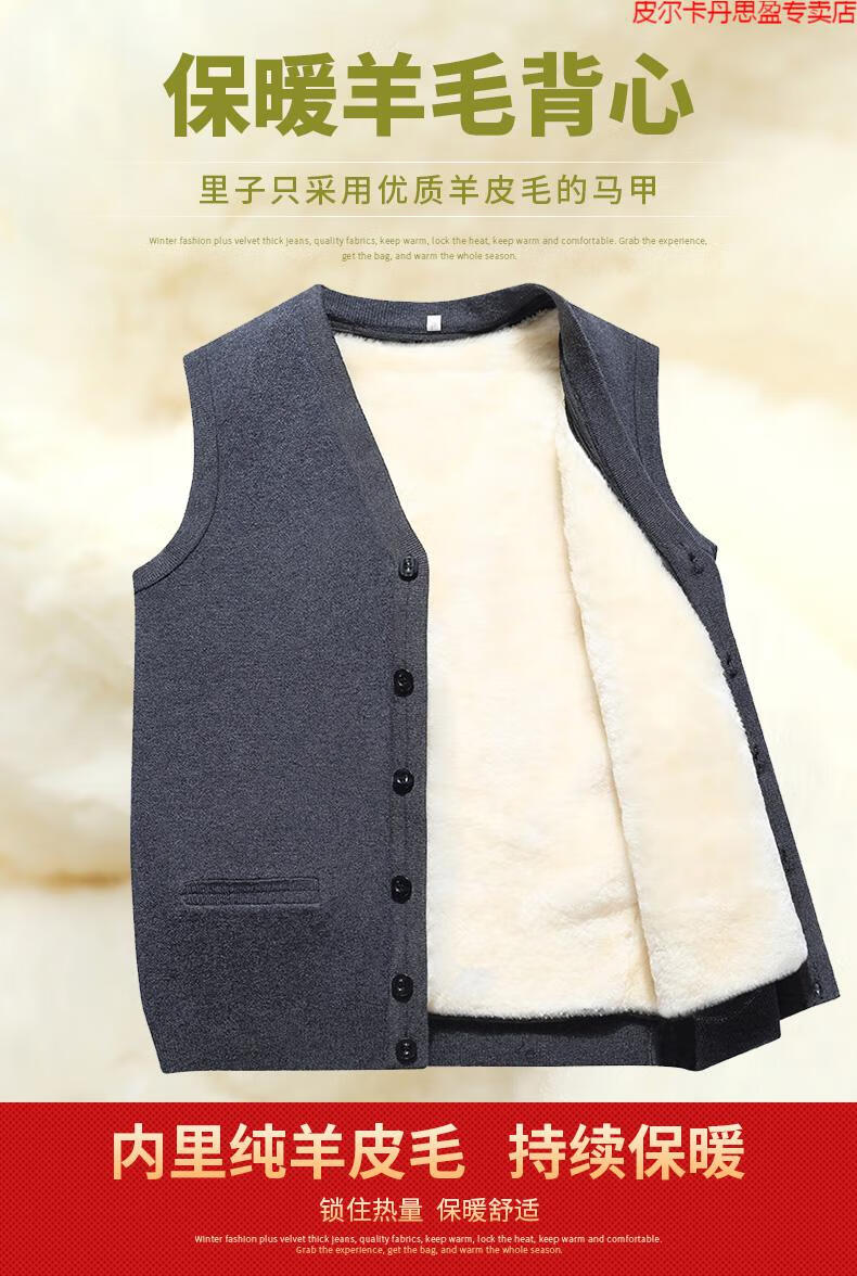 皮尔卡丹品牌高端男装 中老年男冬季羊毛衣马甲爸爸棉坎肩羊皮毛一体背心保暖加厚绒马夹 中灰色(有内衬) 3XL