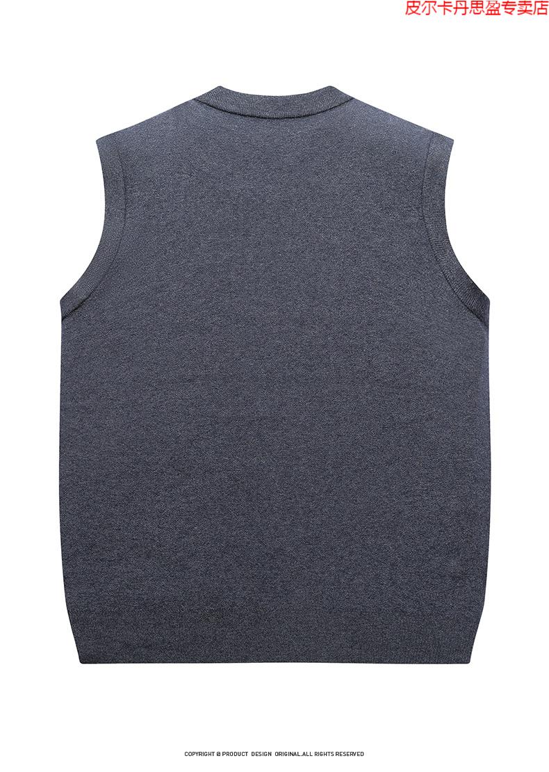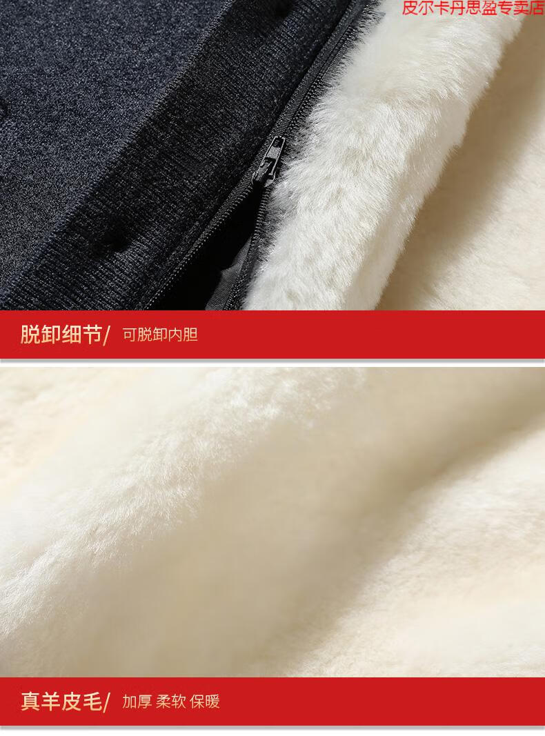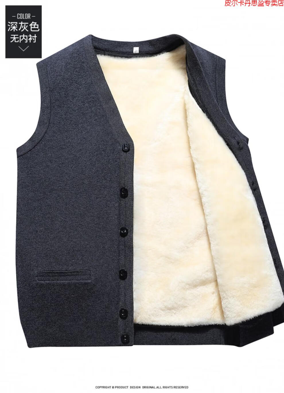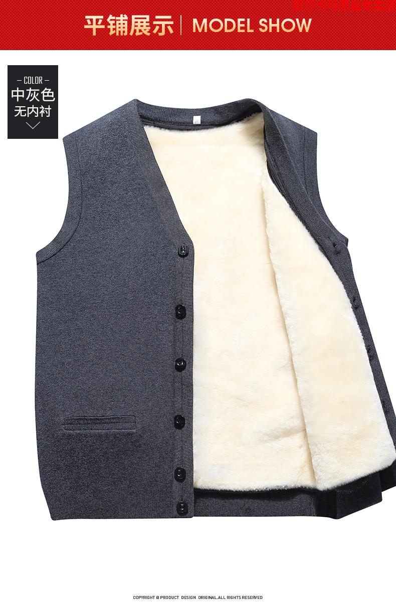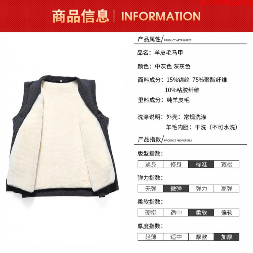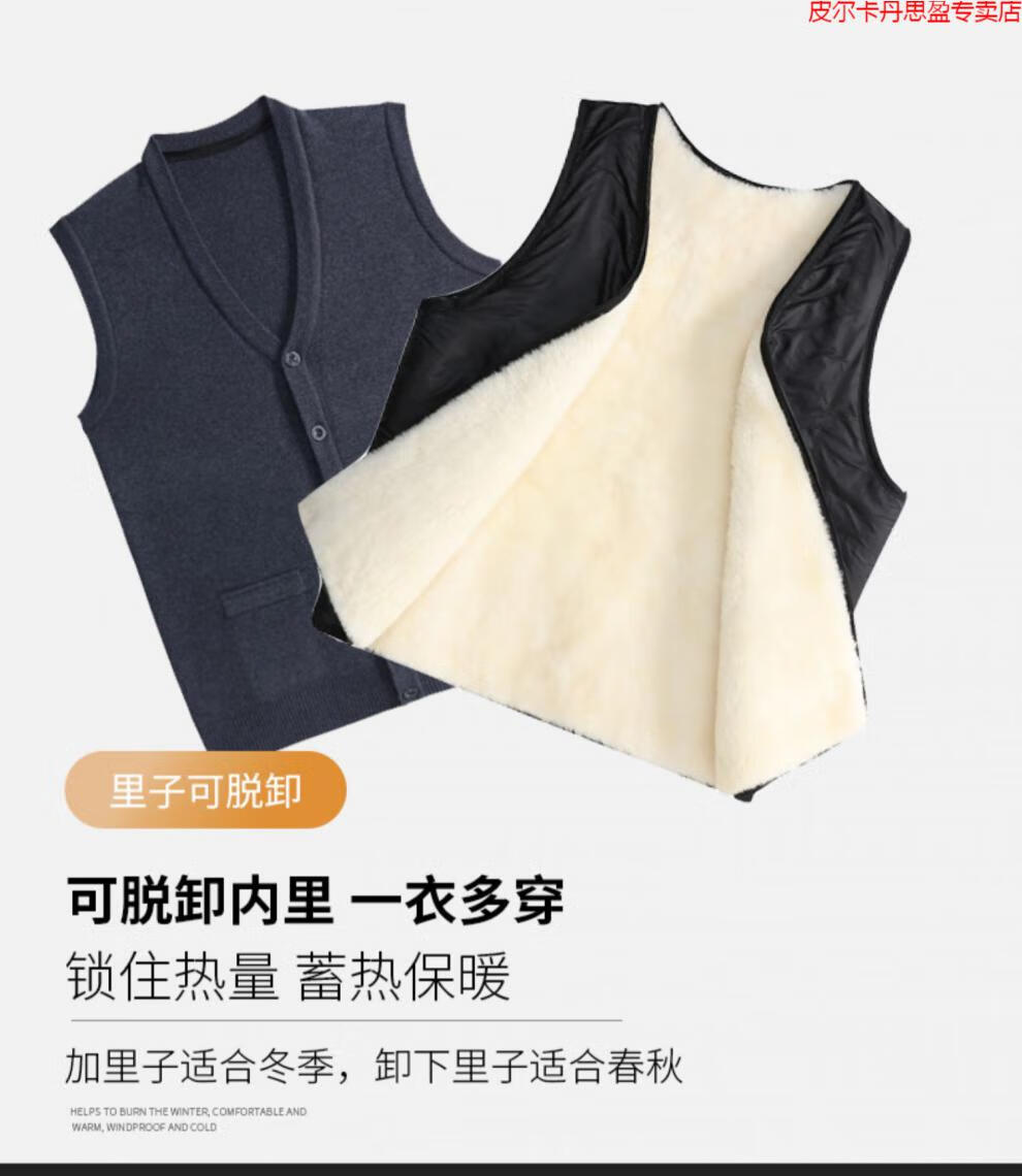 皮尔卡丹品牌高端男装 中老年男冬季羊毛衣马甲爸爸棉坎肩羊皮毛一体背心保暖加厚绒马夹 中灰色(有内衬) 3XL